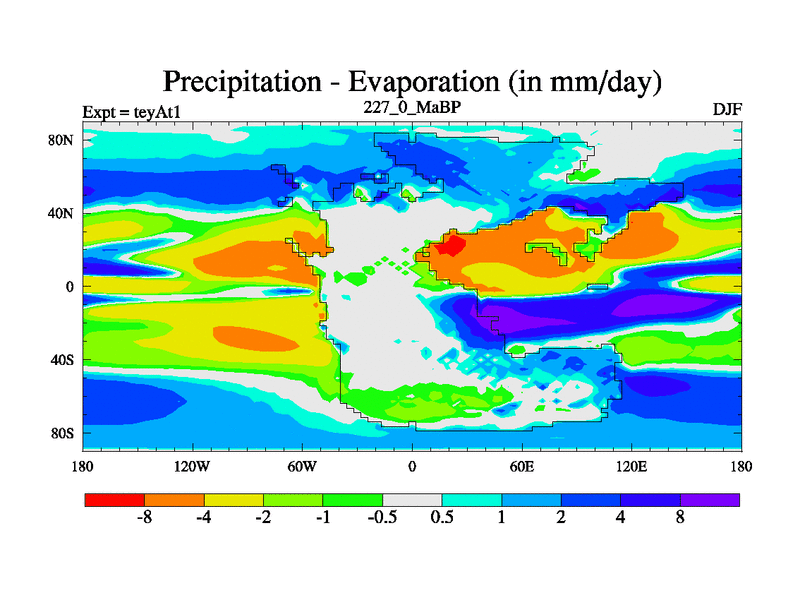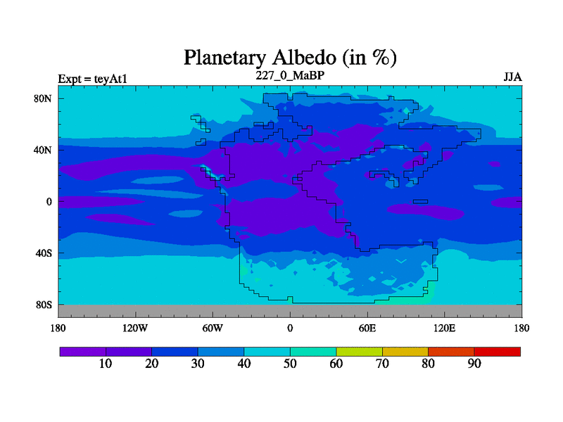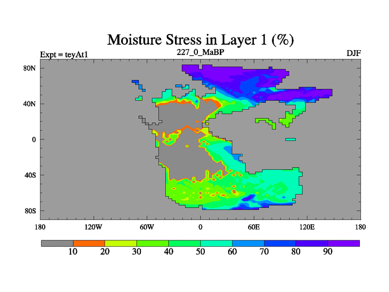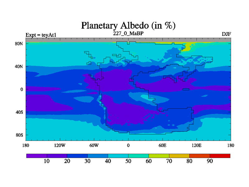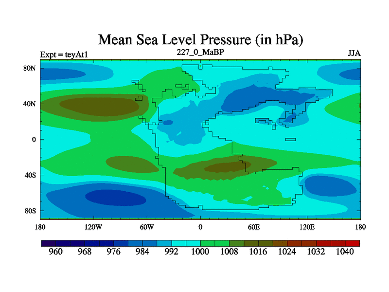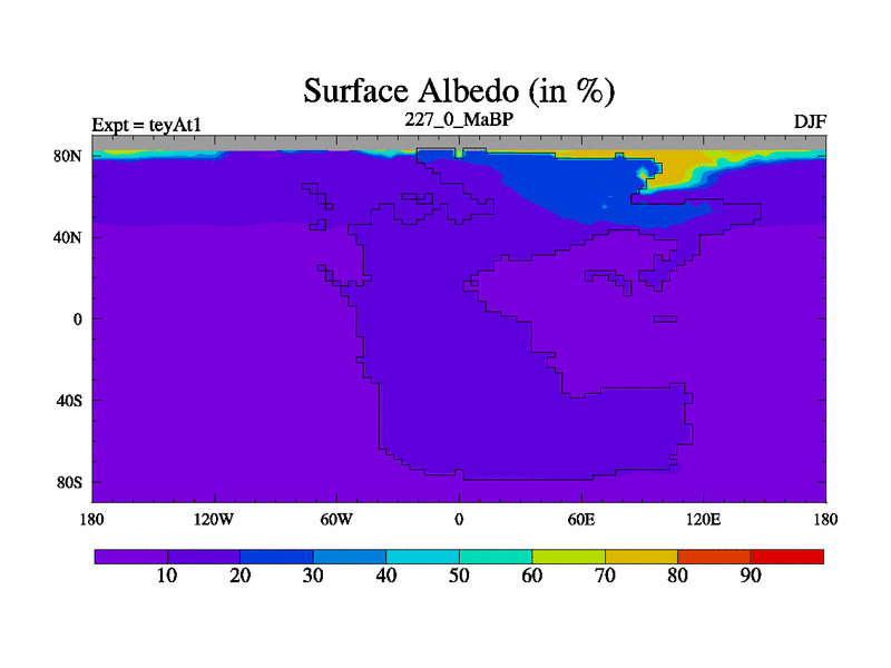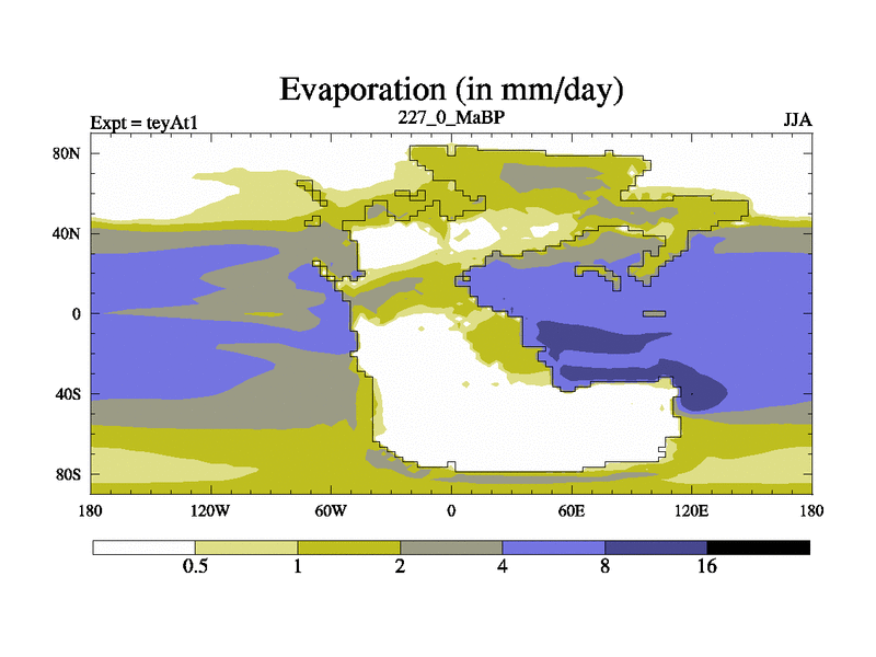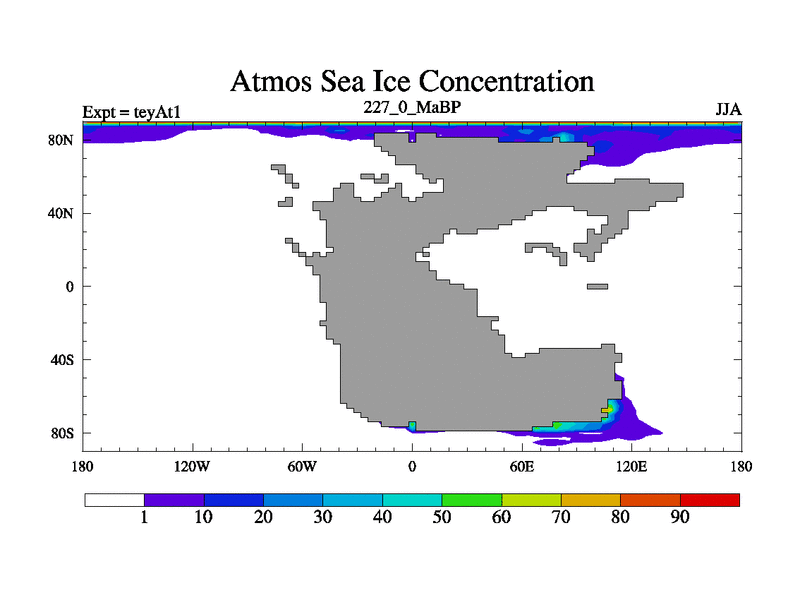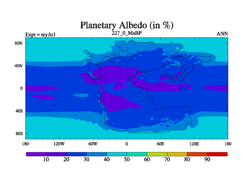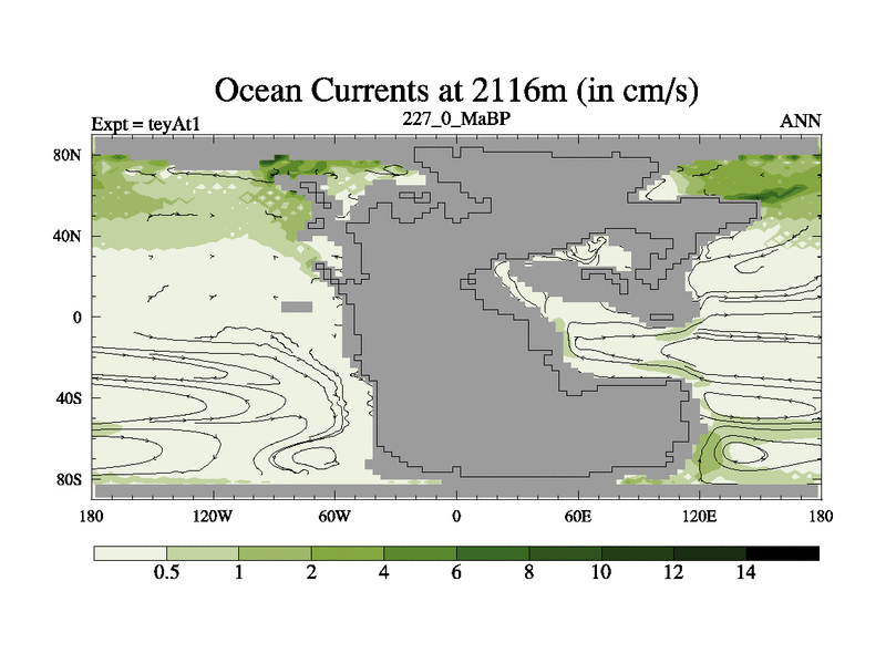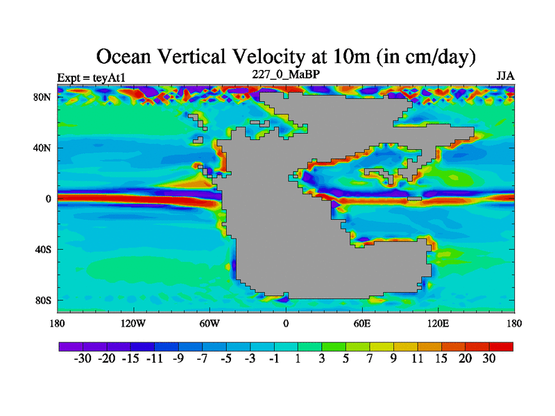 This is the 227.0 Ma simulation using the Scotese palaeogeographies. Extension of the tex[f..j] series.