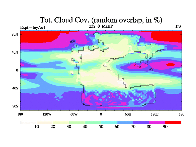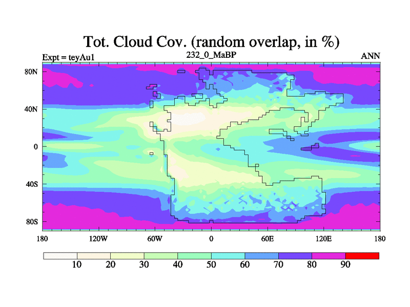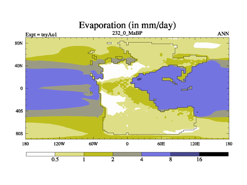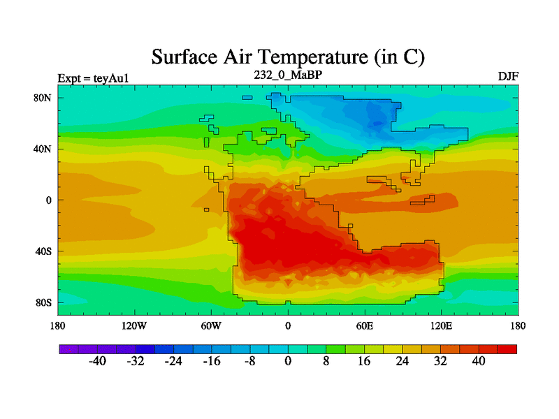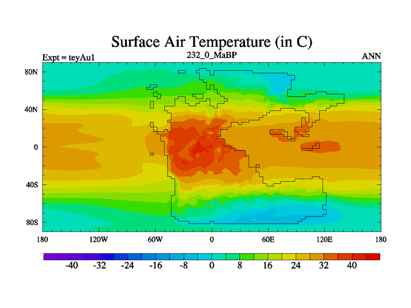 This is the 232.0 Ma simulation using the Scotese palaeogeographies. Extension of the tex[f..j] series.