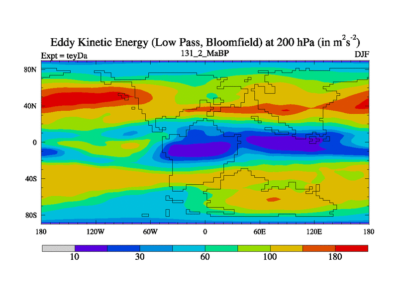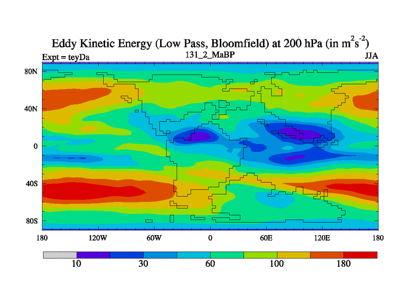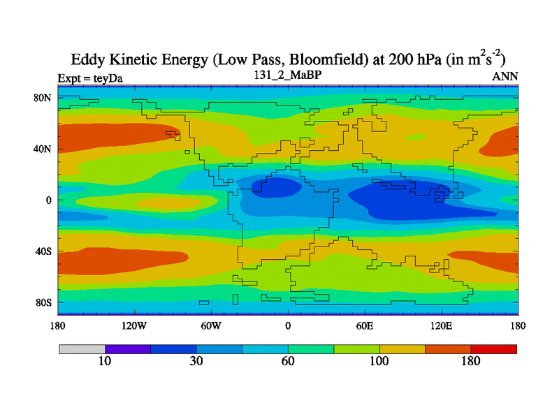 Low Pass Eddy Kinetic Energy at 200 hPa