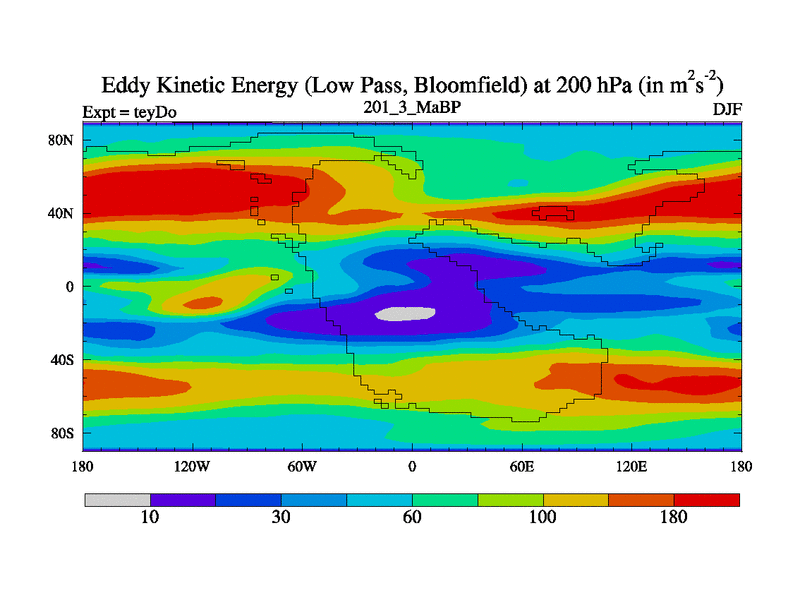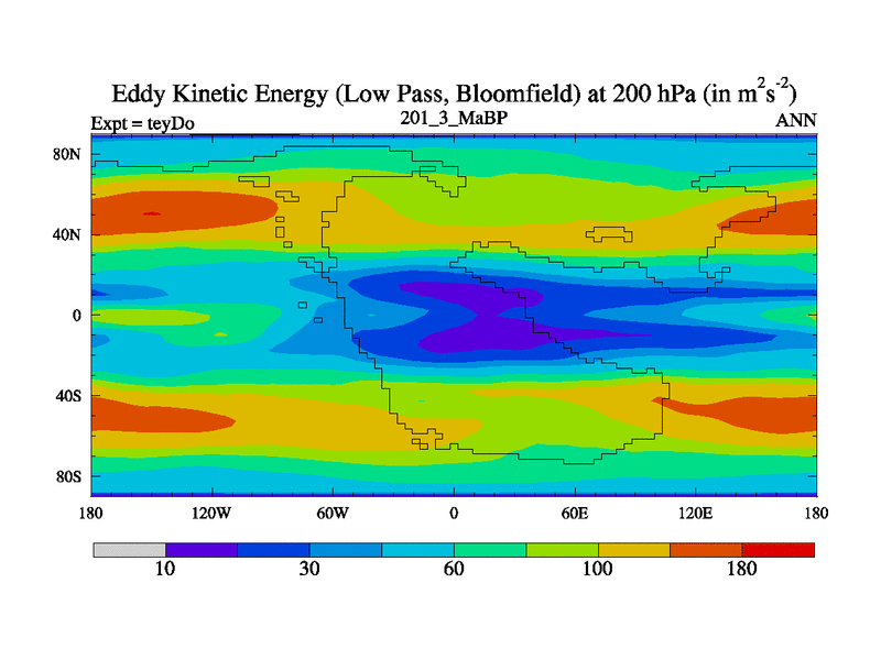 Low Pass Eddy Kinetic Energy at 200 hPa