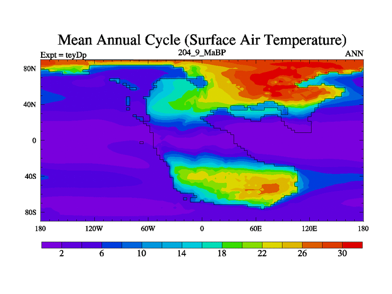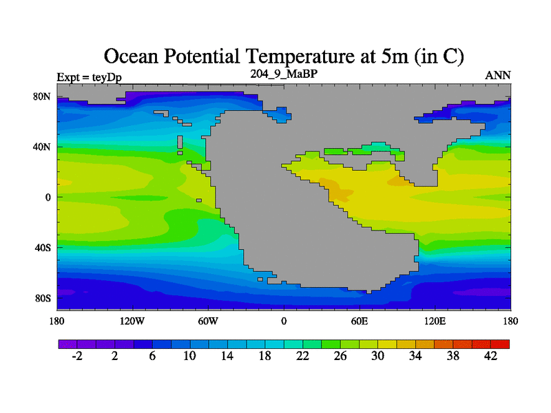 This is the 204.9 Ma simulation using the Scotese palaeogeographies and revised CCN etc.