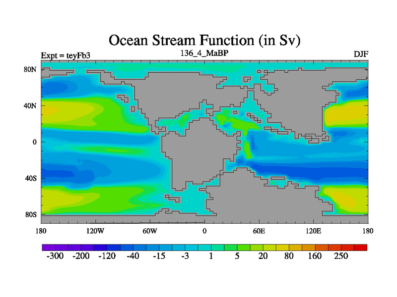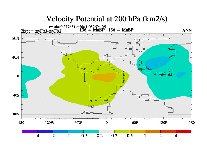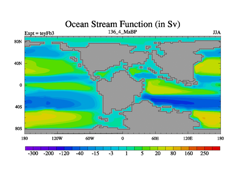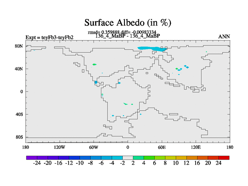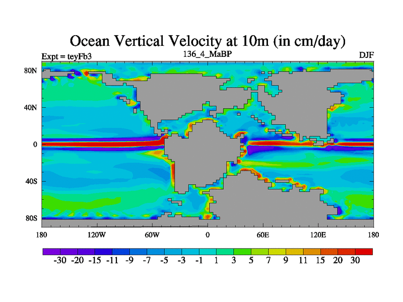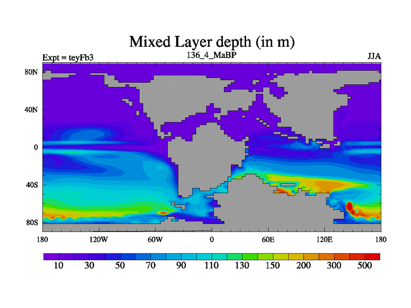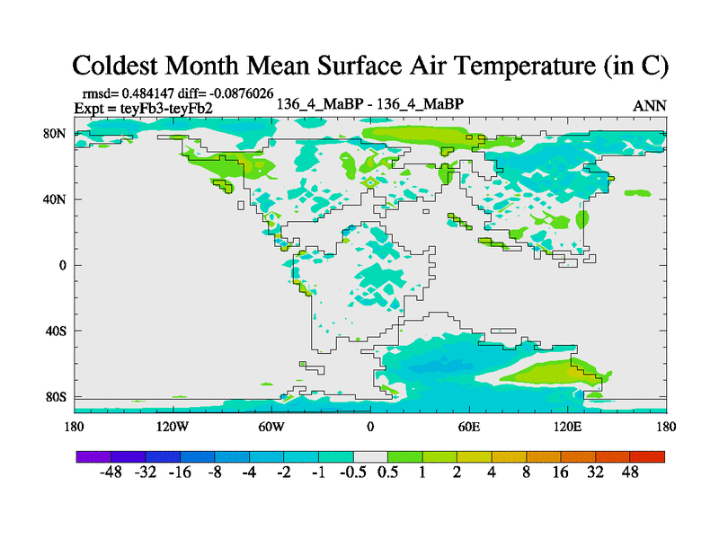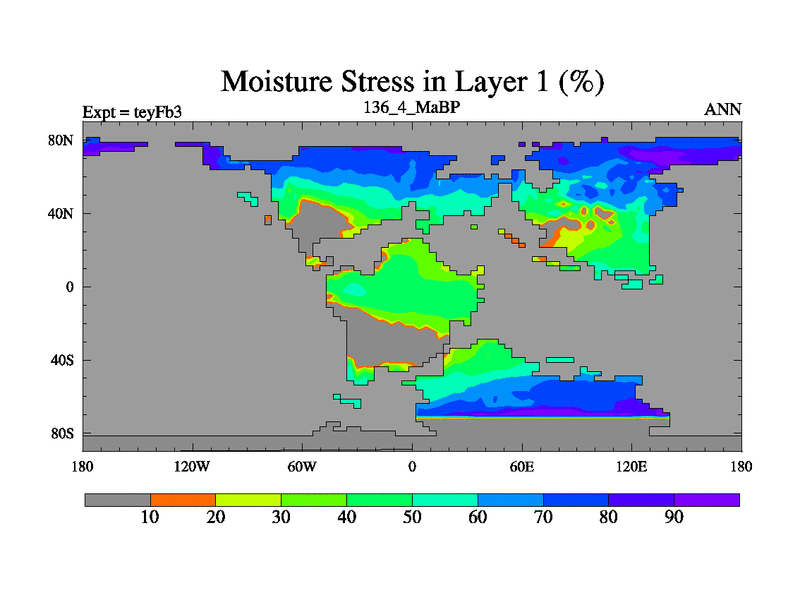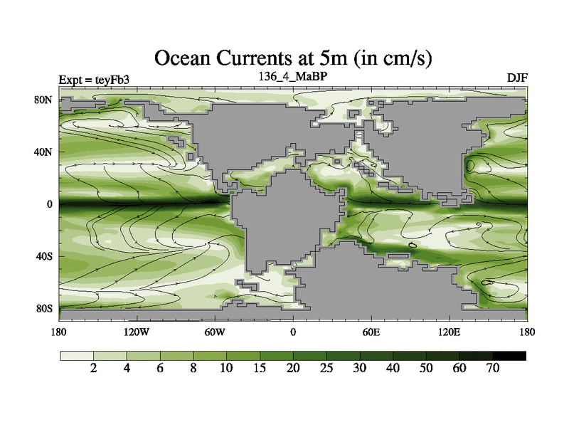 This is the 136.4 Ma simulation using the Scotese palaeogeographies and revised CCN etc. Updated HadCM3L ocean parameters and soil parameters. Also made sure orography gravity wave drag was consistent.
