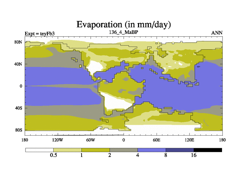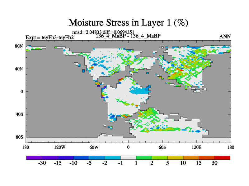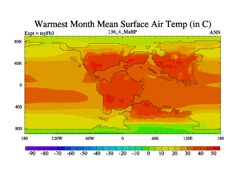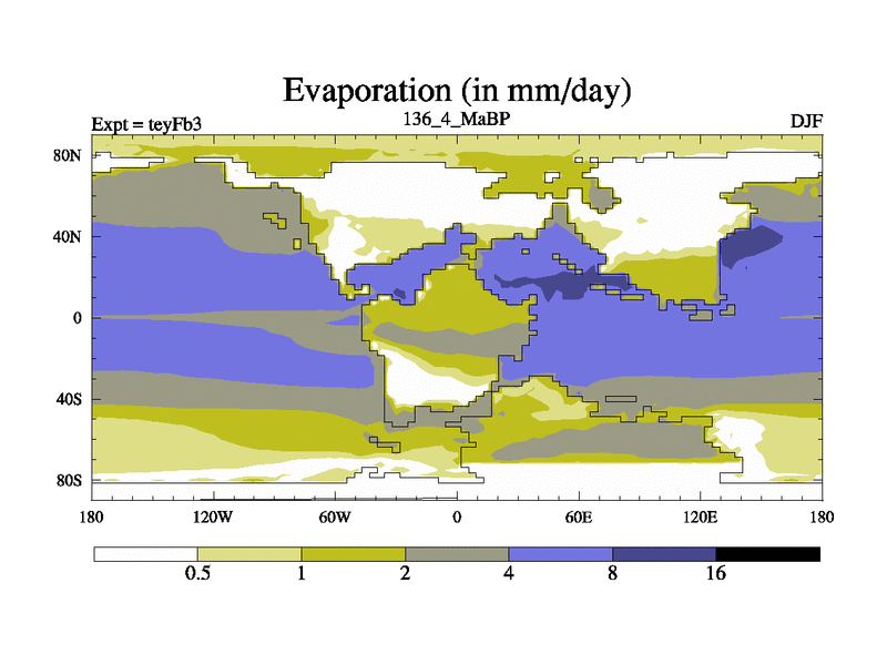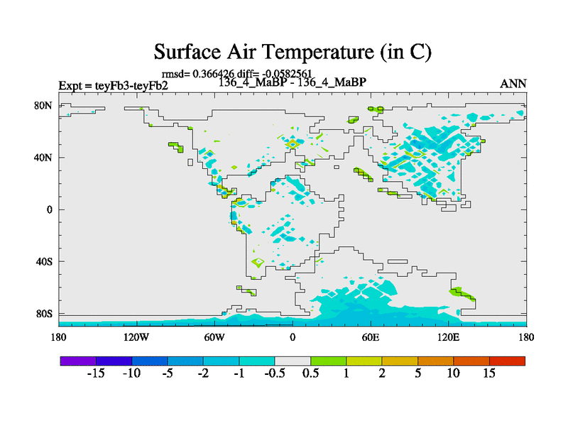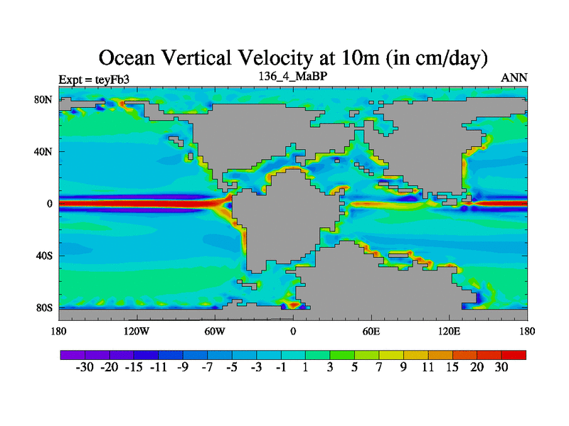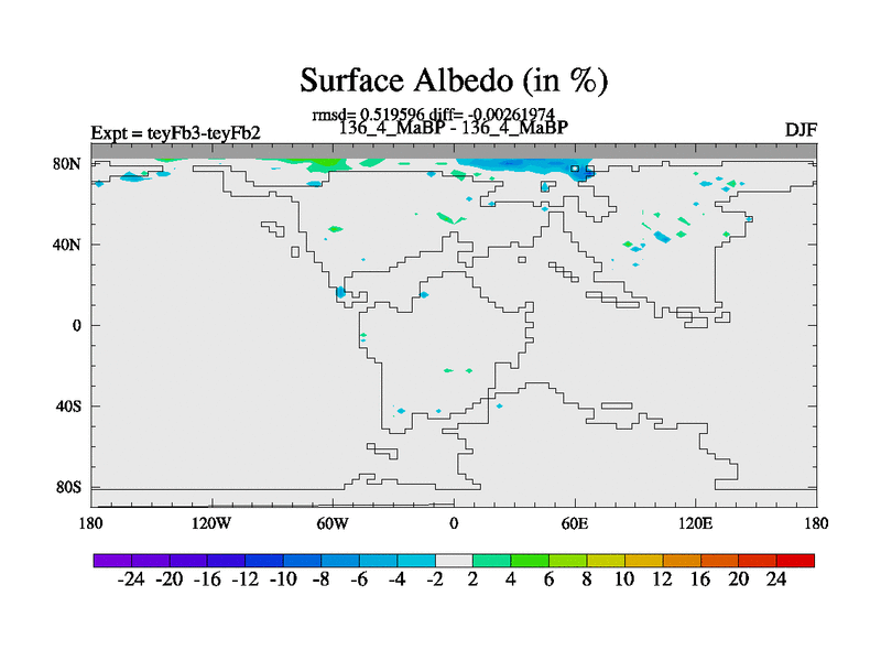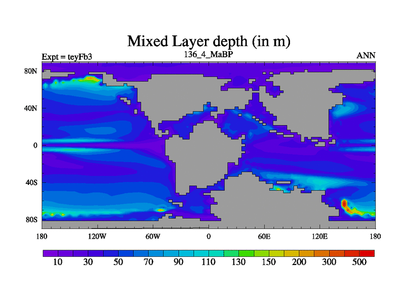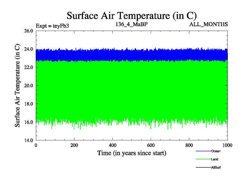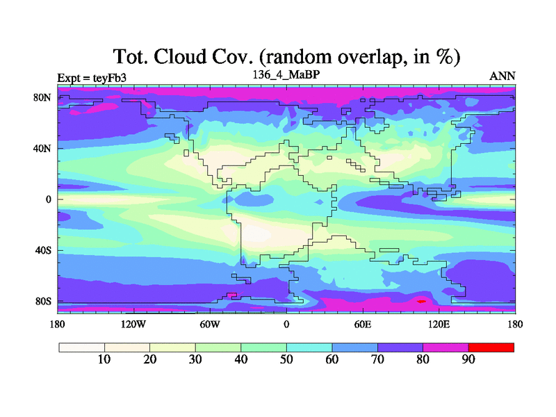 This is the 136.4 Ma simulation using the Scotese palaeogeographies and revised CCN etc. Updated HadCM3L ocean parameters and soil parameters. Also made sure orography gravity wave drag was consistent.