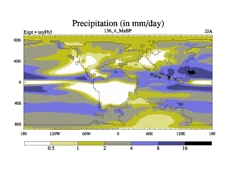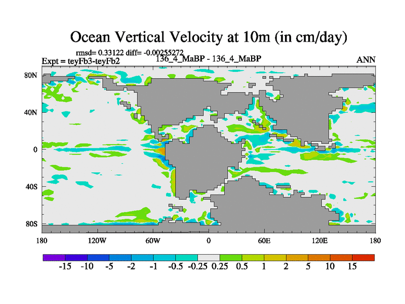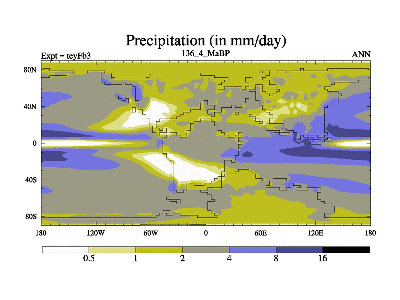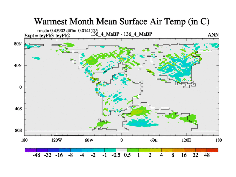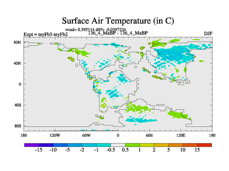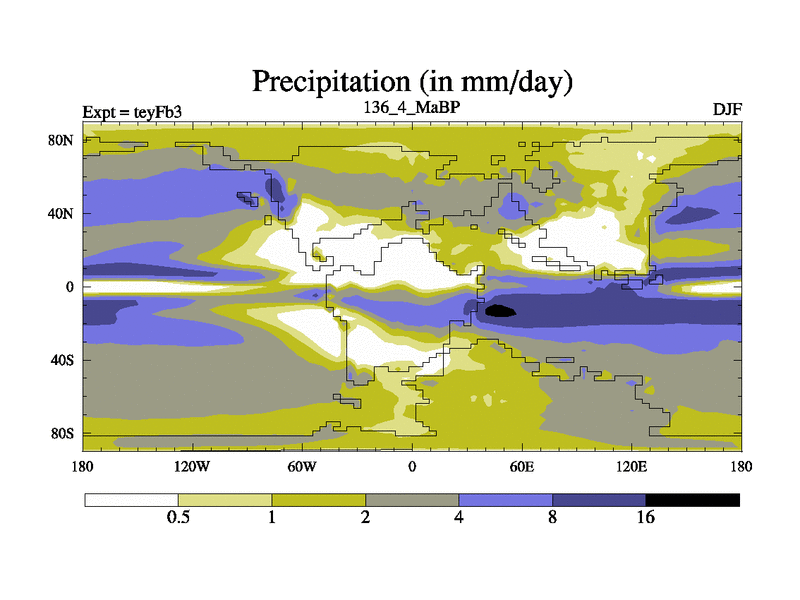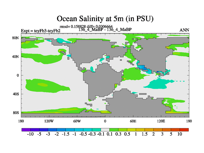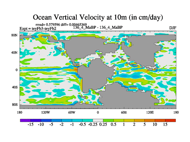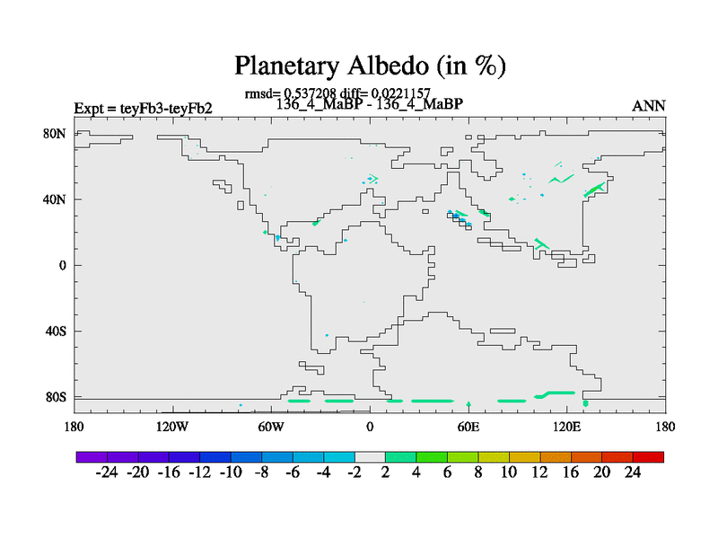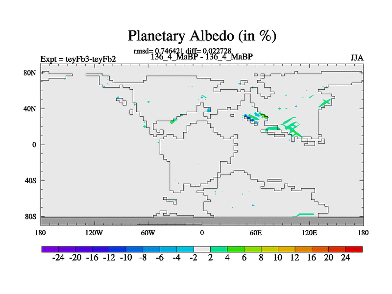 This is the 136.4 Ma simulation using the Scotese palaeogeographies and revised CCN etc. Updated HadCM3L ocean parameters and soil parameters. Also made sure orography gravity wave drag was consistent.