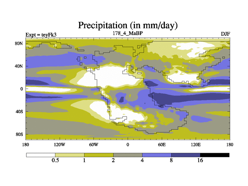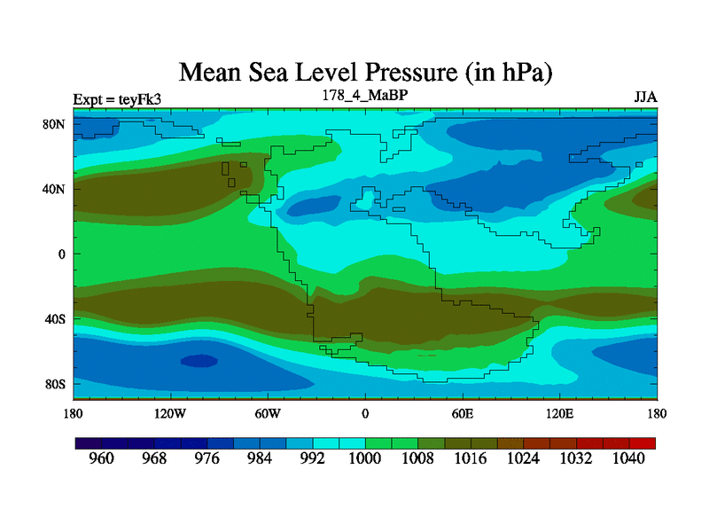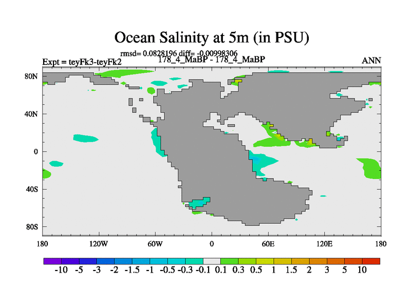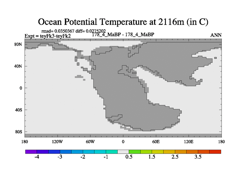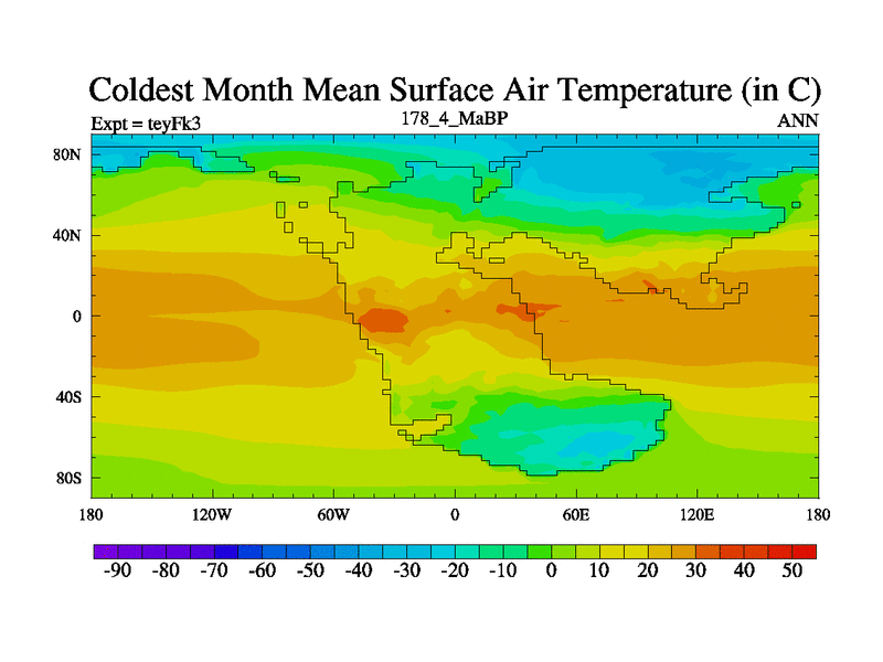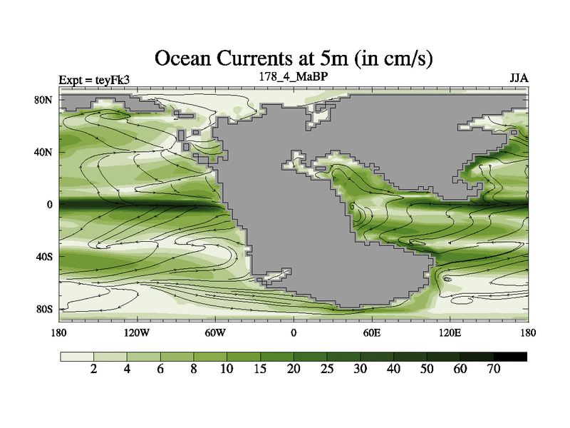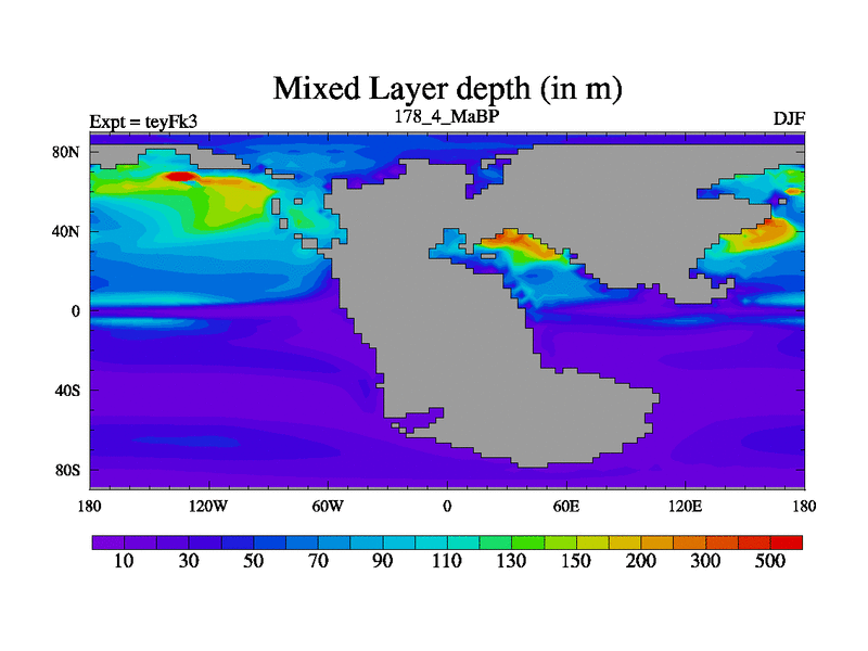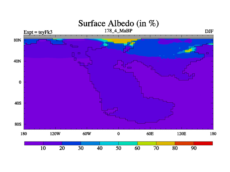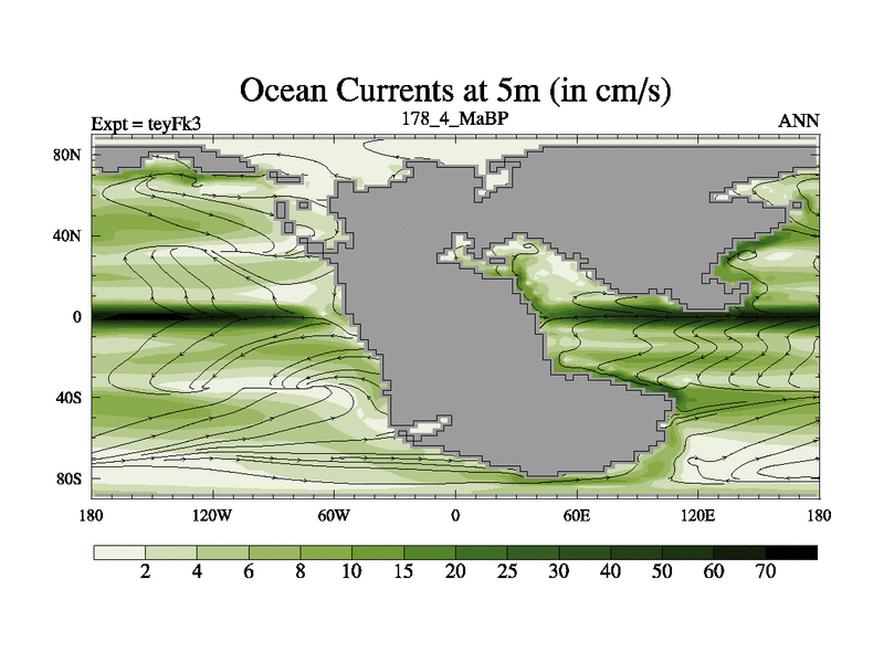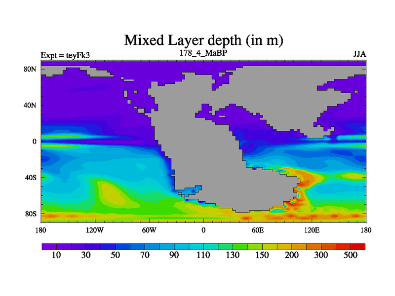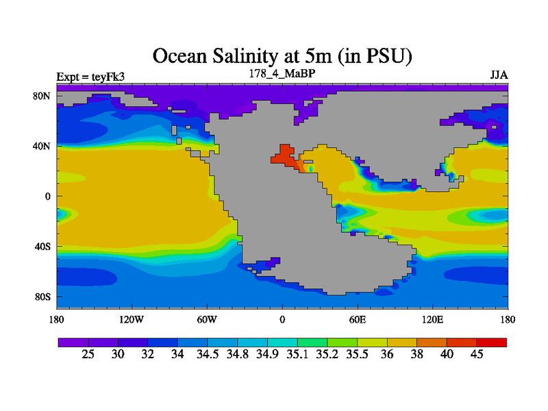 This is the 178.4 Ma simulation using the Scotese palaeogeographies and revised CCN etc. Updated HadCM3L ocean parameters and soil parameters. Also made sure orography gravity wave drag was consistent.