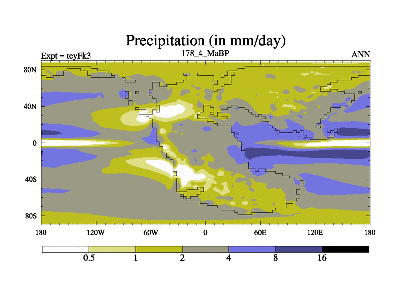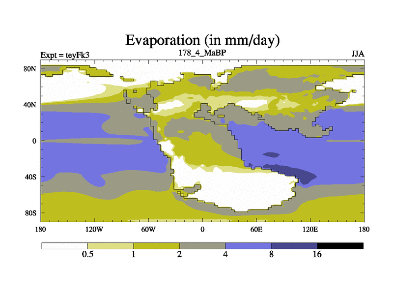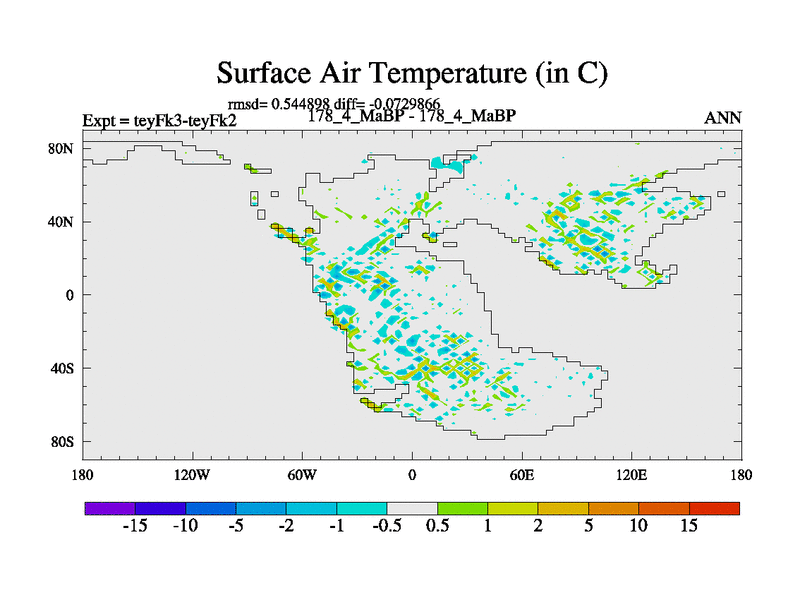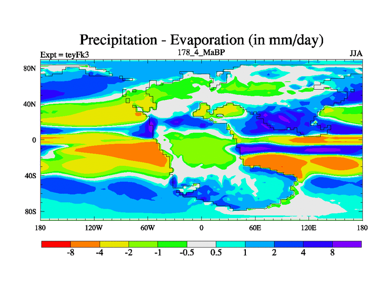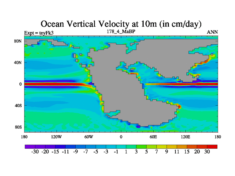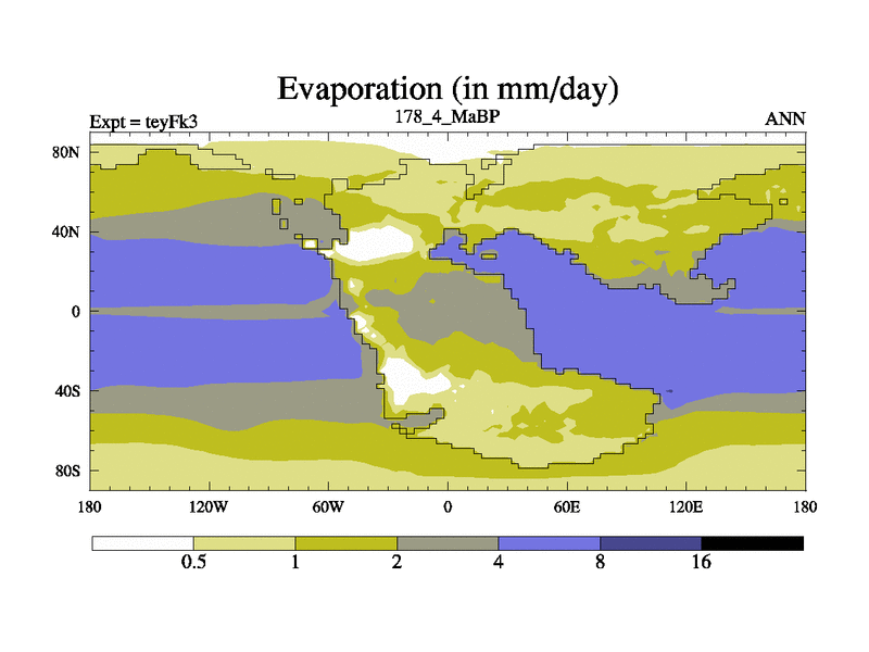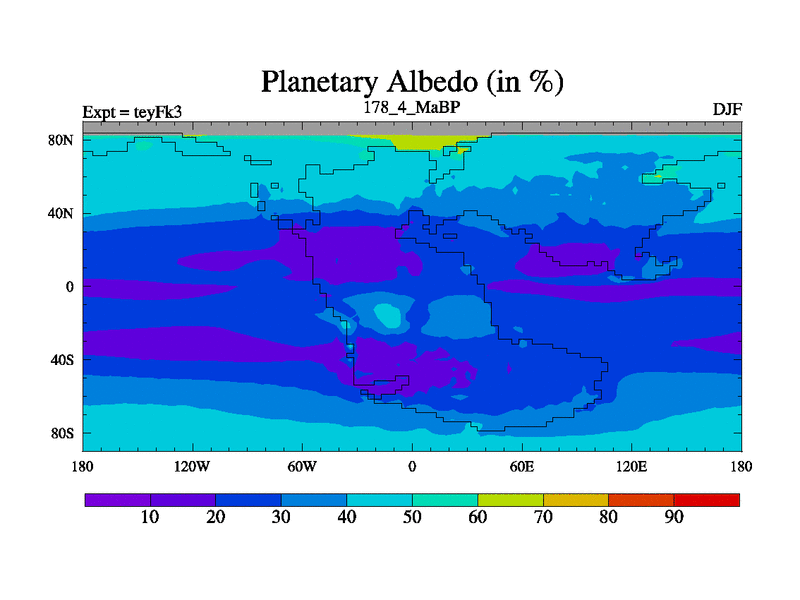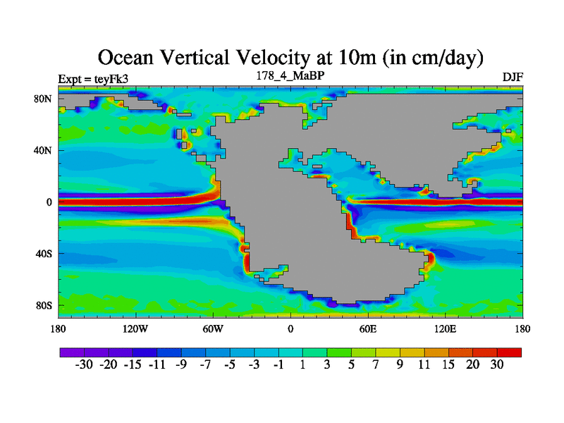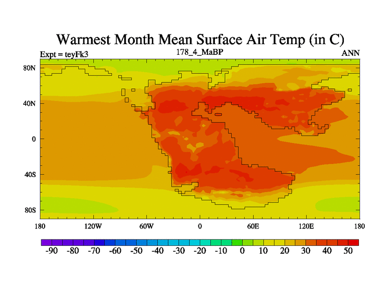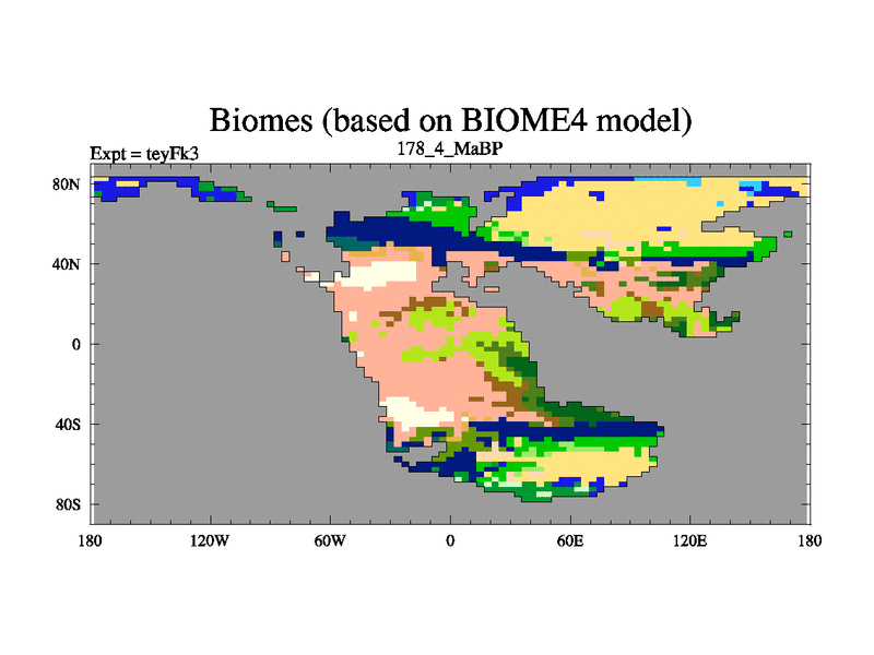 This is the 178.4 Ma simulation using the Scotese palaeogeographies and revised CCN etc. Updated HadCM3L ocean parameters and soil parameters. Also made sure orography gravity wave drag was consistent.