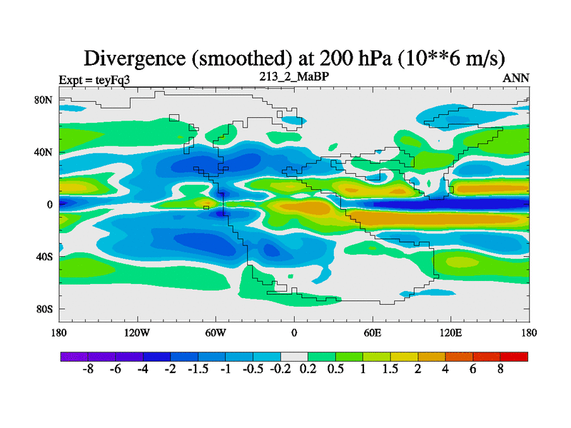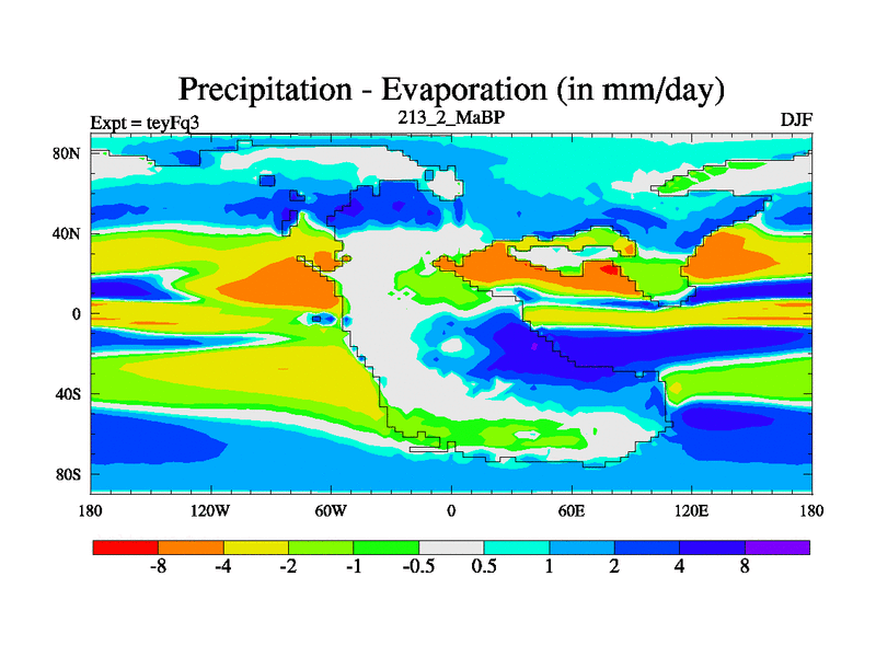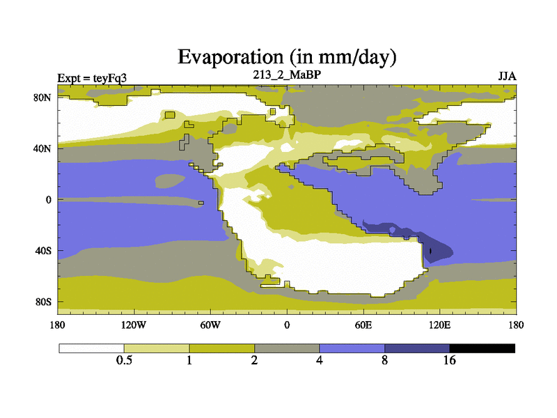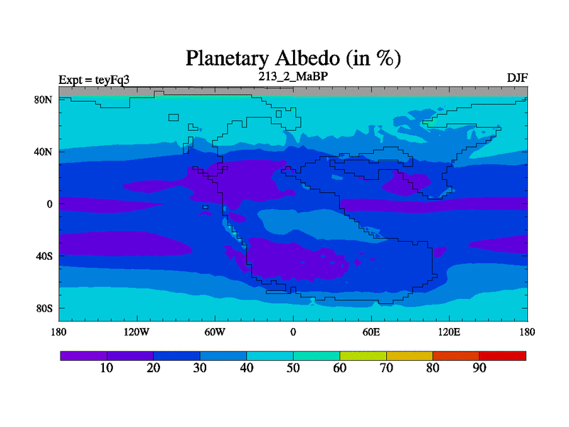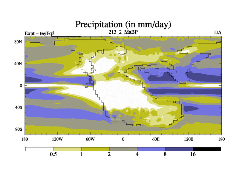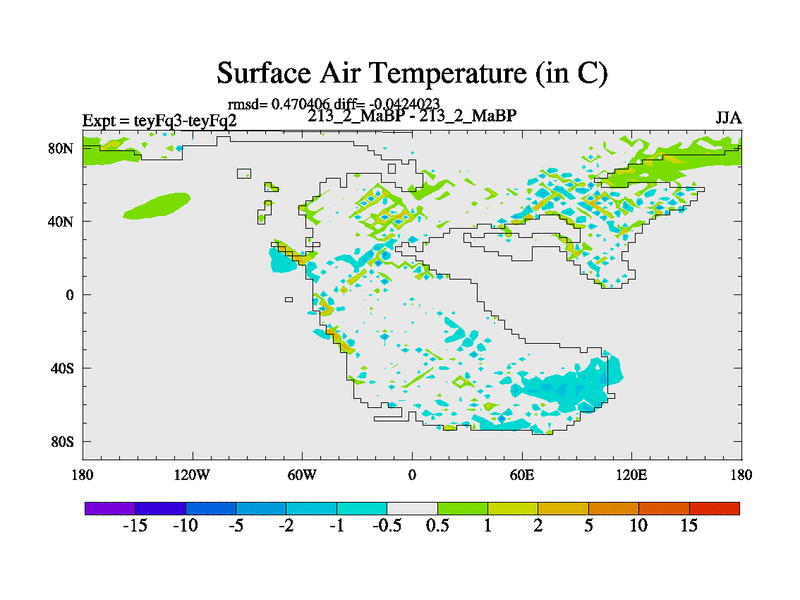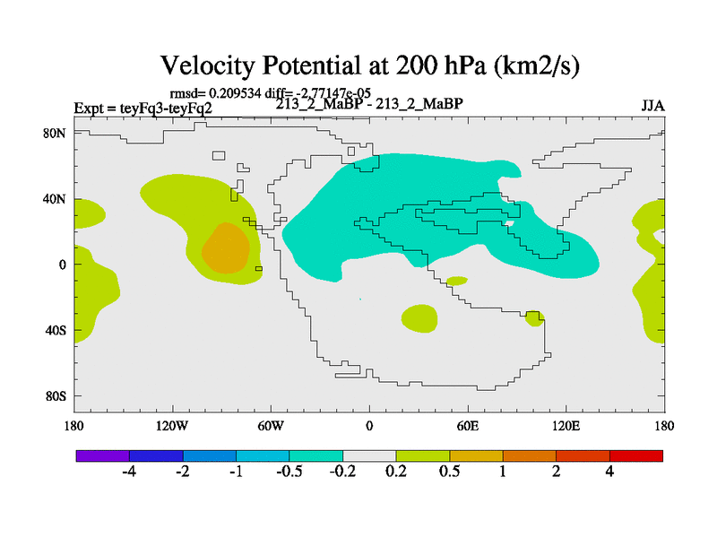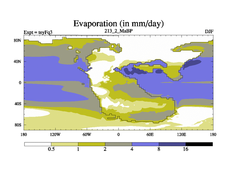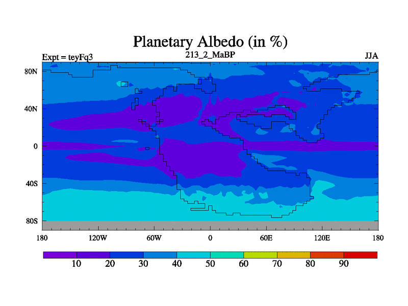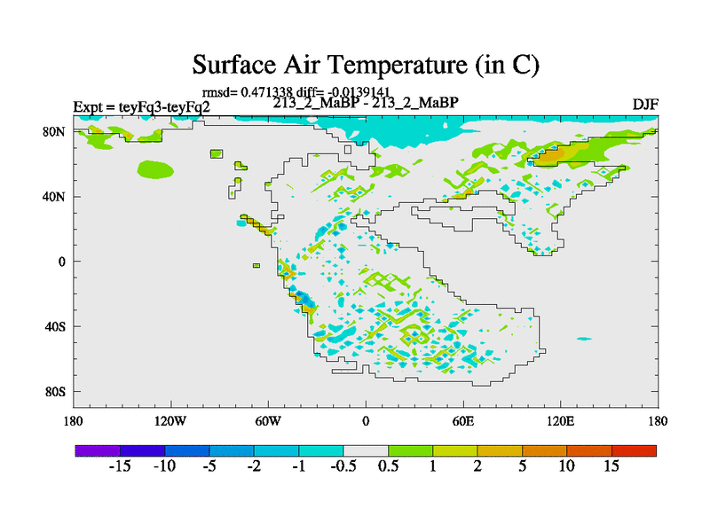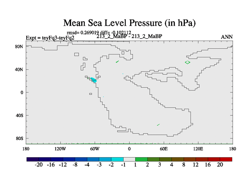 This is the 213.2 Ma simulation using the Scotese palaeogeographies and revised CCN etc. Updated HadCM3L ocean parameters and soil parameters. Also made sure orography gravity wave drag was consistent.