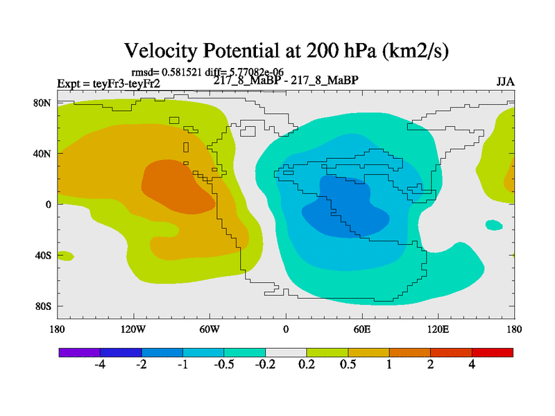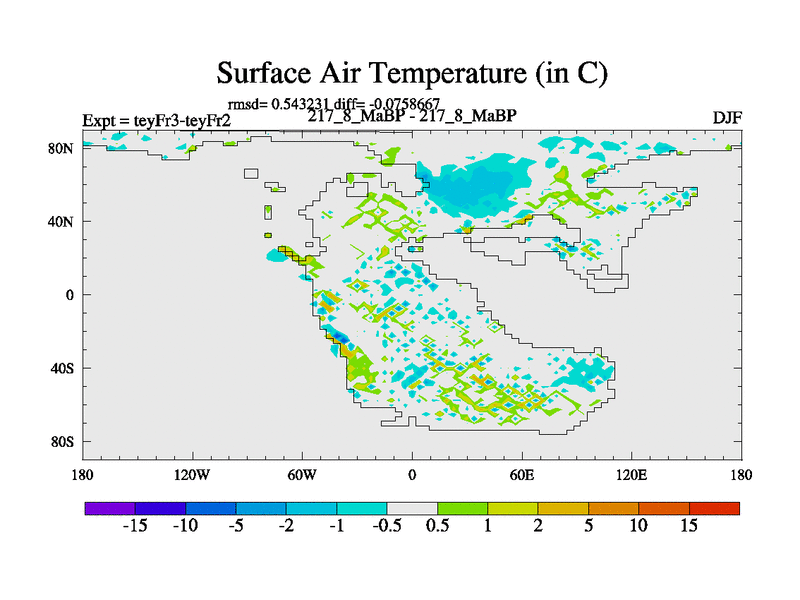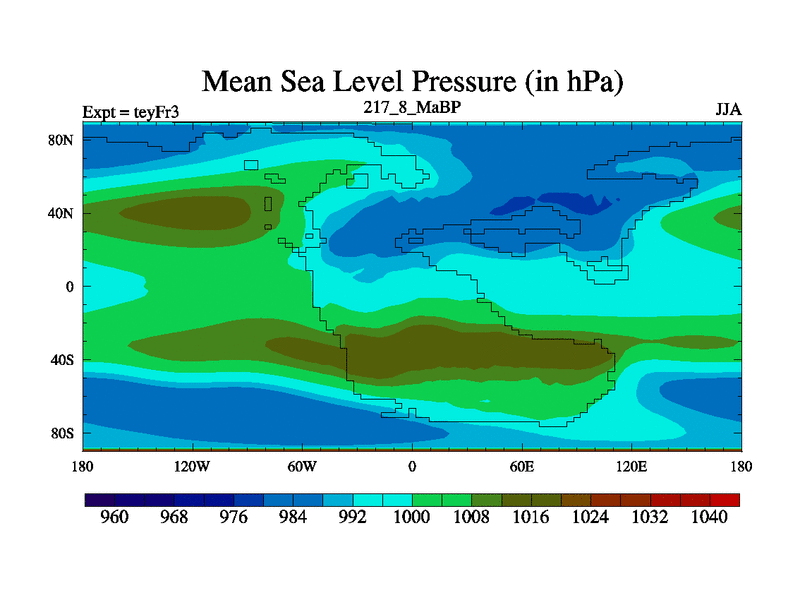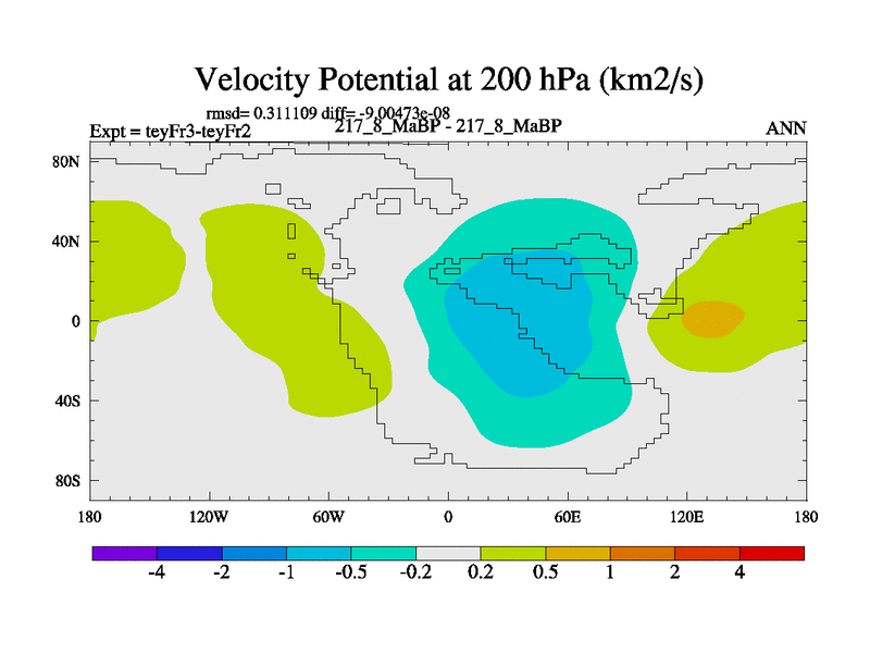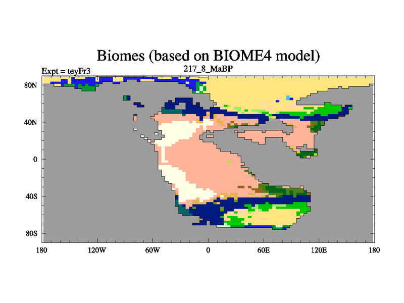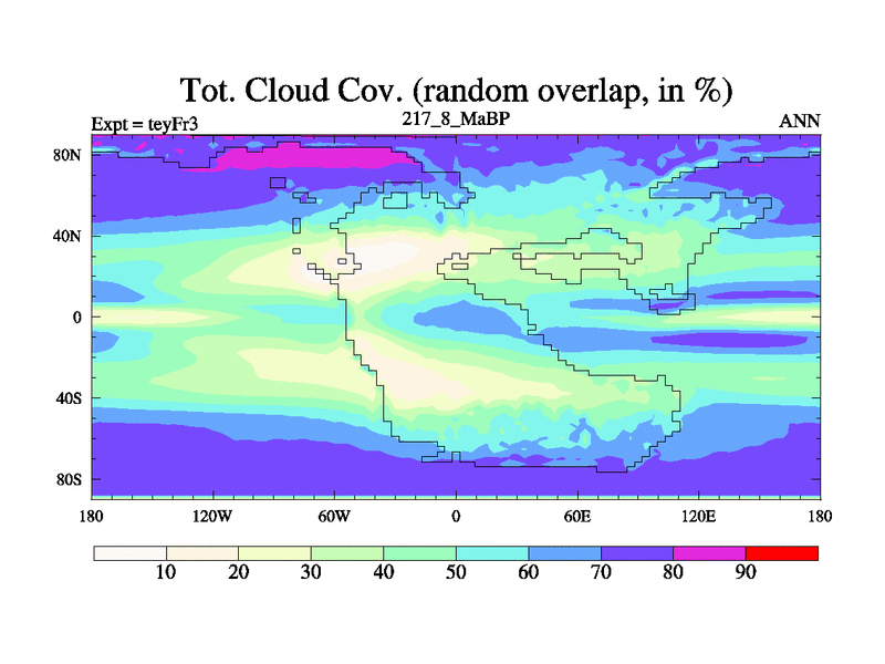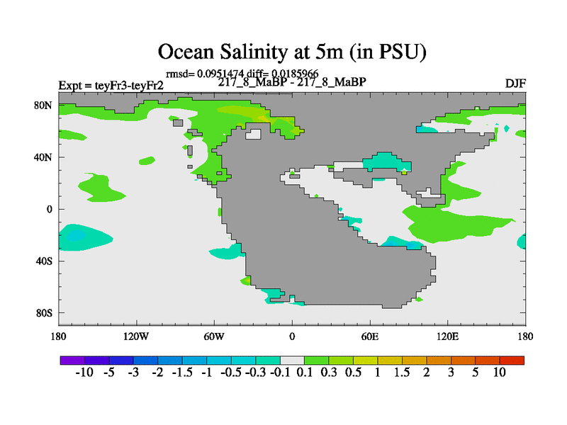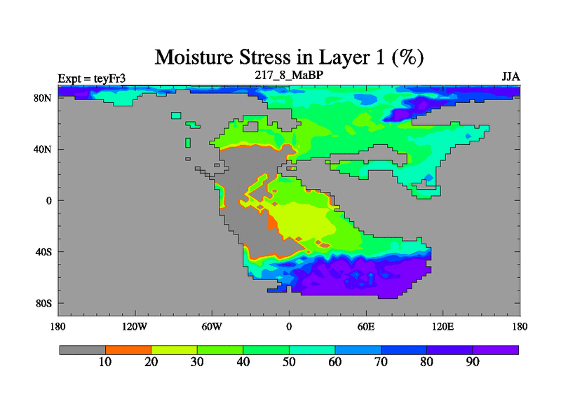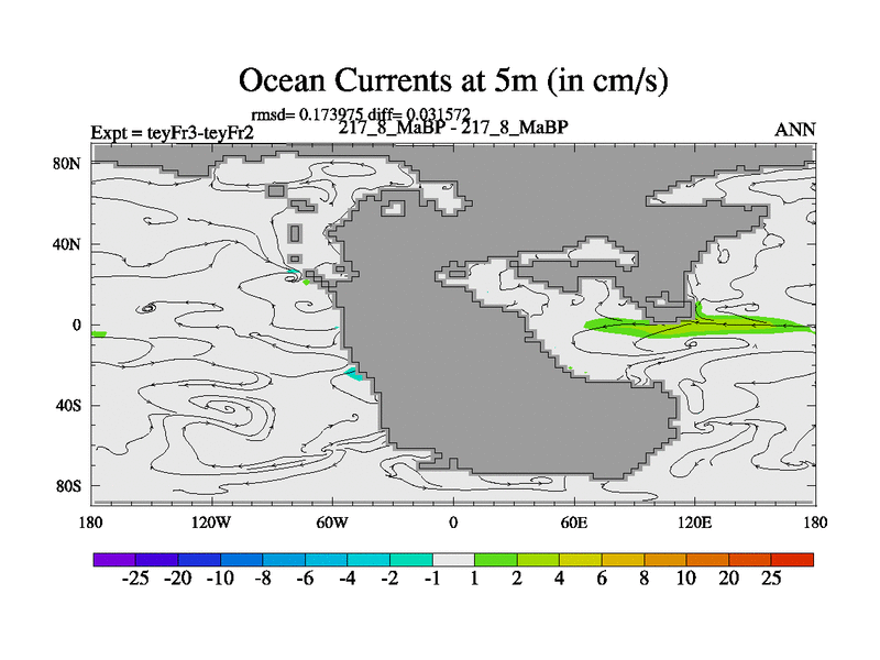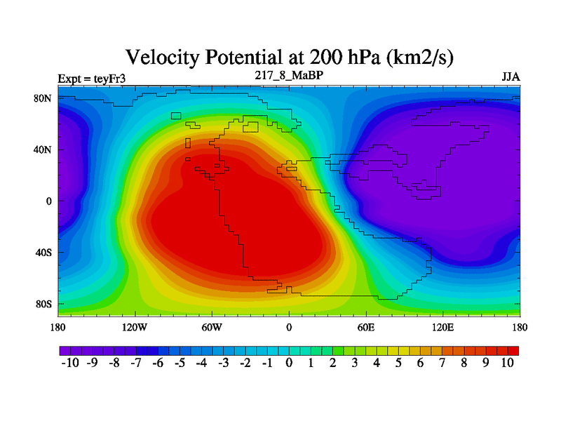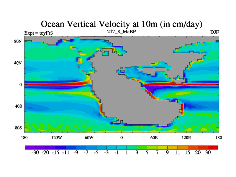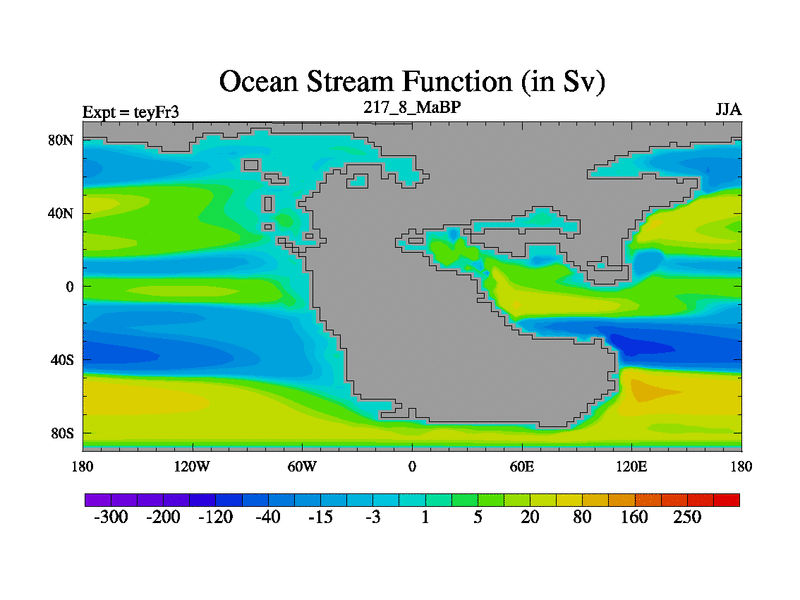 This is the 217.8 Ma simulation using the Scotese palaeogeographies and revised CCN etc. Updated HadCM3L ocean parameters and soil parameters. Also made sure orography gravity wave drag was consistent.