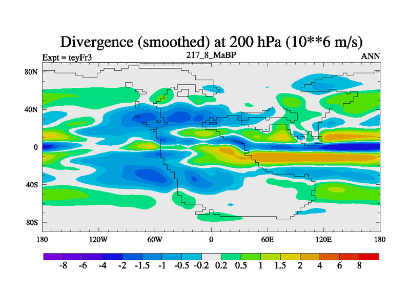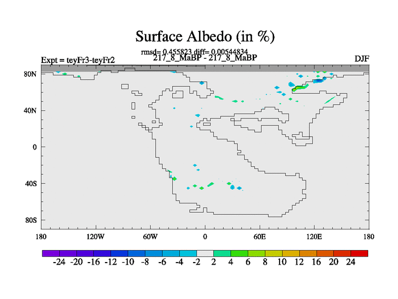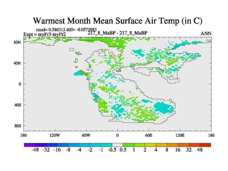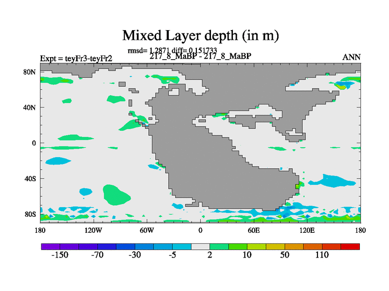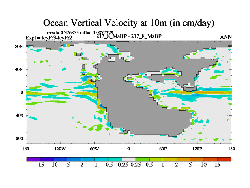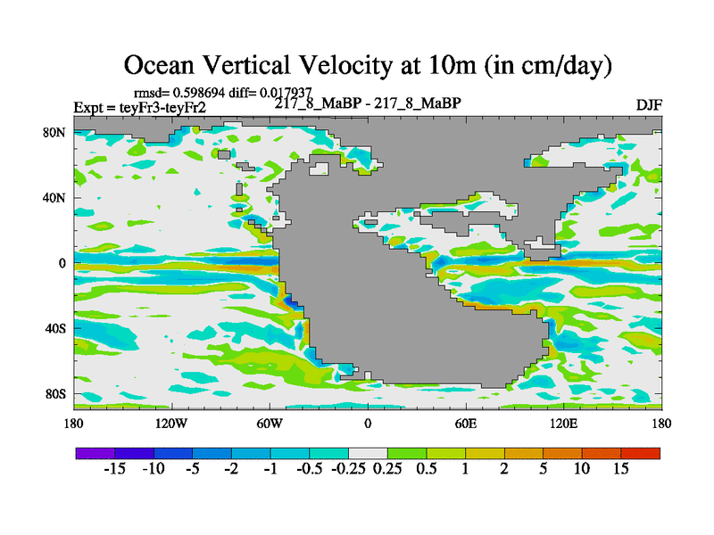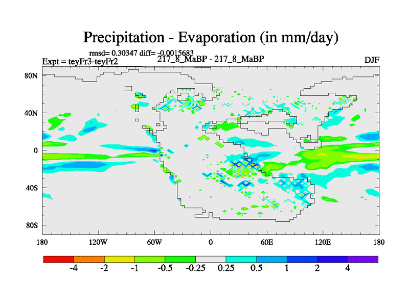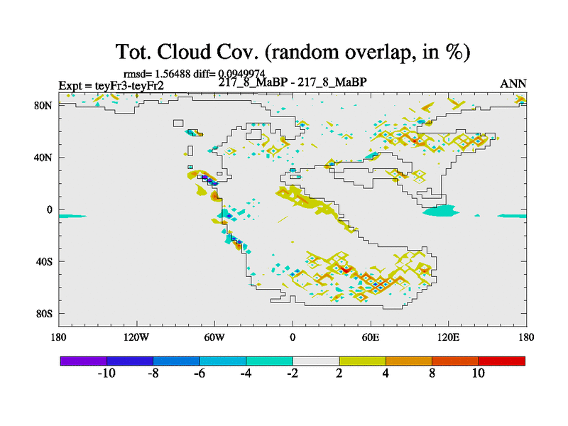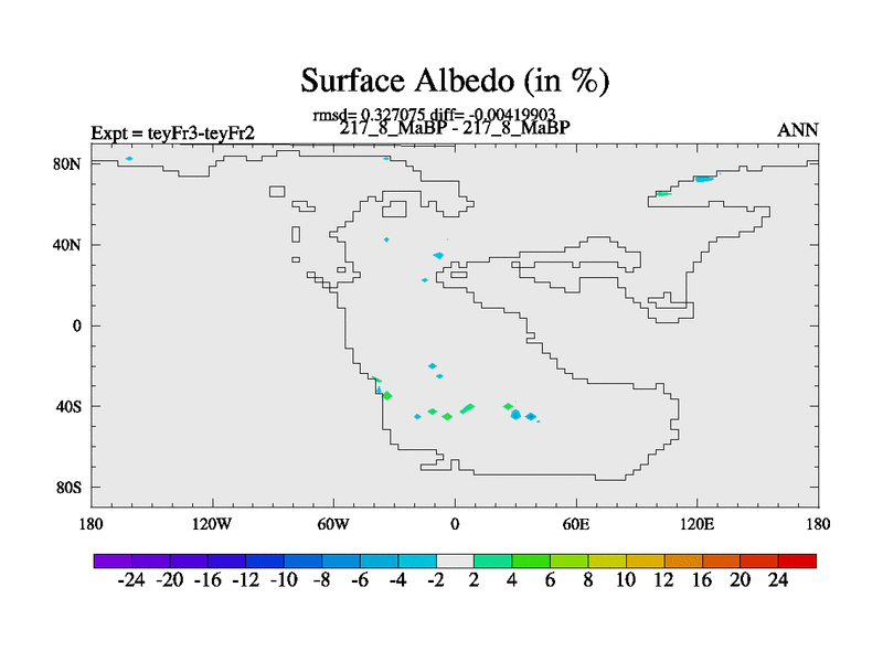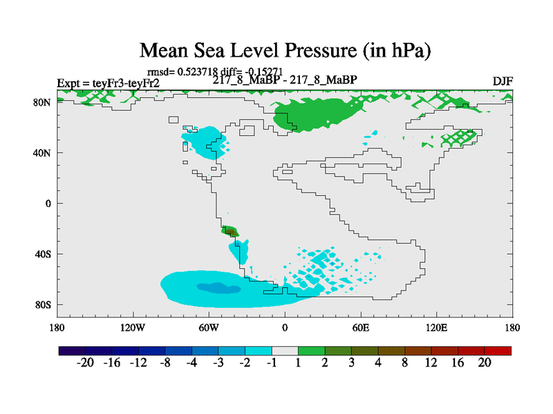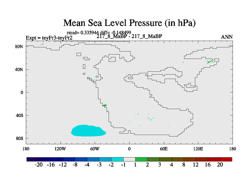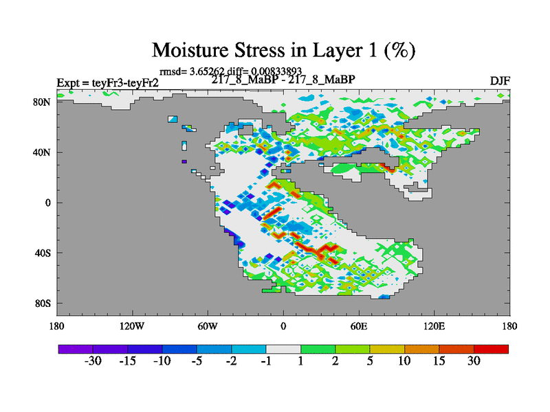 This is the 217.8 Ma simulation using the Scotese palaeogeographies and revised CCN etc. Updated HadCM3L ocean parameters and soil parameters. Also made sure orography gravity wave drag was consistent.