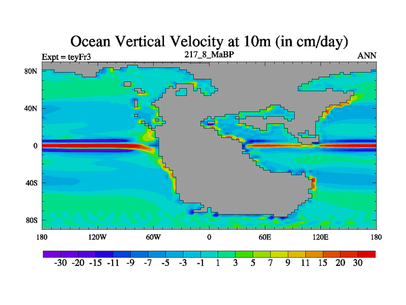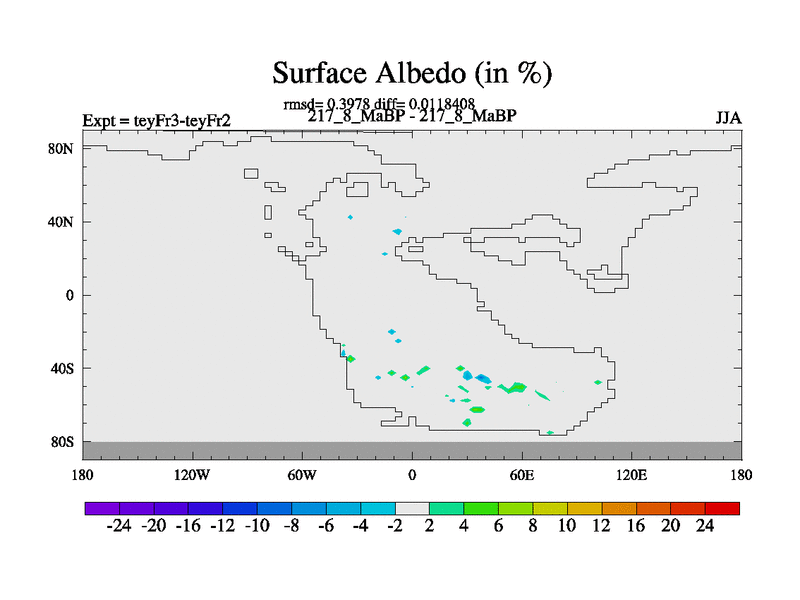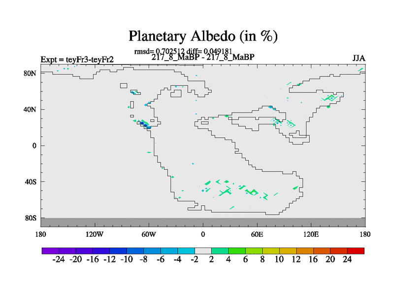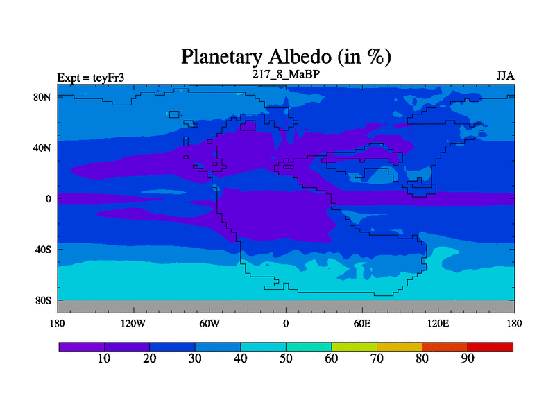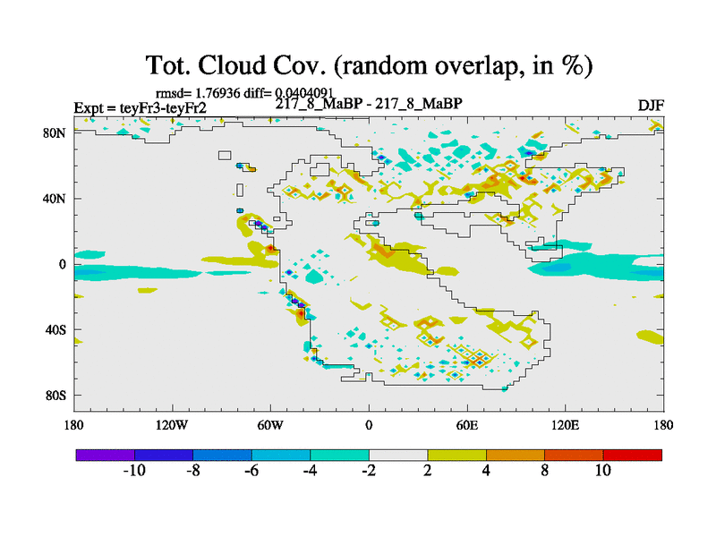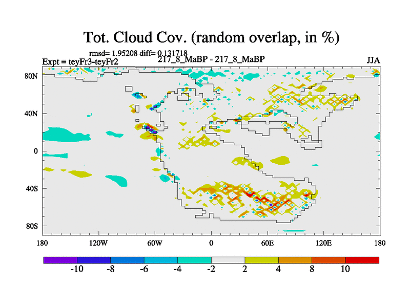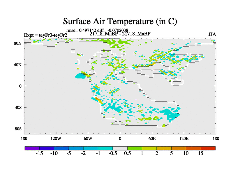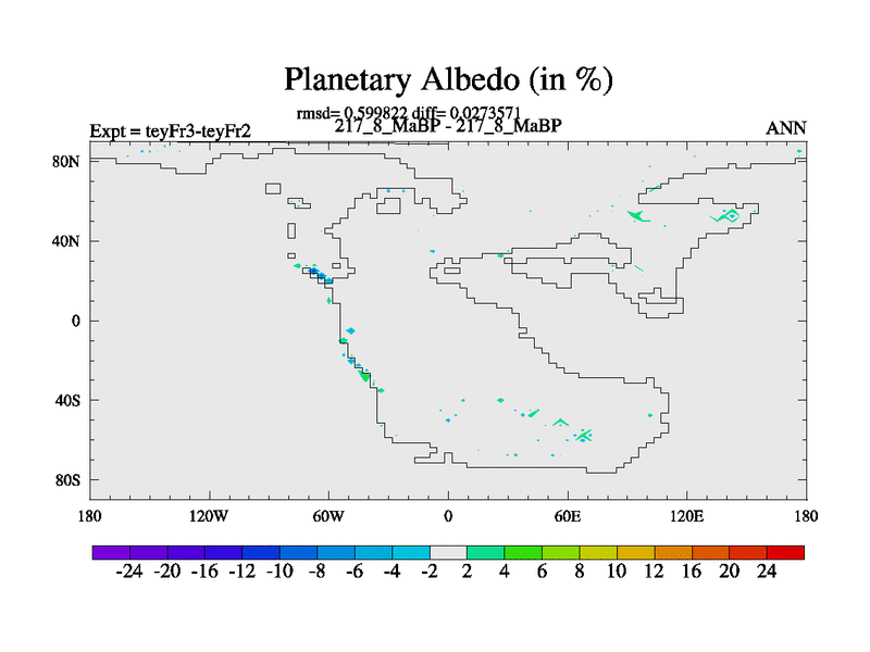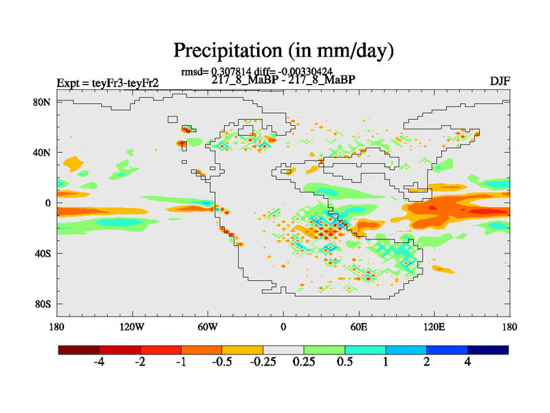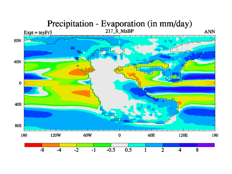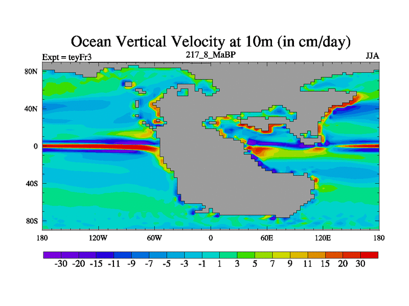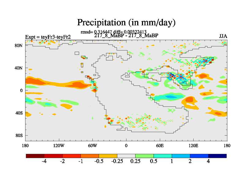 This is the 217.8 Ma simulation using the Scotese palaeogeographies and revised CCN etc. Updated HadCM3L ocean parameters and soil parameters. Also made sure orography gravity wave drag was consistent.
