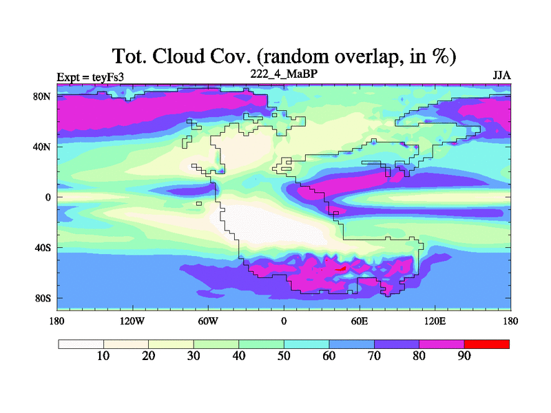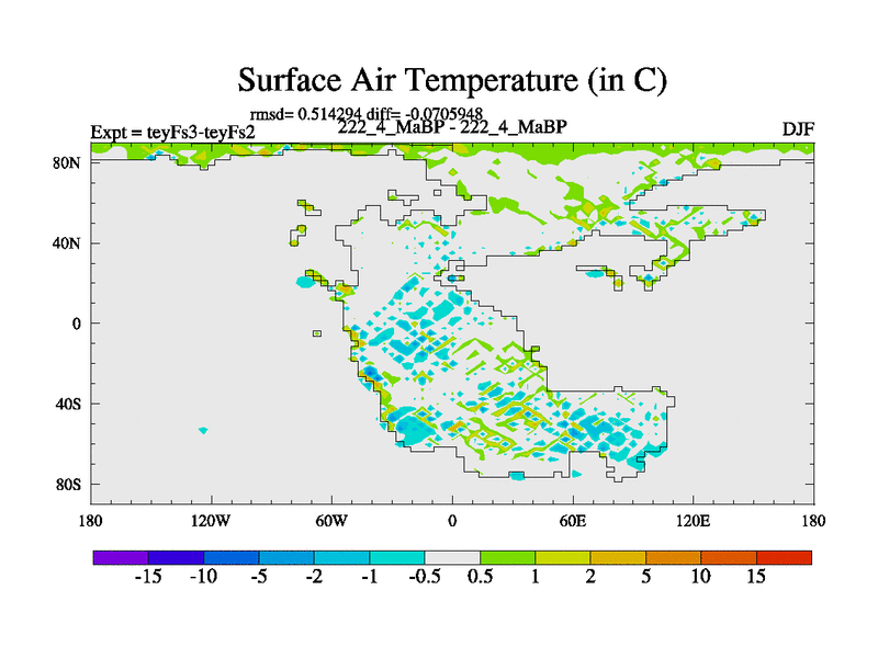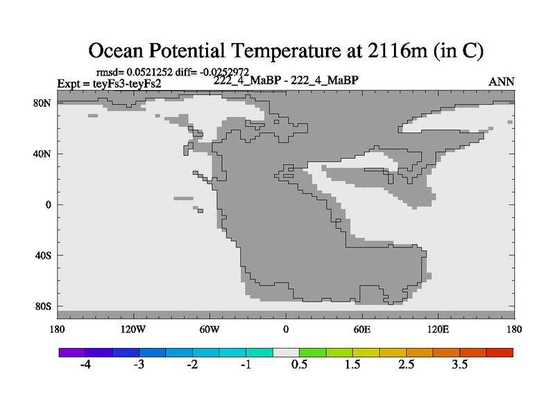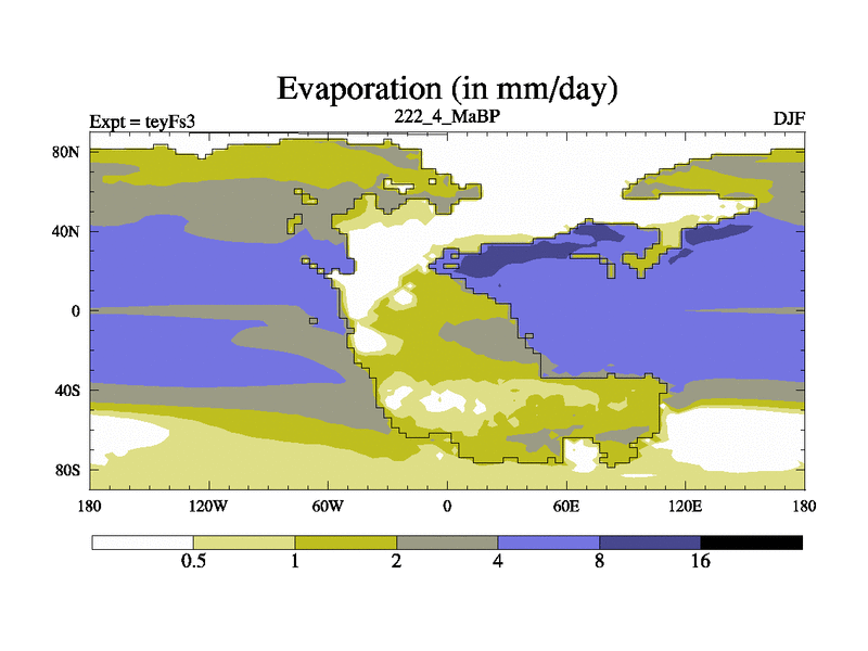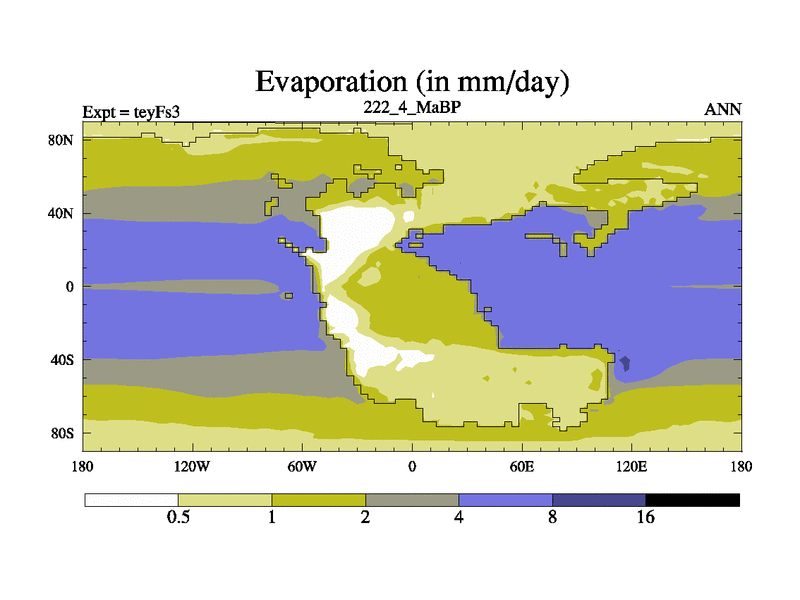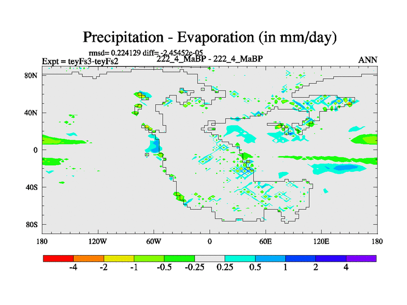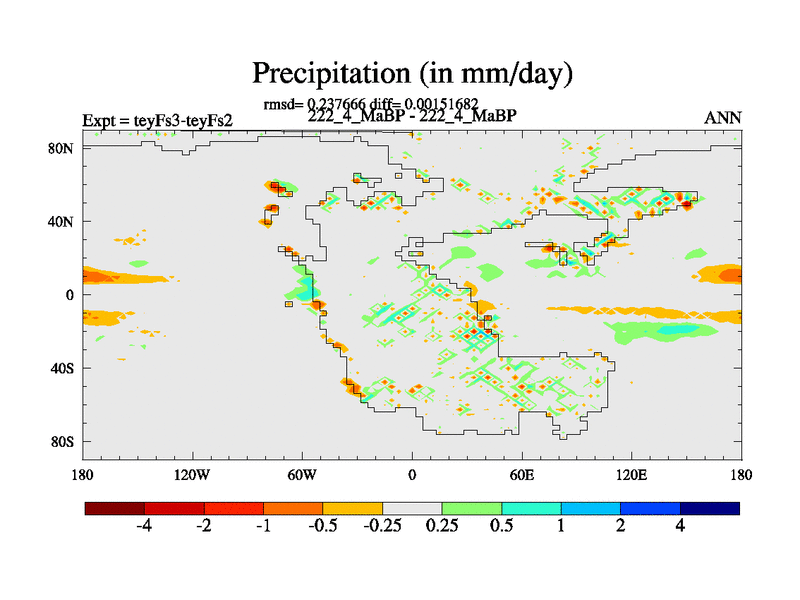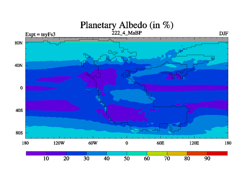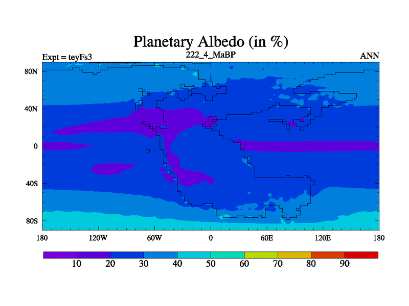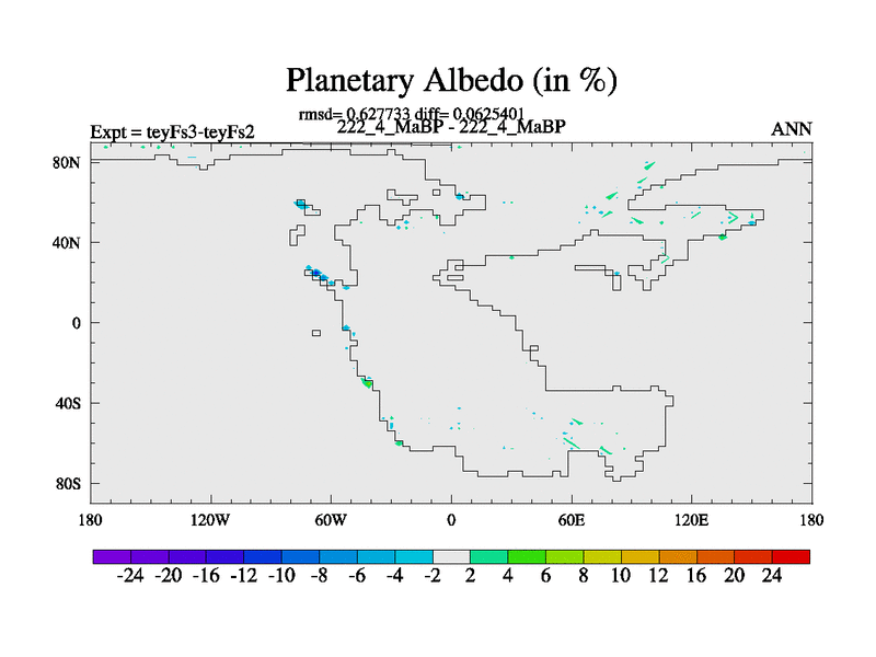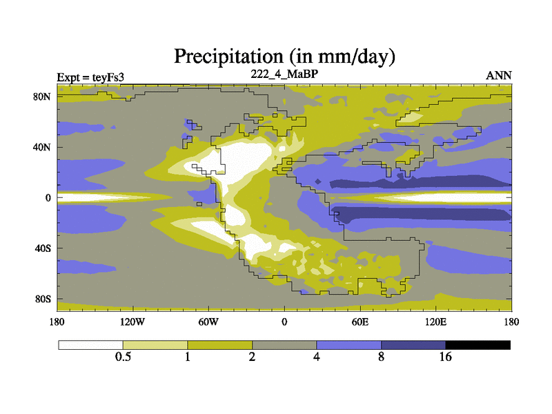 This is the 222.4 Ma simulation using the Scotese palaeogeographies and revised CCN etc. Updated HadCM3L ocean parameters and soil parameters. Also made sure orography gravity wave drag was consistent.