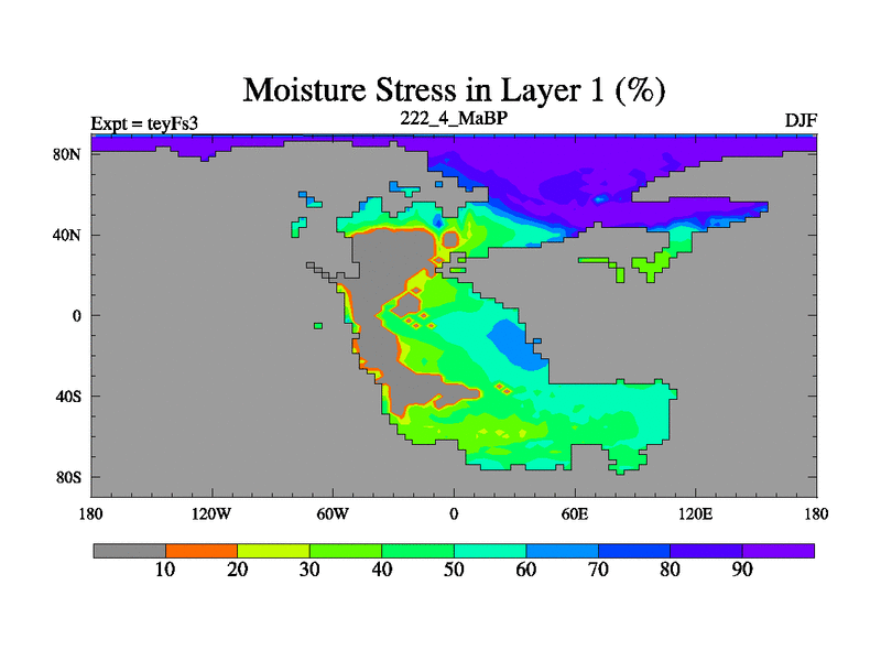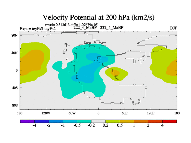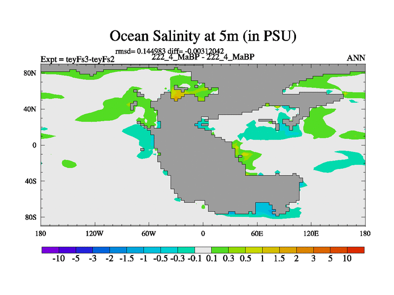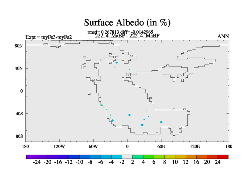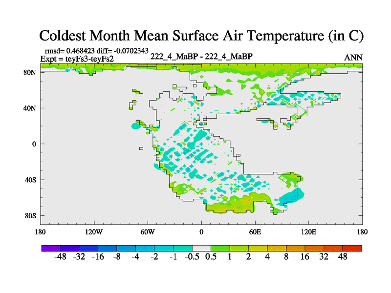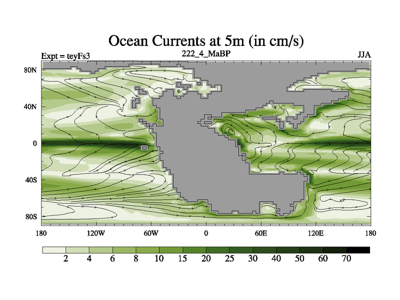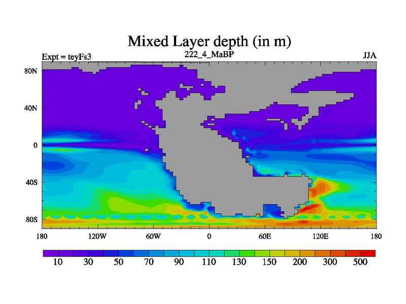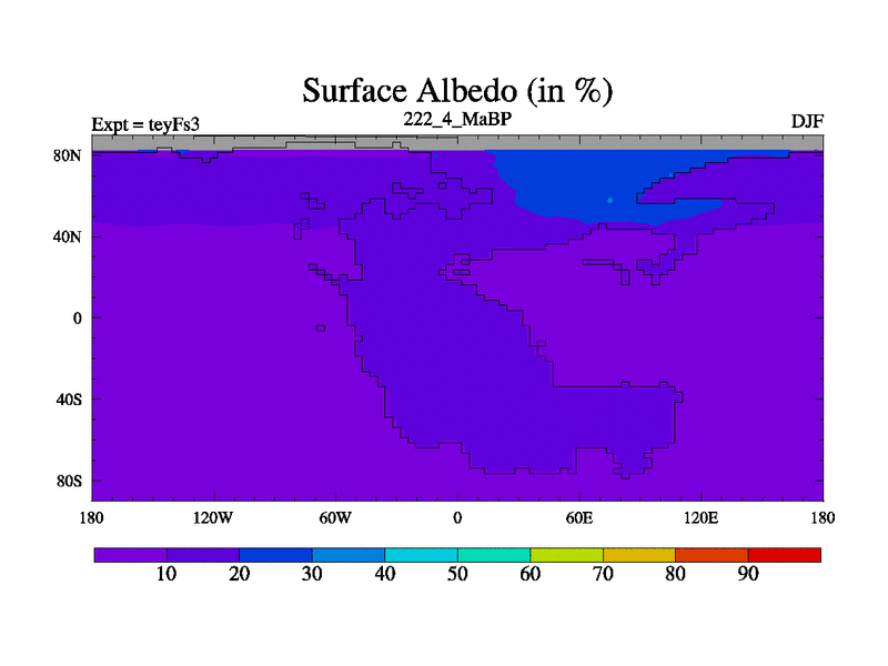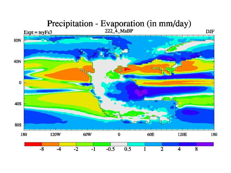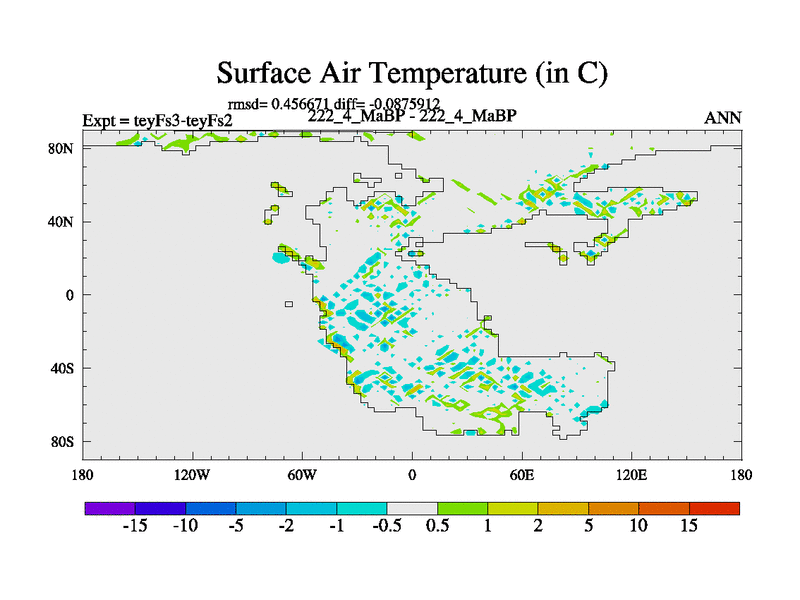 This is the 222.4 Ma simulation using the Scotese palaeogeographies and revised CCN etc. Updated HadCM3L ocean parameters and soil parameters. Also made sure orography gravity wave drag was consistent.