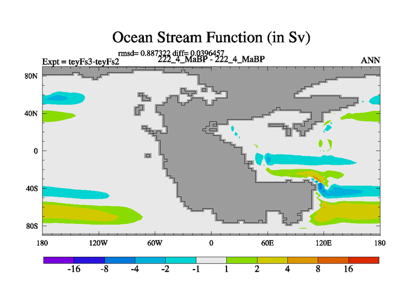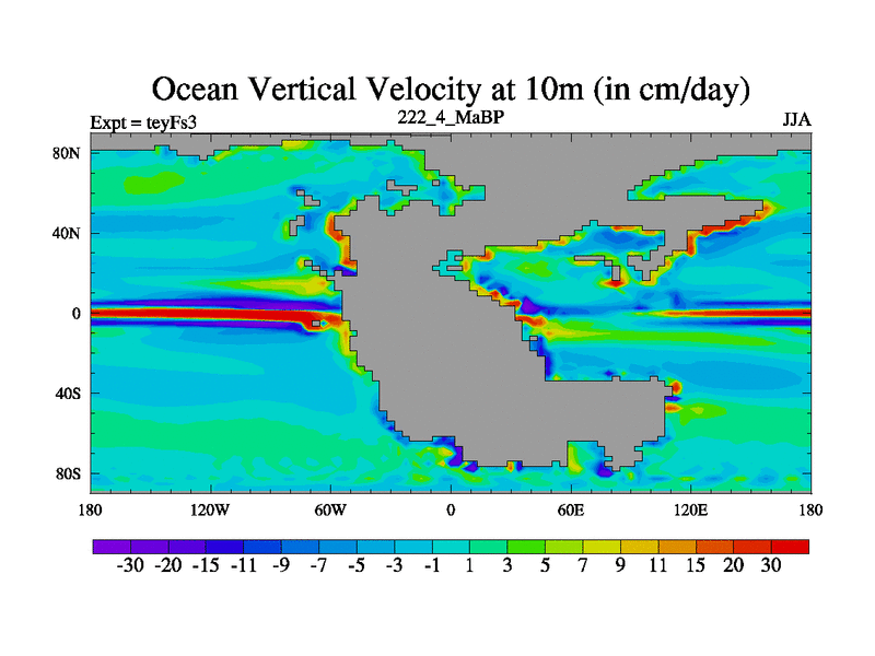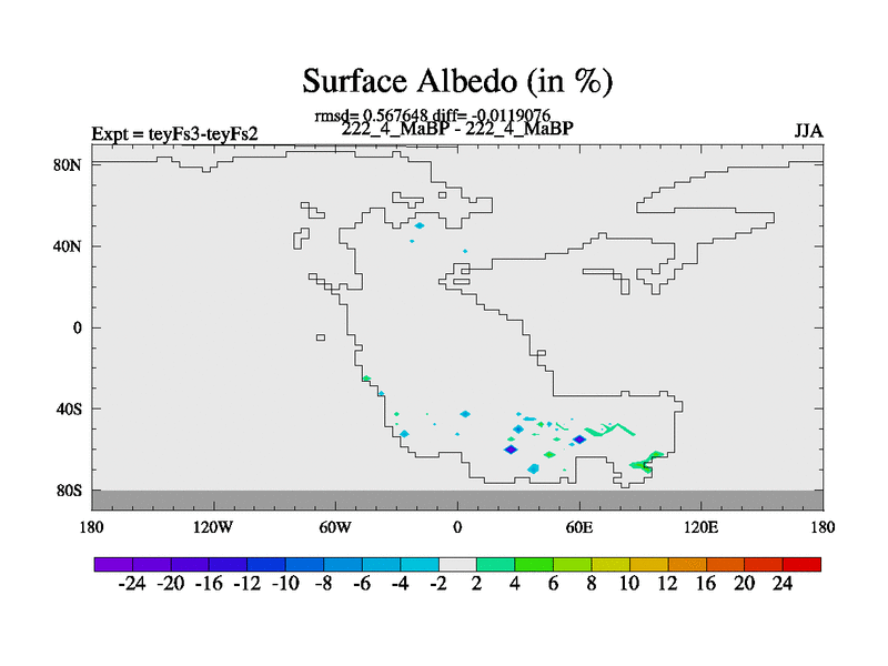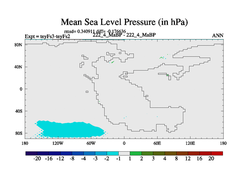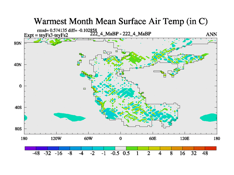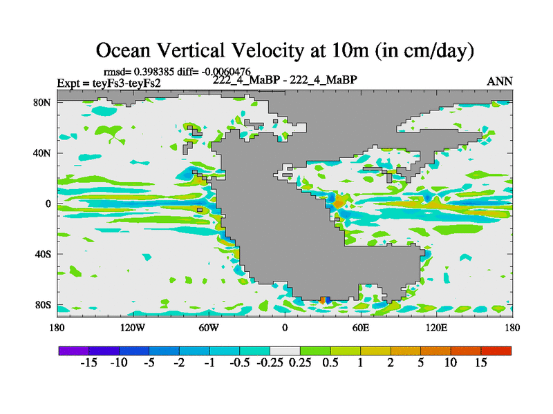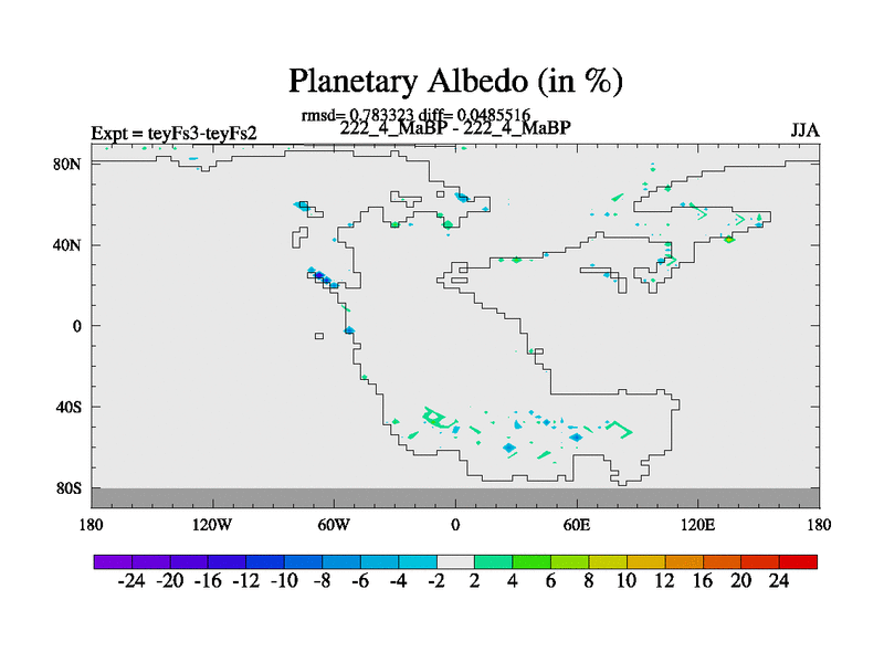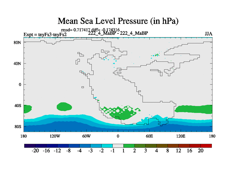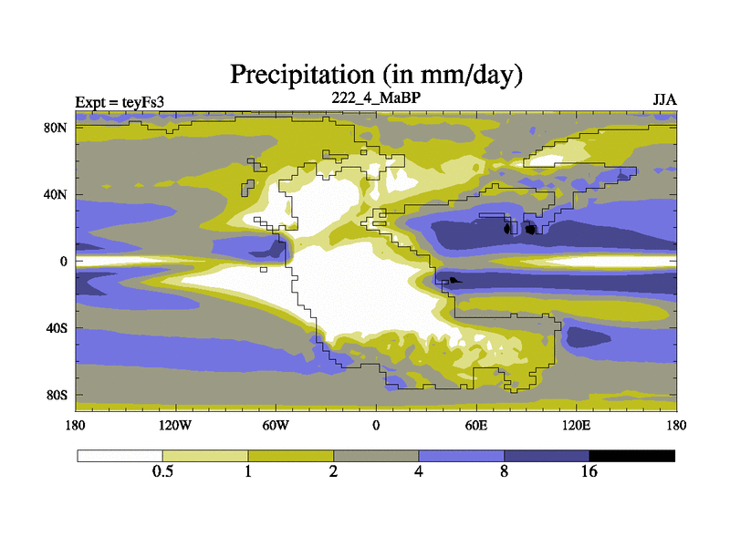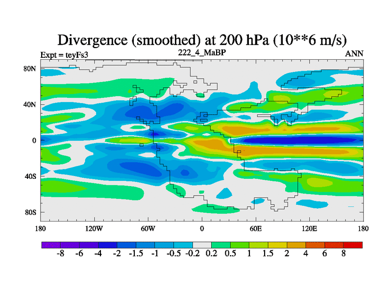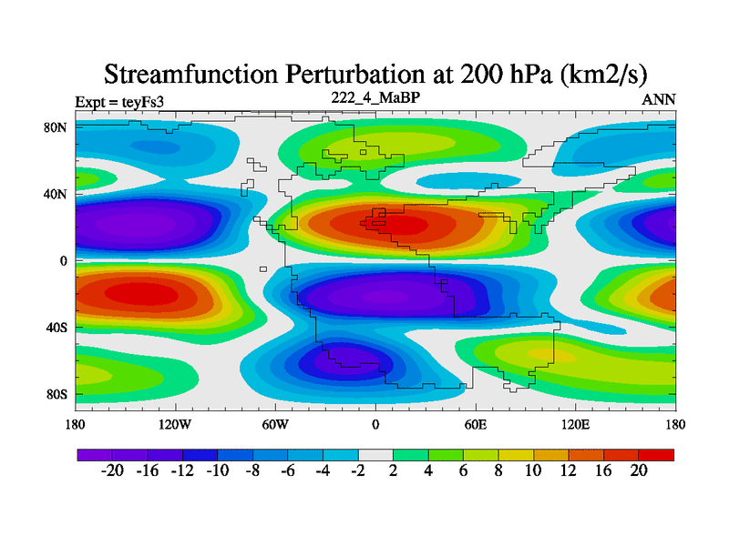 This is the 222.4 Ma simulation using the Scotese palaeogeographies and revised CCN etc. Updated HadCM3L ocean parameters and soil parameters. Also made sure orography gravity wave drag was consistent.