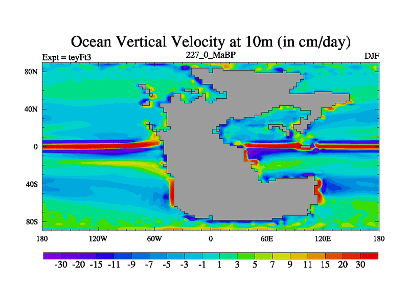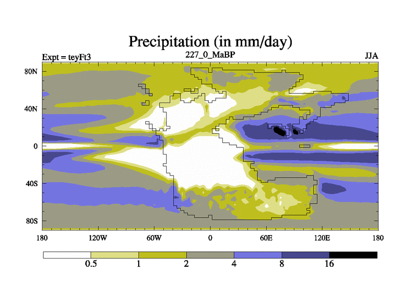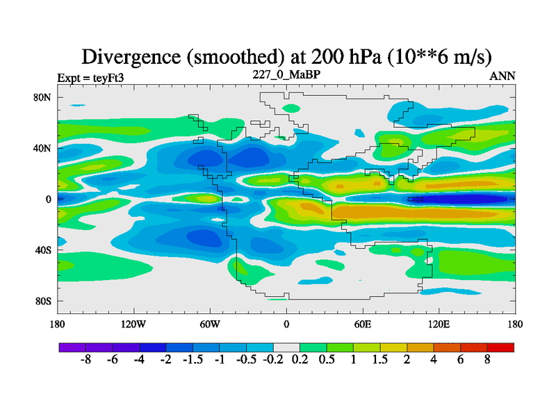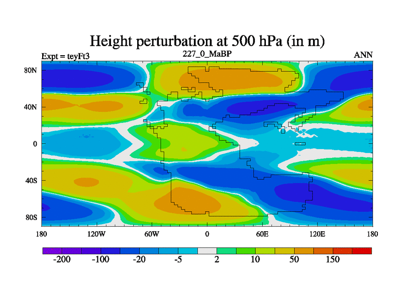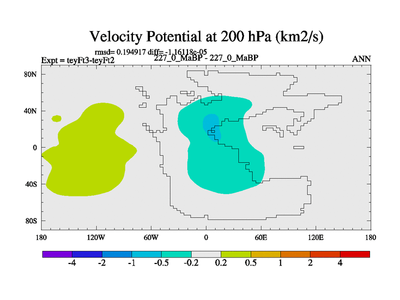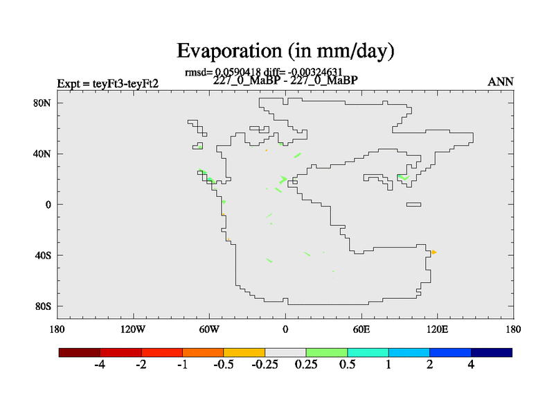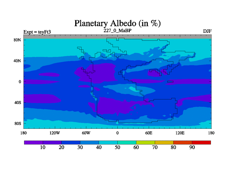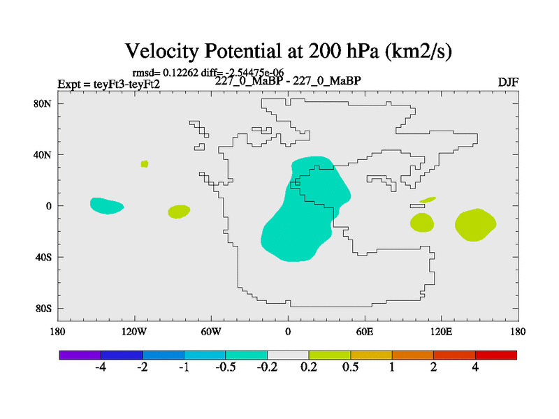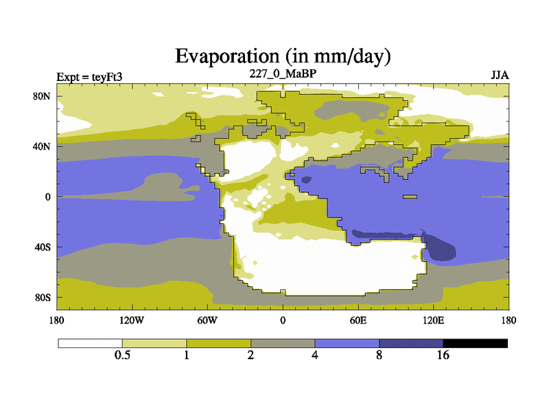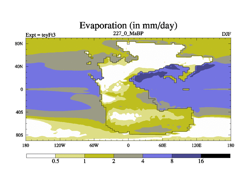 This is the 227.0 Ma simulation using the Scotese palaeogeographies and revised CCN etc. Updated HadCM3L ocean parameters and soil parameters. Also made sure orography gravity wave drag was consistent.
