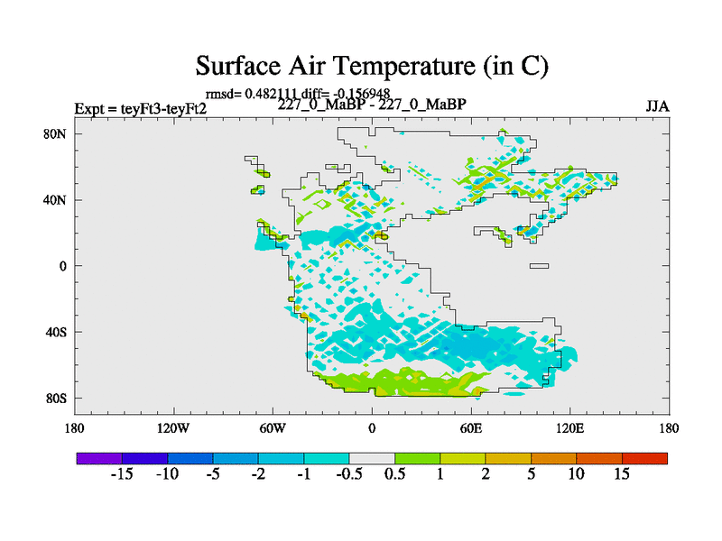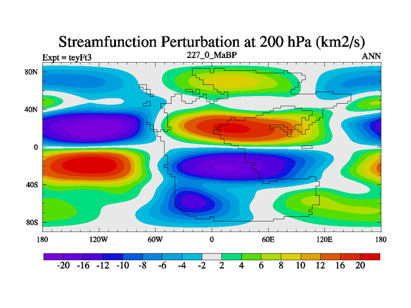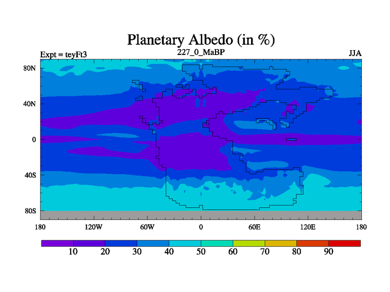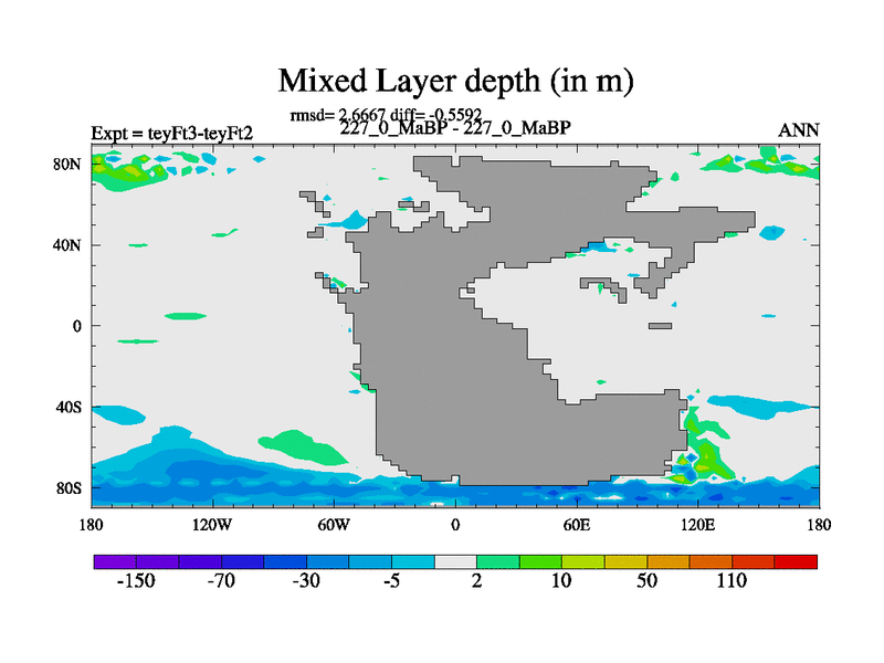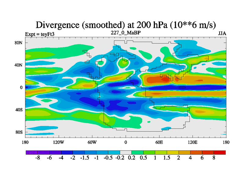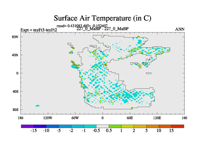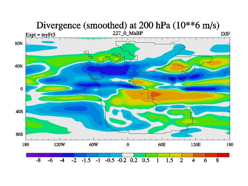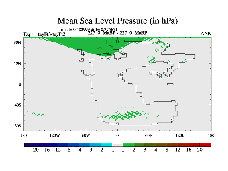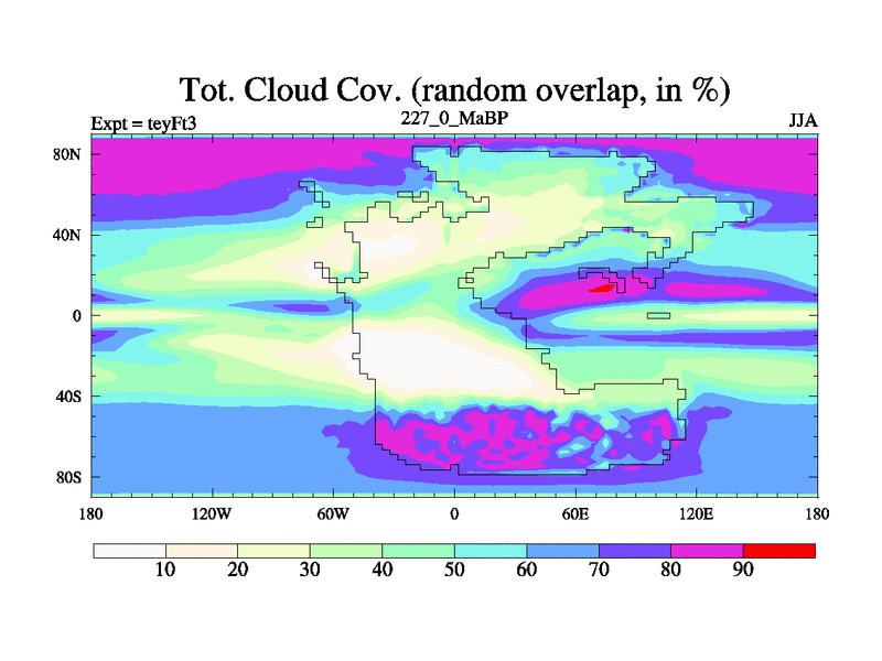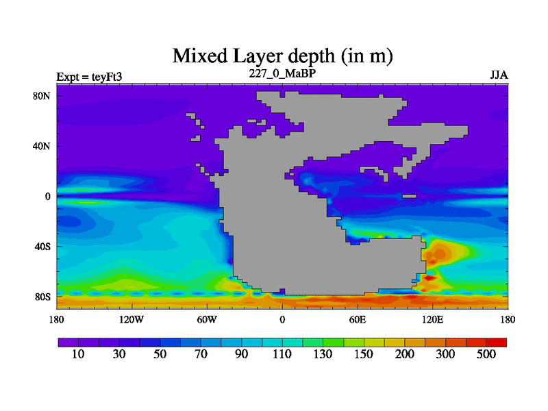 This is the 227.0 Ma simulation using the Scotese palaeogeographies and revised CCN etc. Updated HadCM3L ocean parameters and soil parameters. Also made sure orography gravity wave drag was consistent.