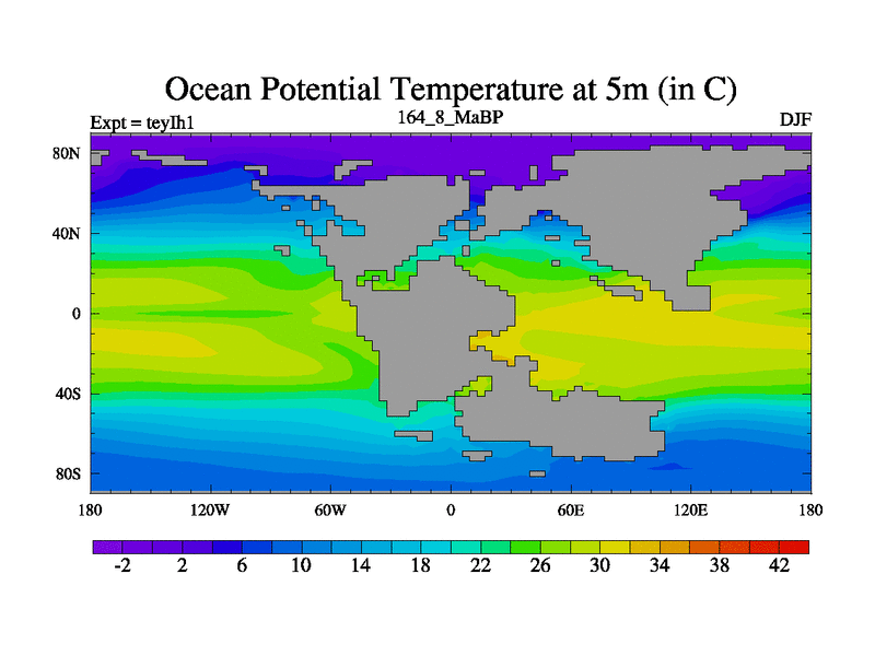 This is the 164.8 Ma simulation using the Scotese palaeogeographies and revised CCN etc. Now includes ocean biogeochemistry