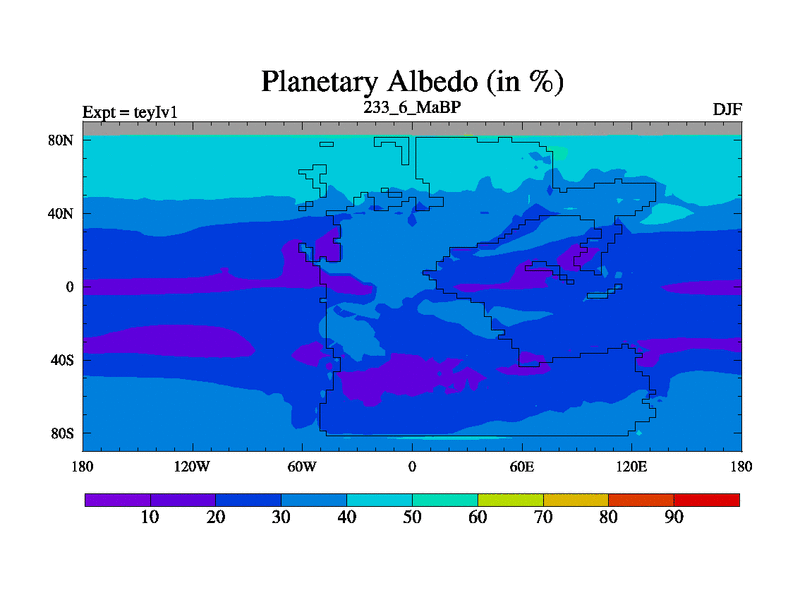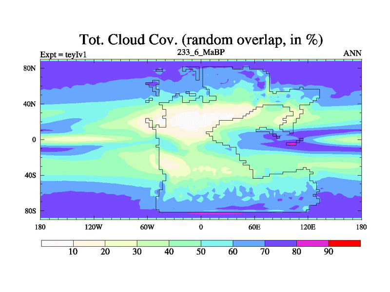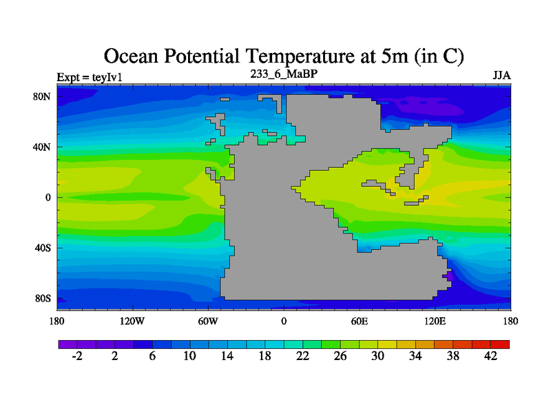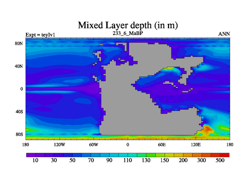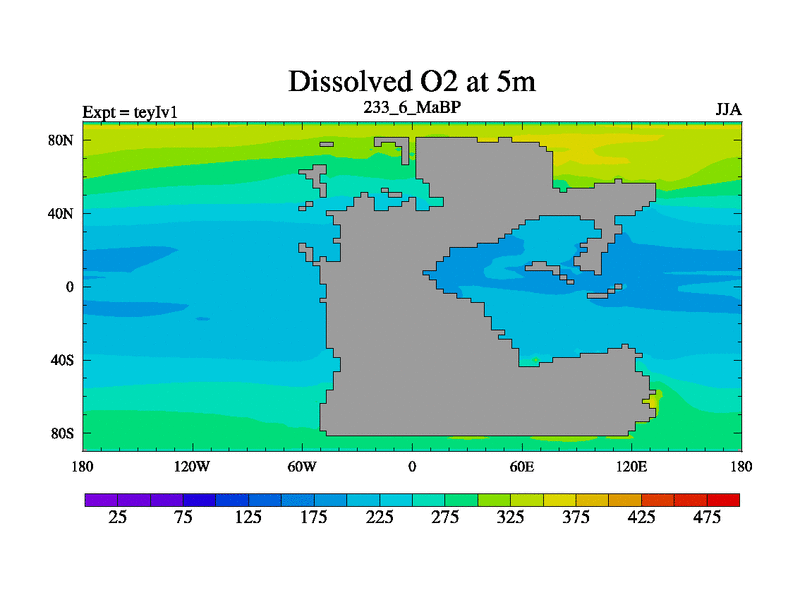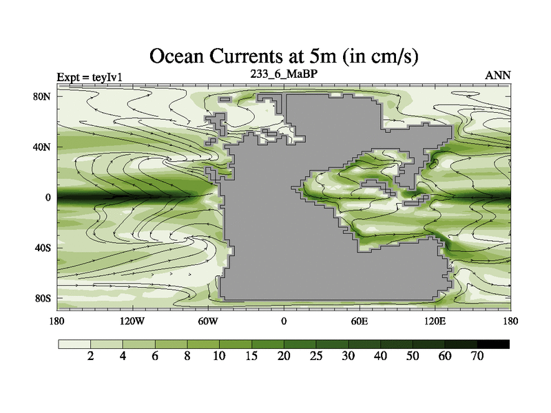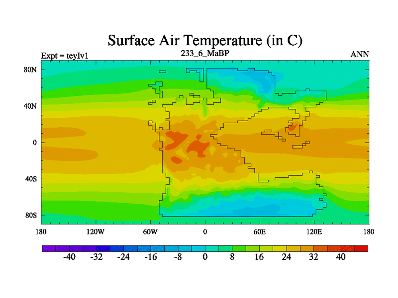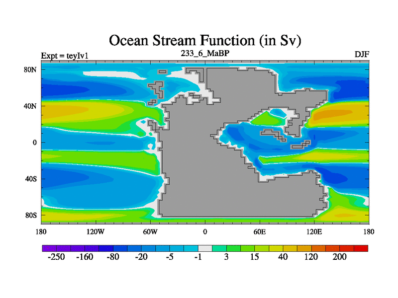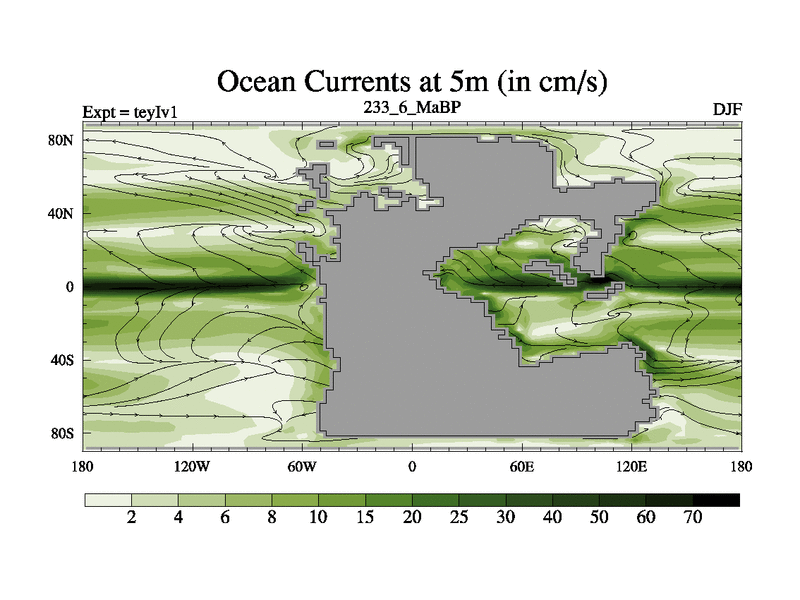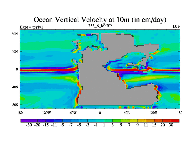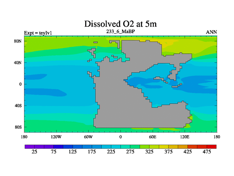 This is the 233.6 Ma simulation using the Scotese palaeogeographies and revised CCN etc. Now includes ocean biogeochemistry