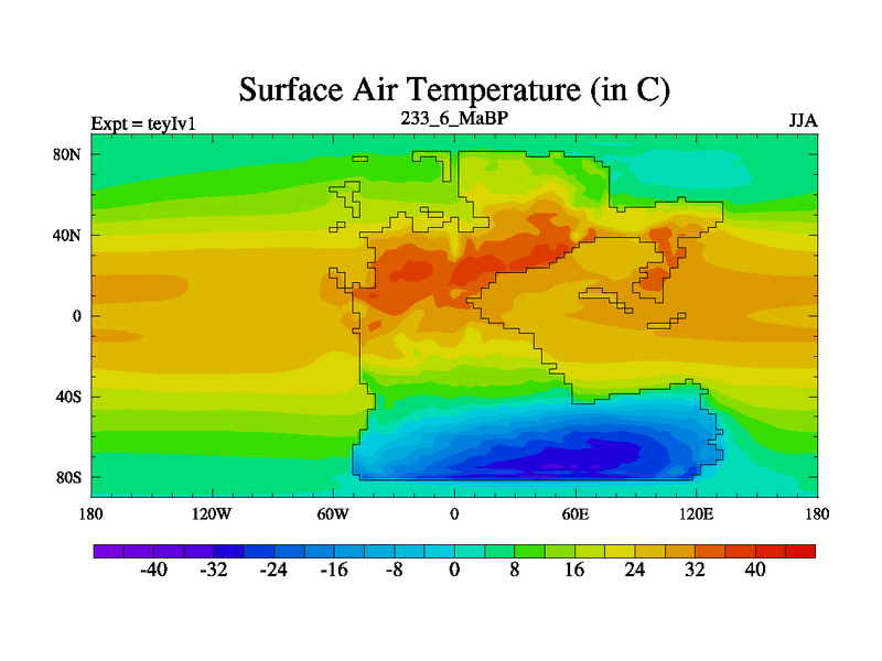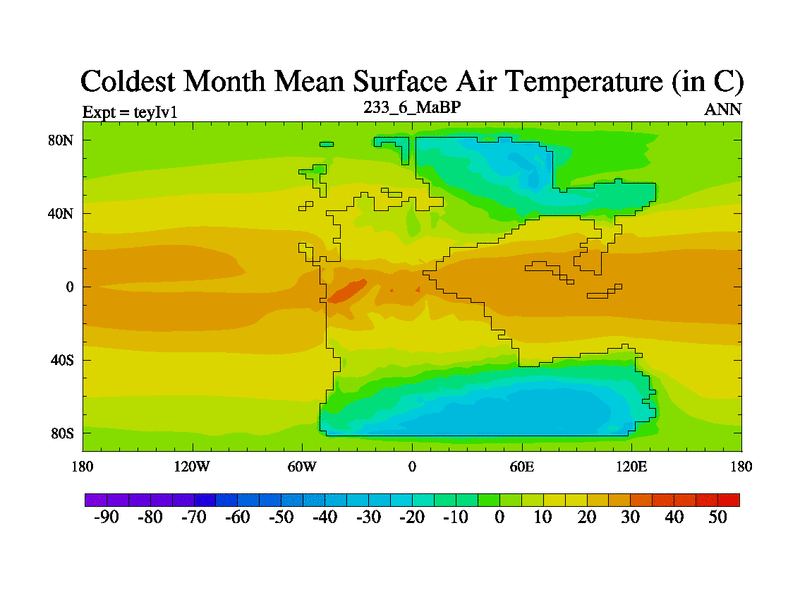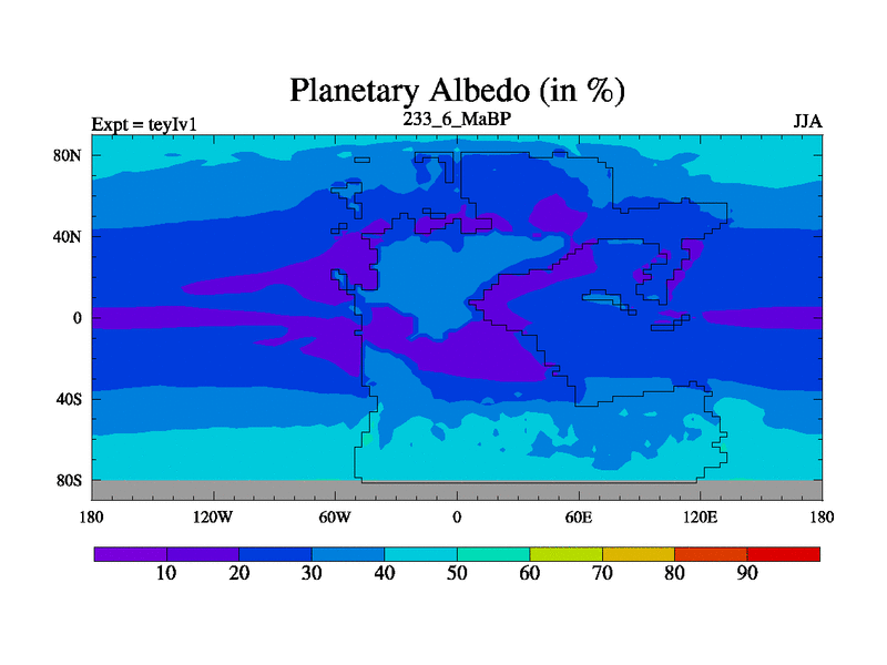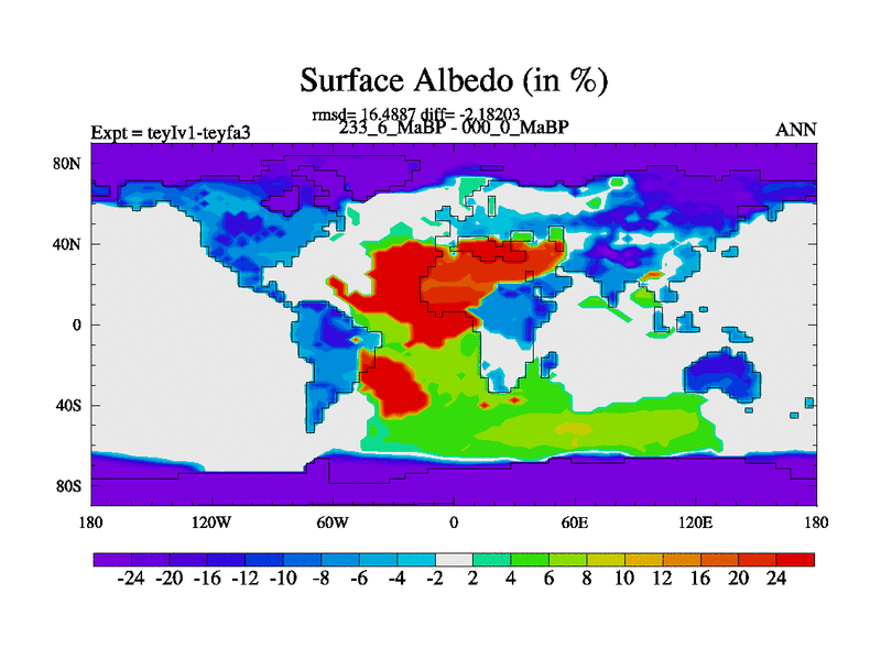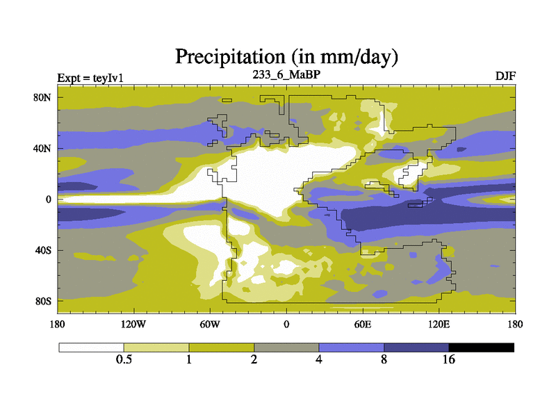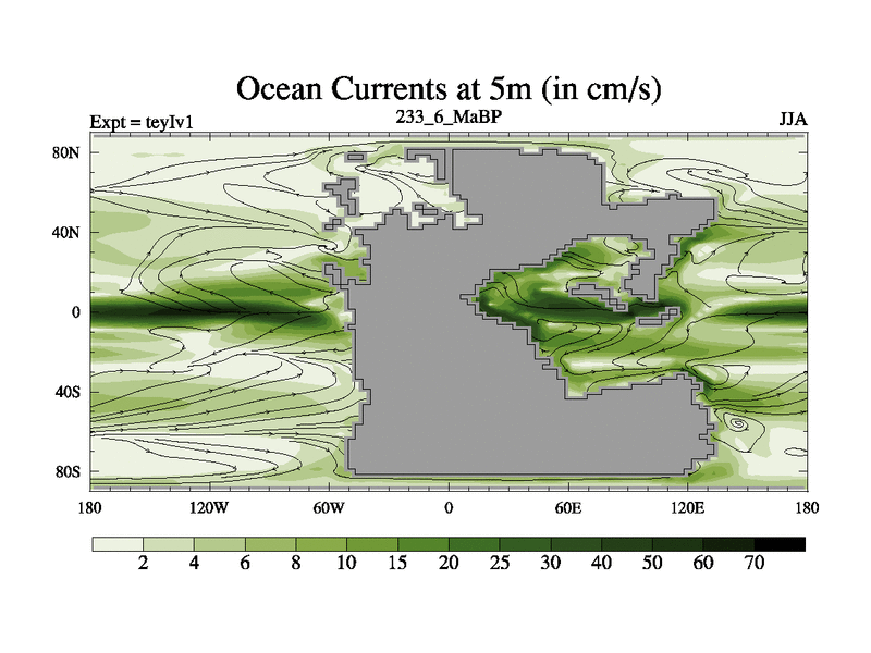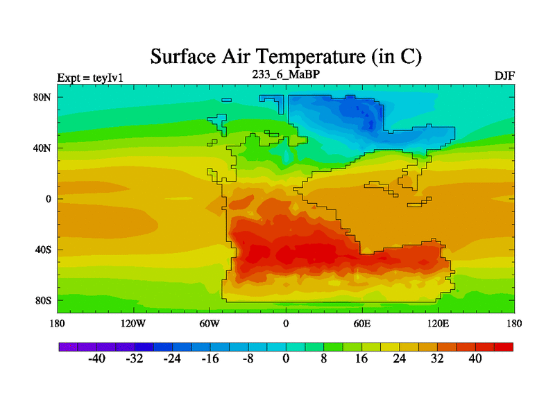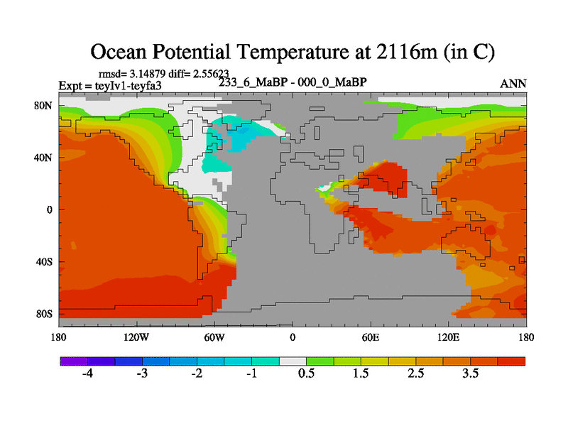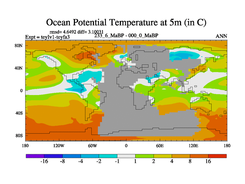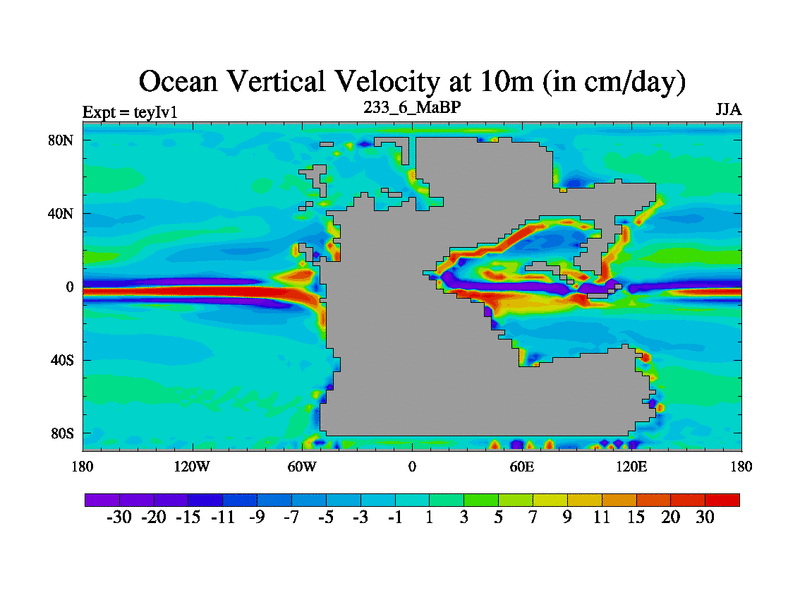 This is the 233.6 Ma simulation using the Scotese palaeogeographies and revised CCN etc. Now includes ocean biogeochemistry