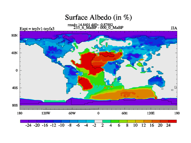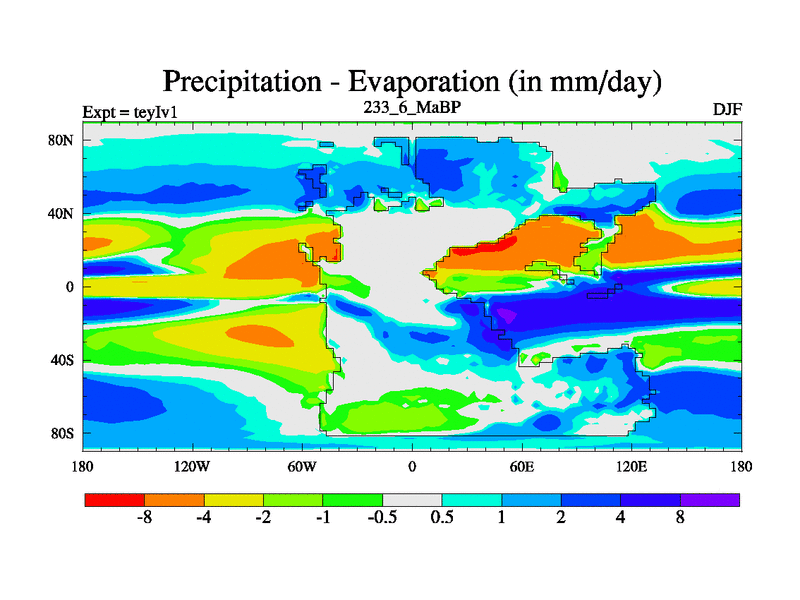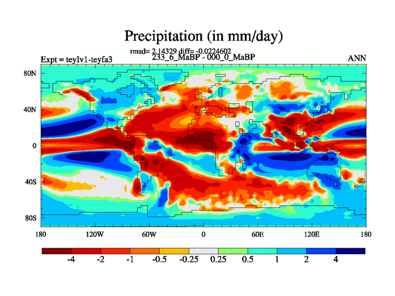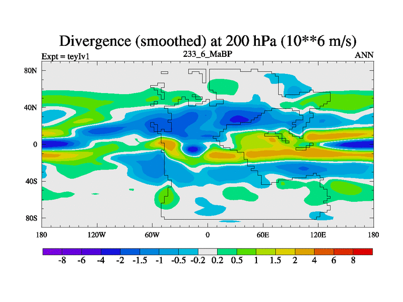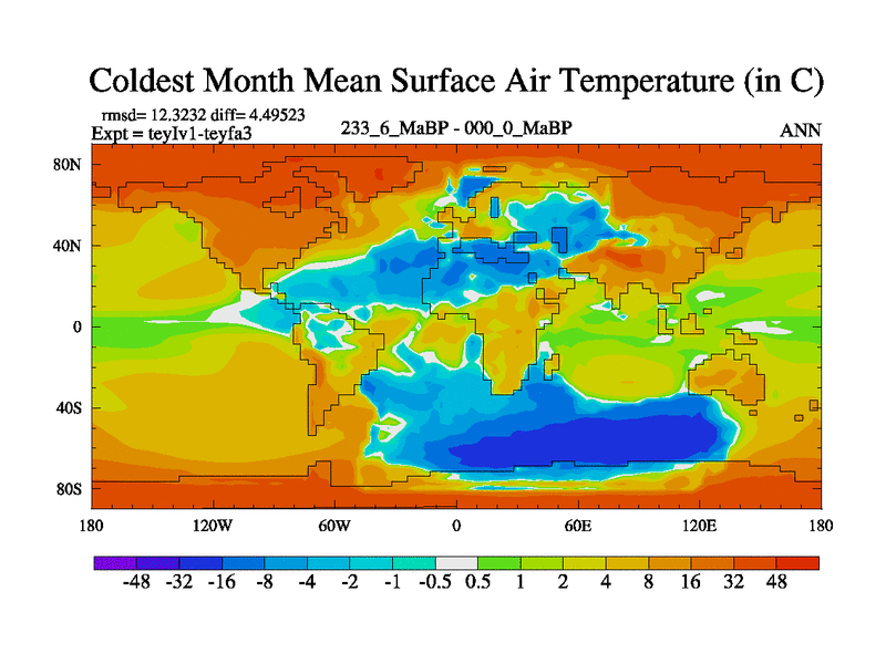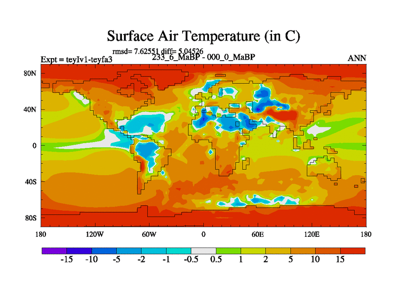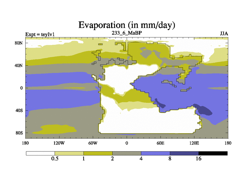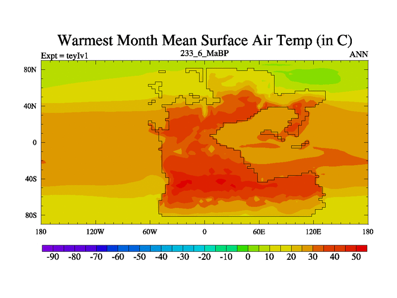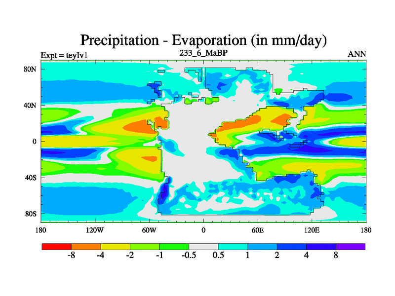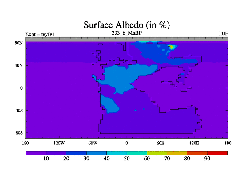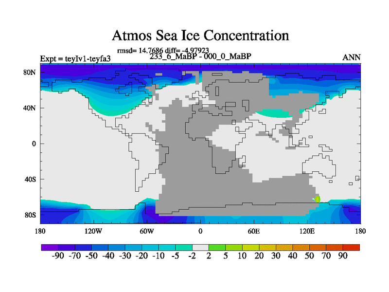This is the 233.6 Ma simulation using the Scotese palaeogeographies and revised CCN etc. Now includes ocean biogeochemistry