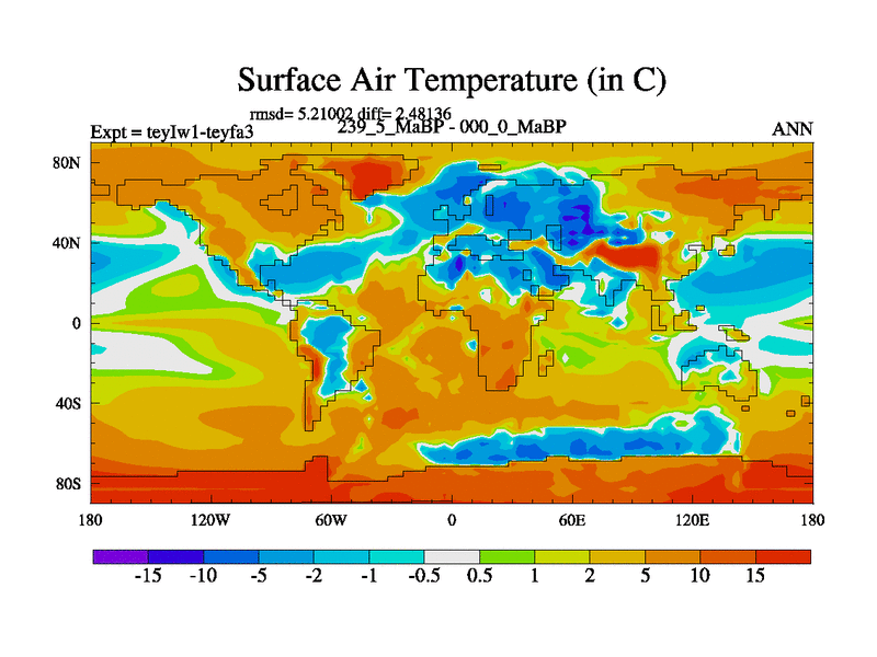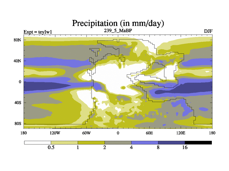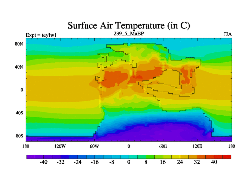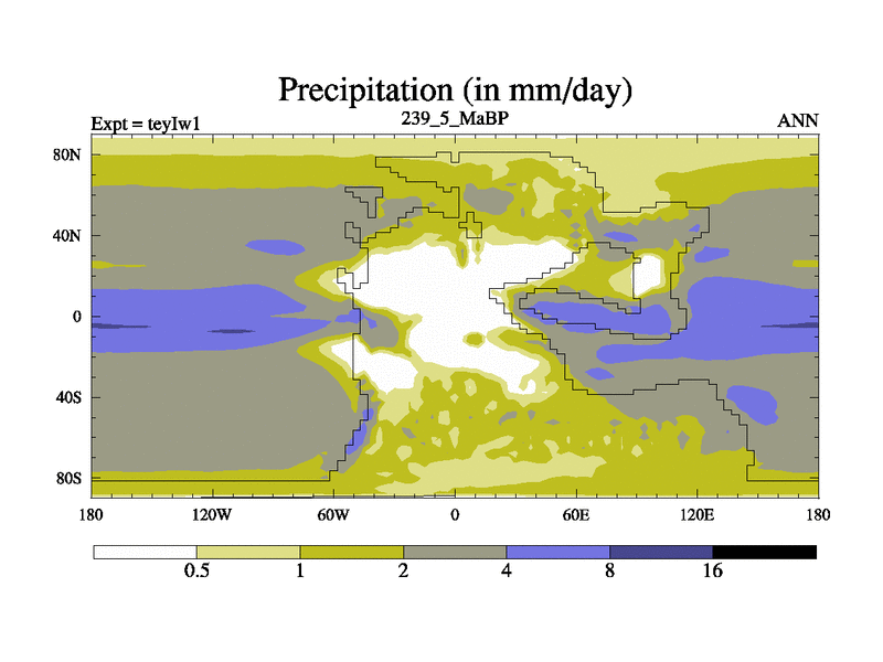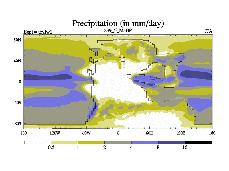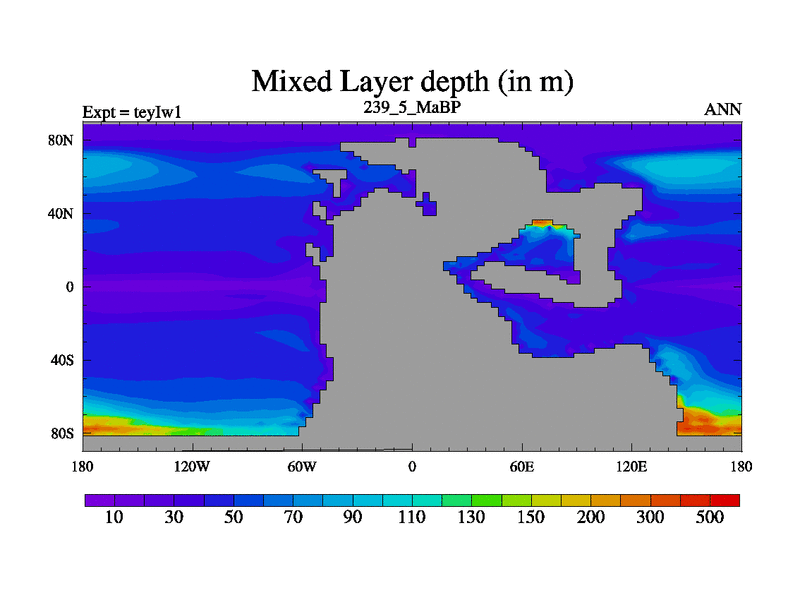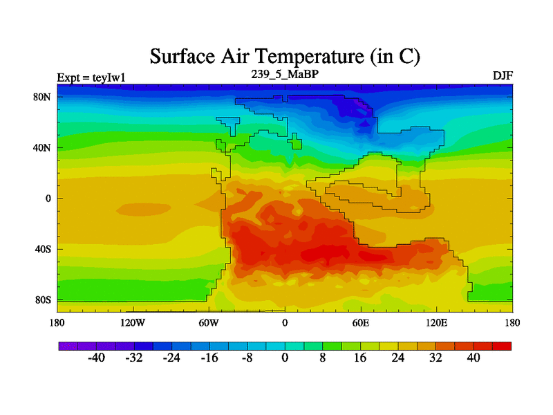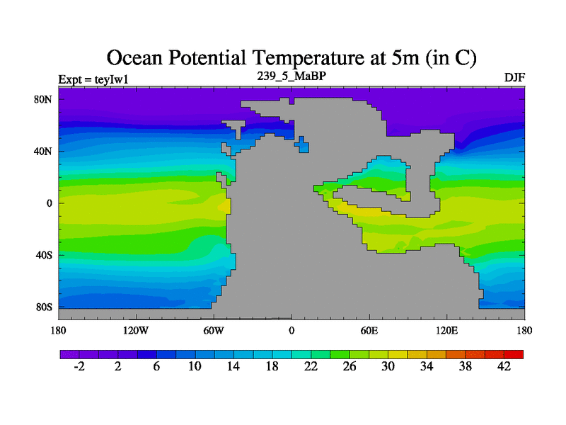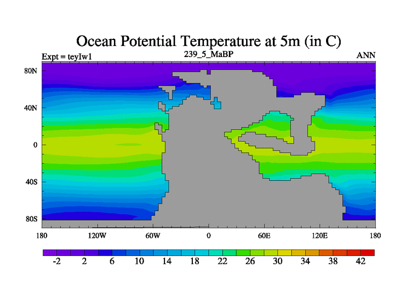 This is the 239.5 Ma simulation using the Scotese palaeogeographies and revised CCN etc. Now includes ocean biogeochemistry