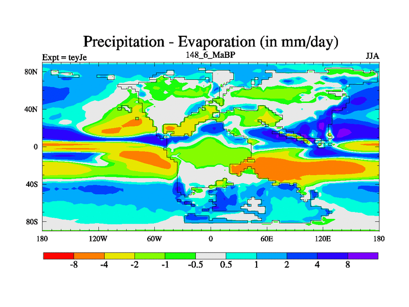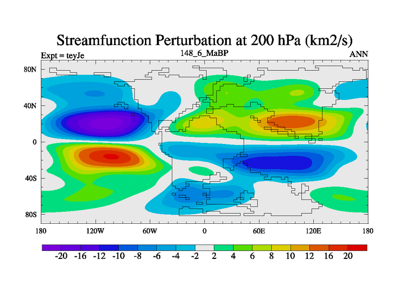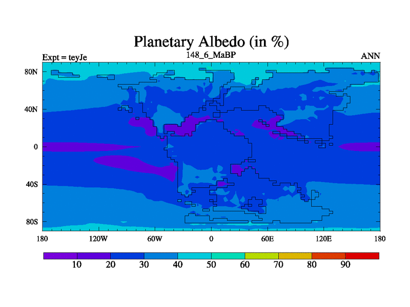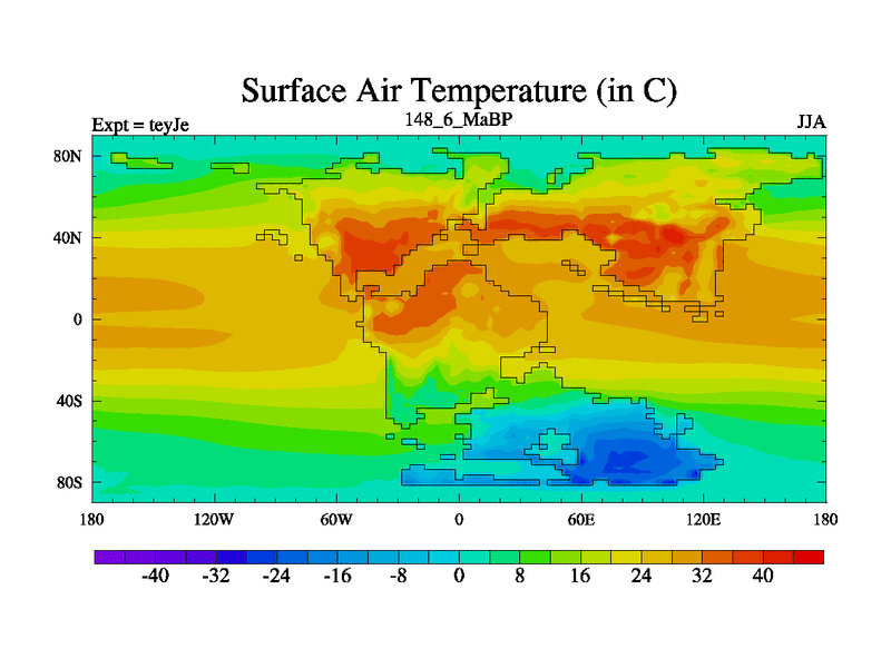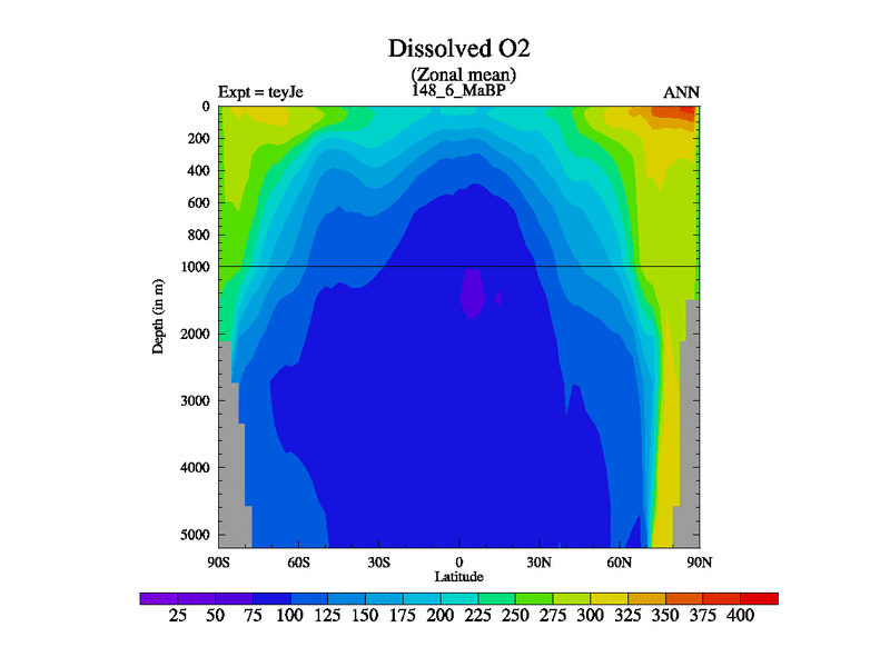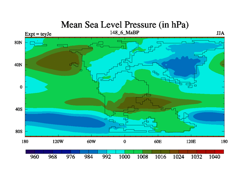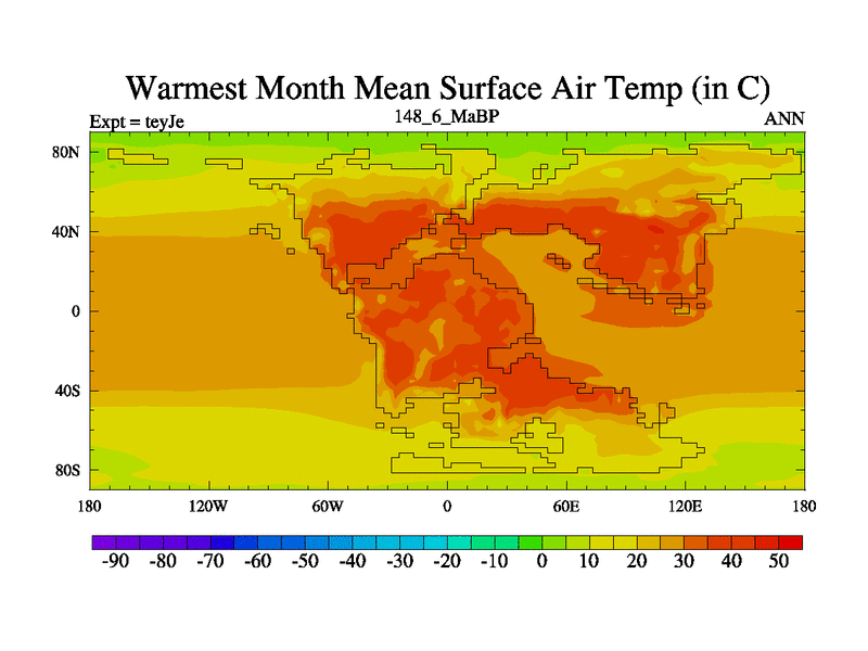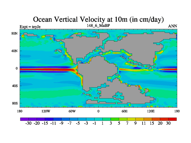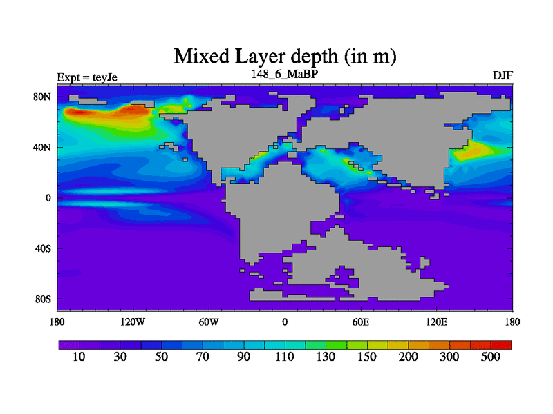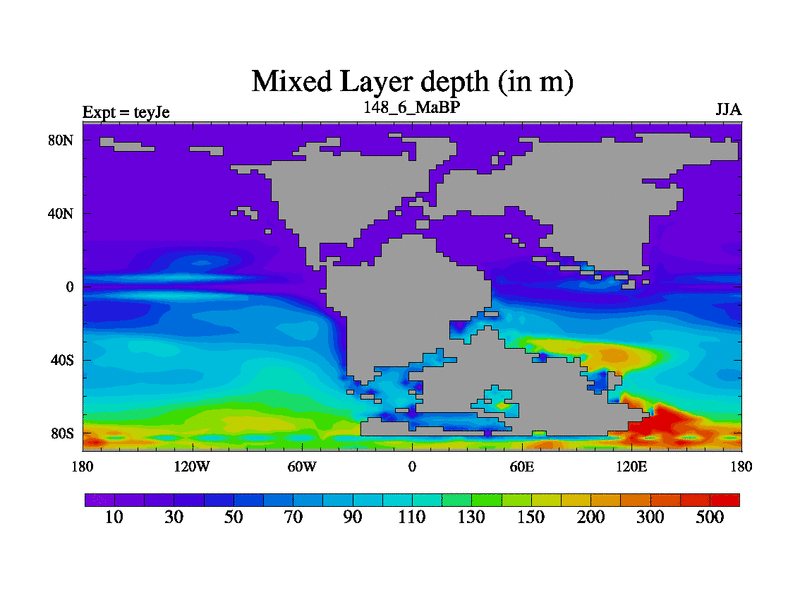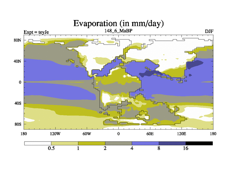 This is the 148.6 Ma simulation using the Scotese palaeogeographies and revised CCN etc. As teyfa3 but corrected orography problem over Antartartica. Now includes ocean biogeochemistry