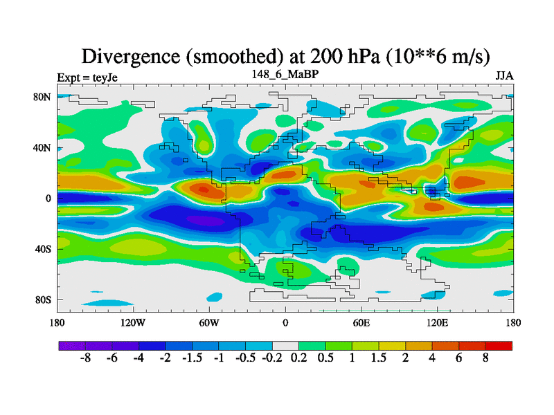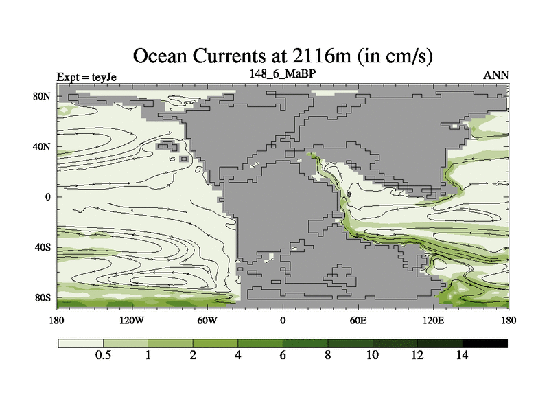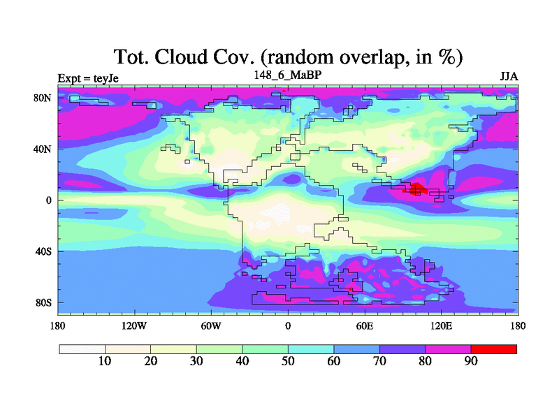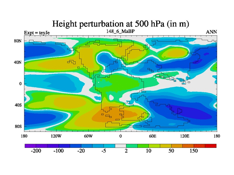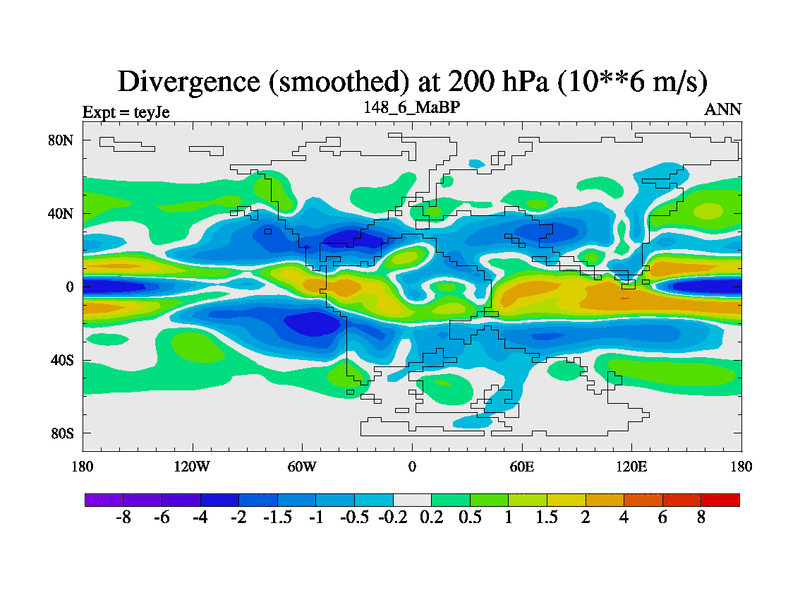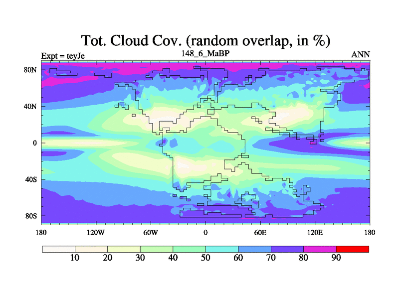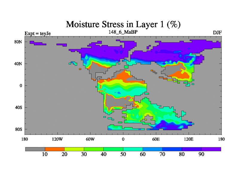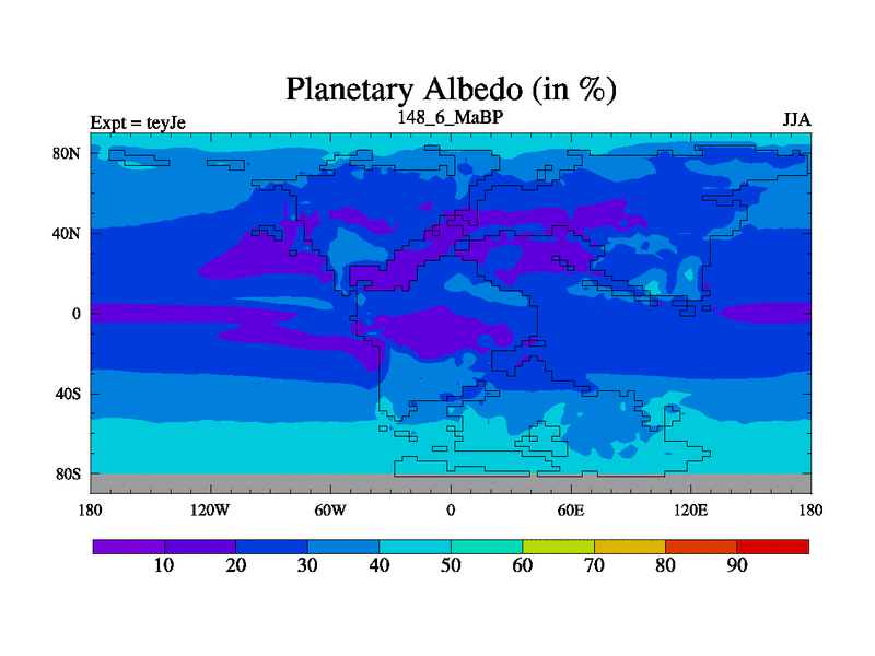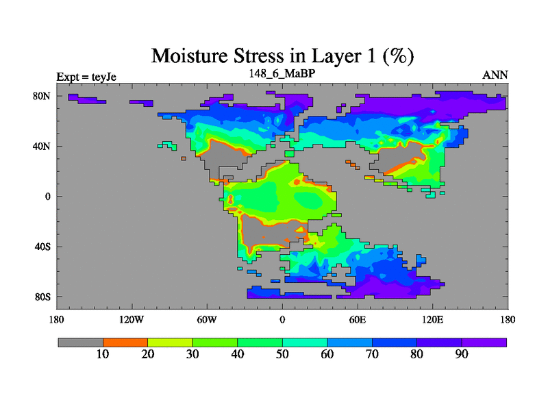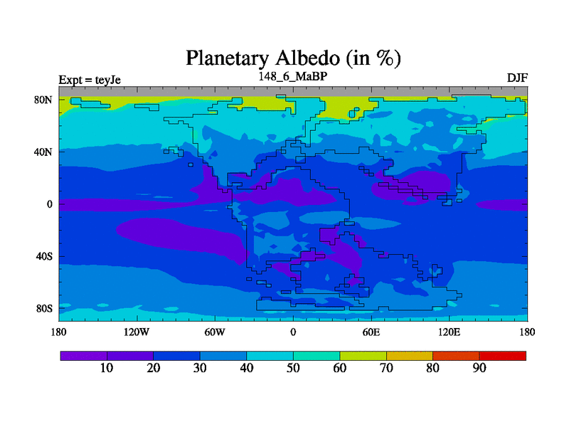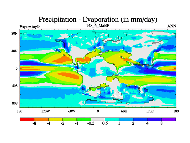 This is the 148.6 Ma simulation using the Scotese palaeogeographies and revised CCN etc. As teyfa3 but corrected orography problem over Antartartica. Now includes ocean biogeochemistry