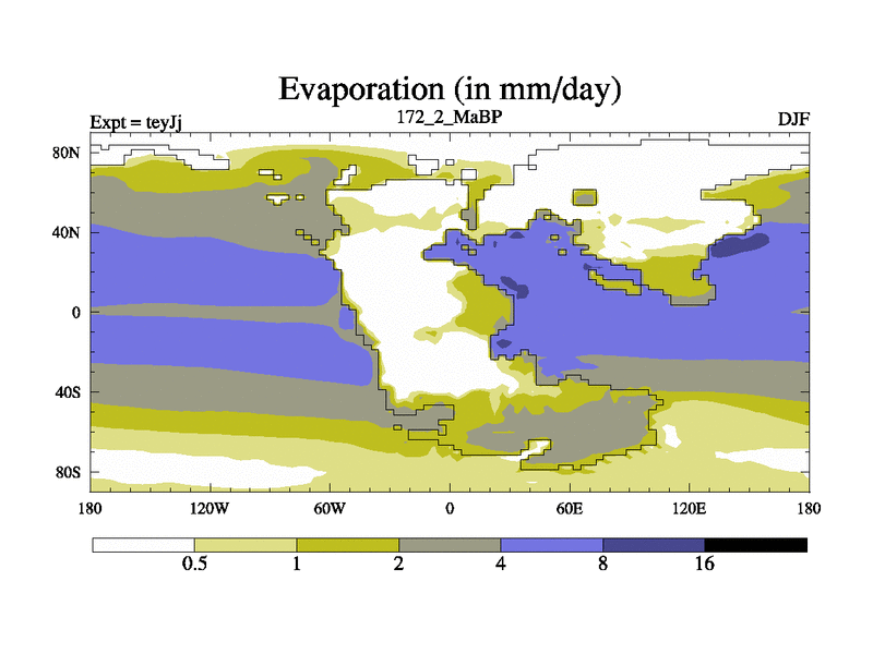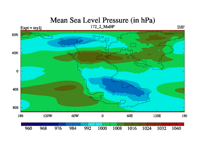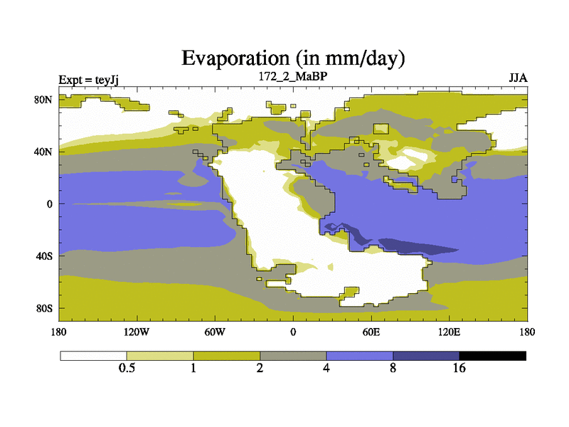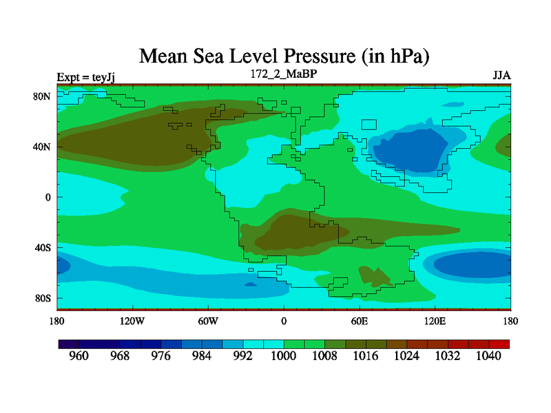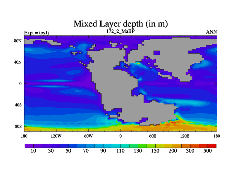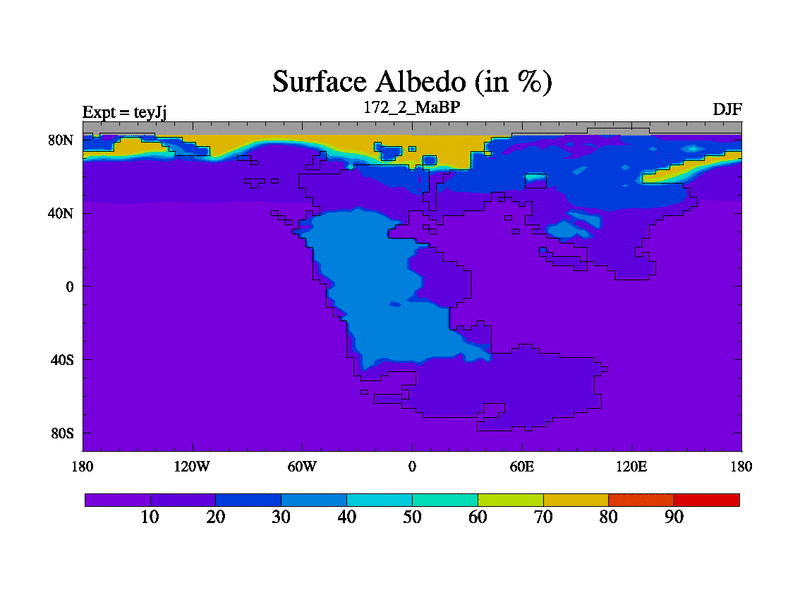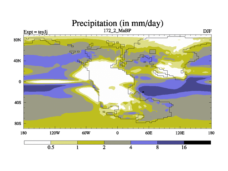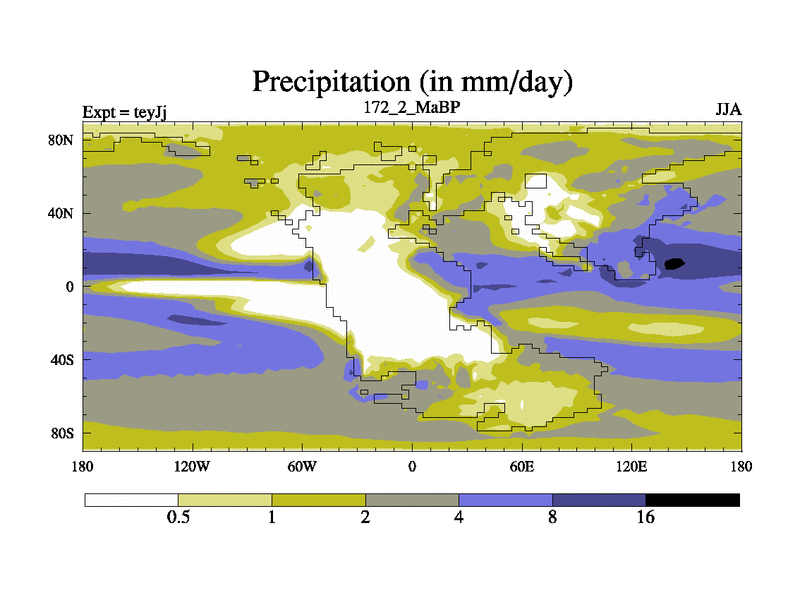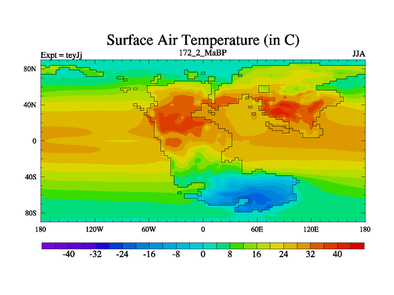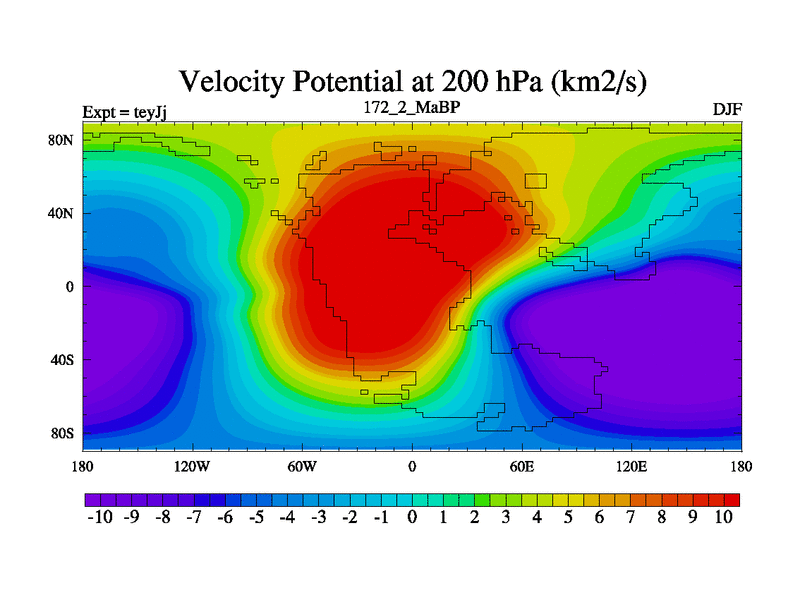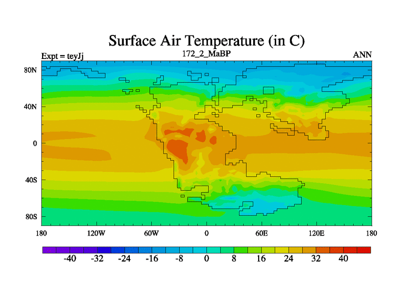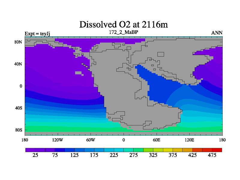 This is the 172.2 Ma simulation using the Scotese palaeogeographies and revised CCN etc. As teyfa3 but corrected orography problem over Antartartica. Now includes ocean biogeochemistry