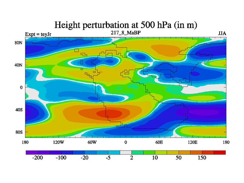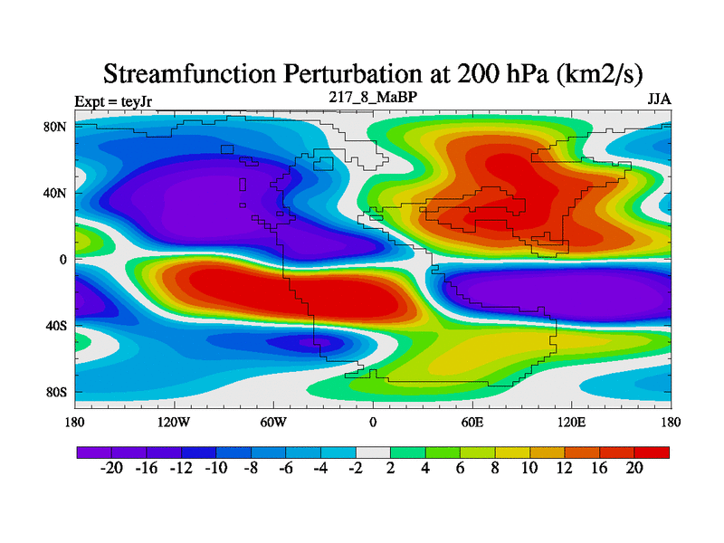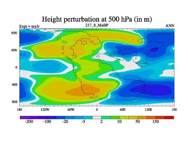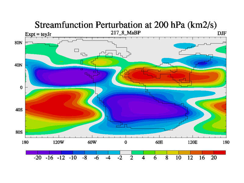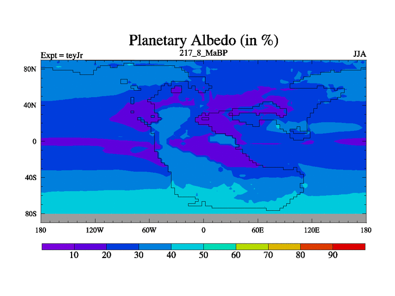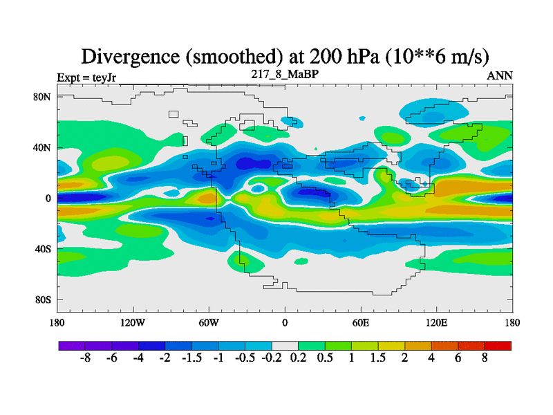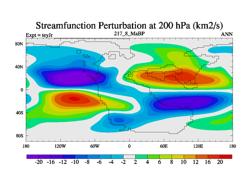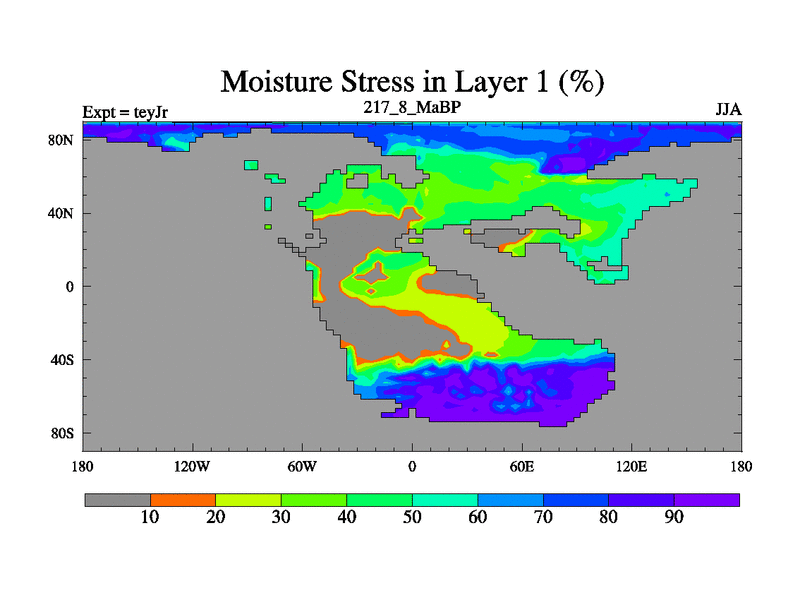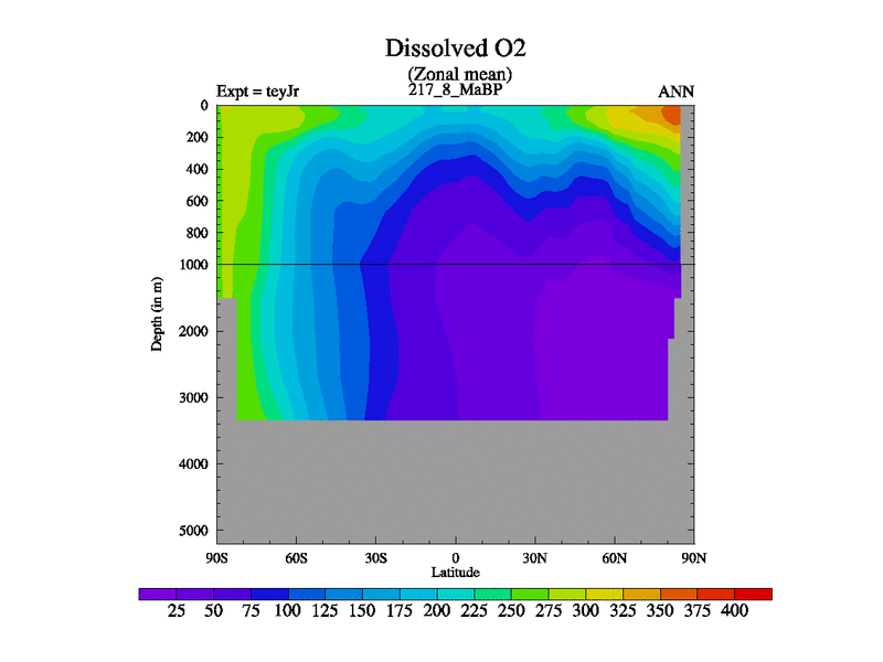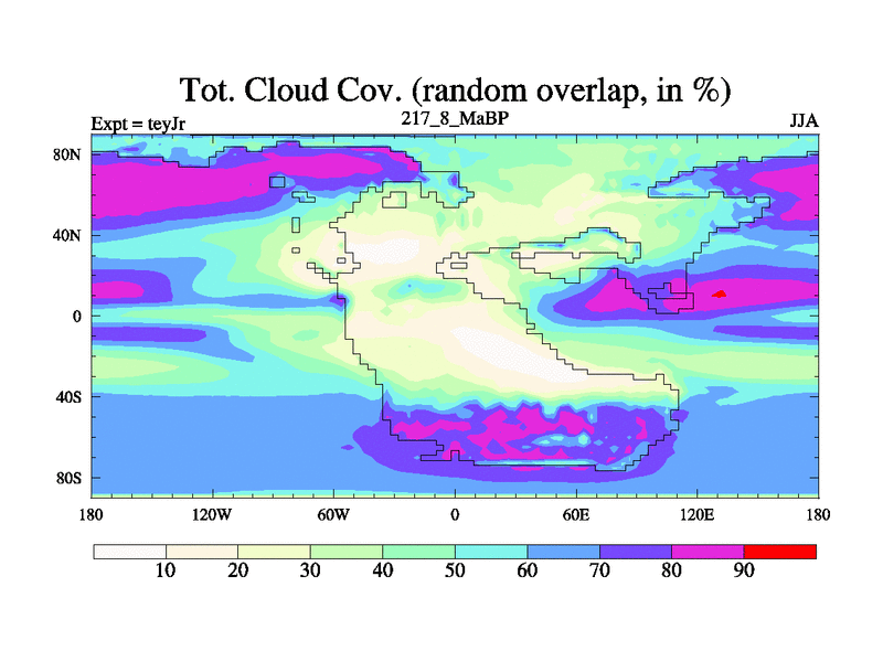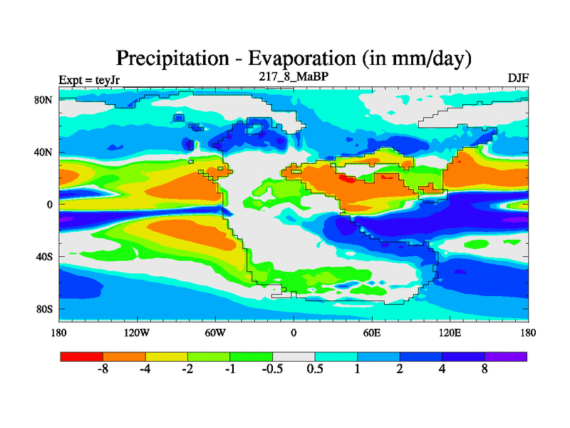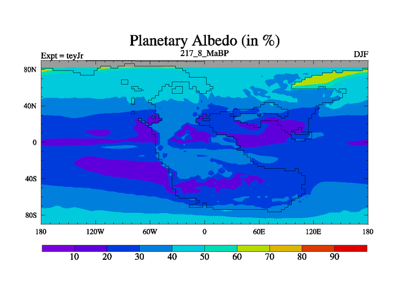 This is the 217.8 Ma simulation using the Scotese palaeogeographies and revised CCN etc. As teyfa3 but corrected orography problem over Antartartica. Now includes ocean biogeochemistry