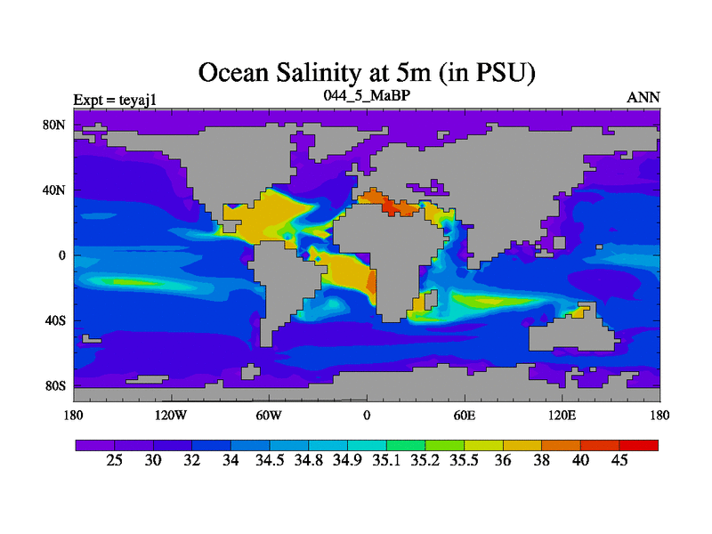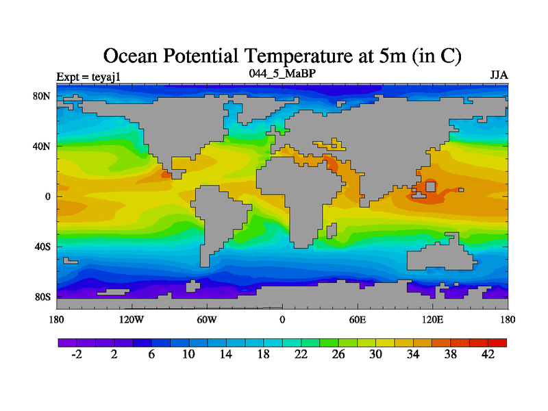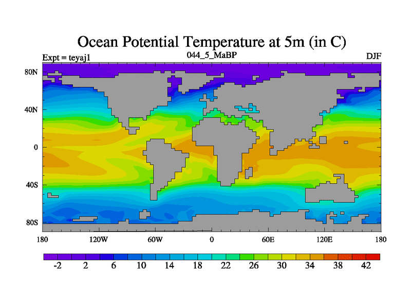 This is the 44.5 Ma simulation using the Scotese palaeogeographies. Extension of the tex[f..j] series.