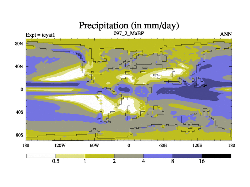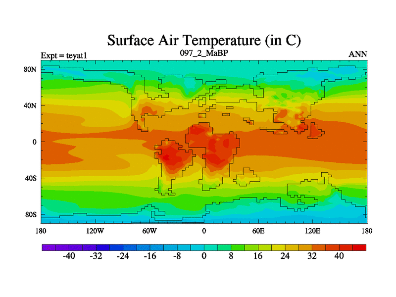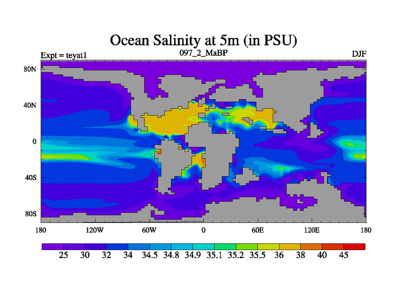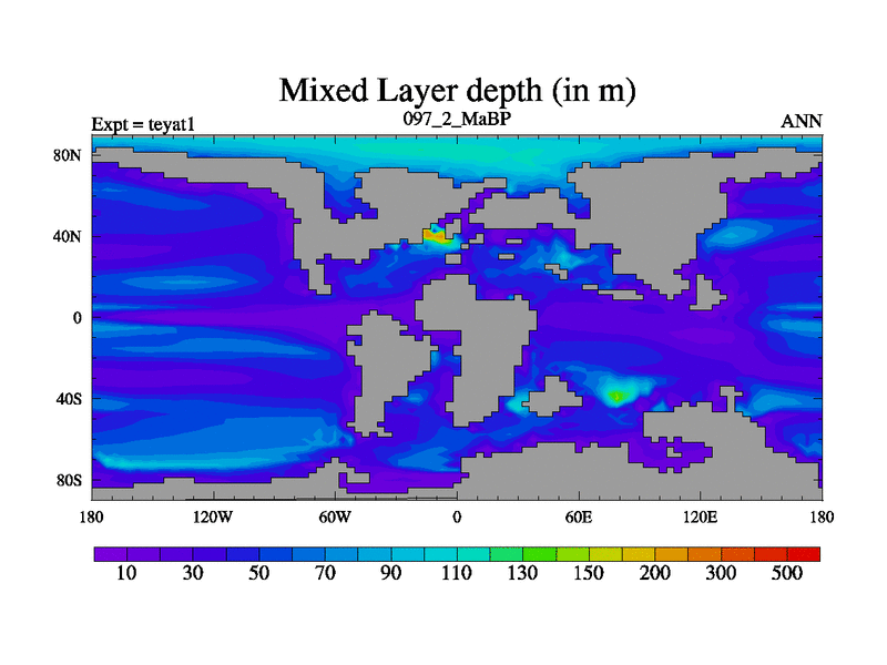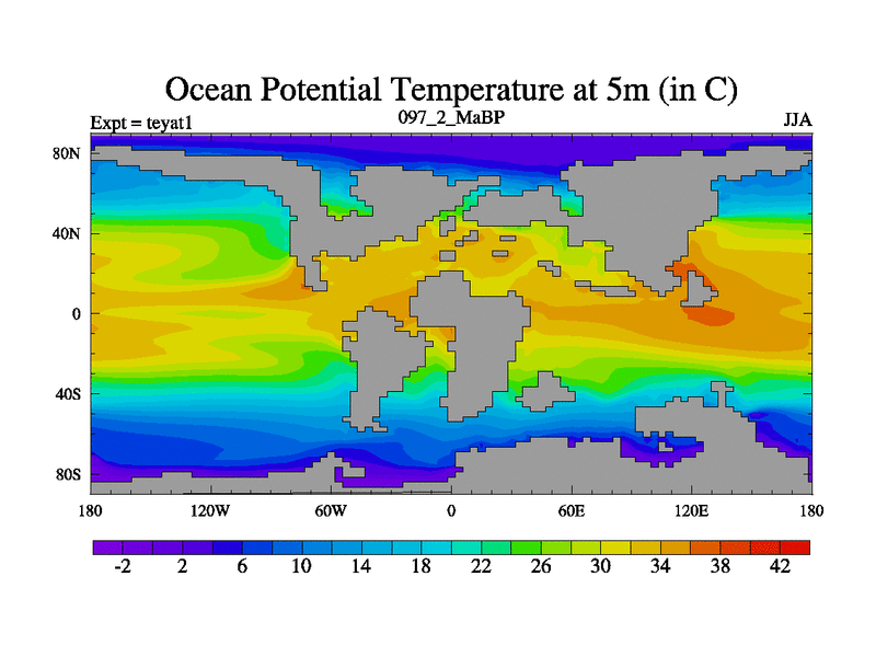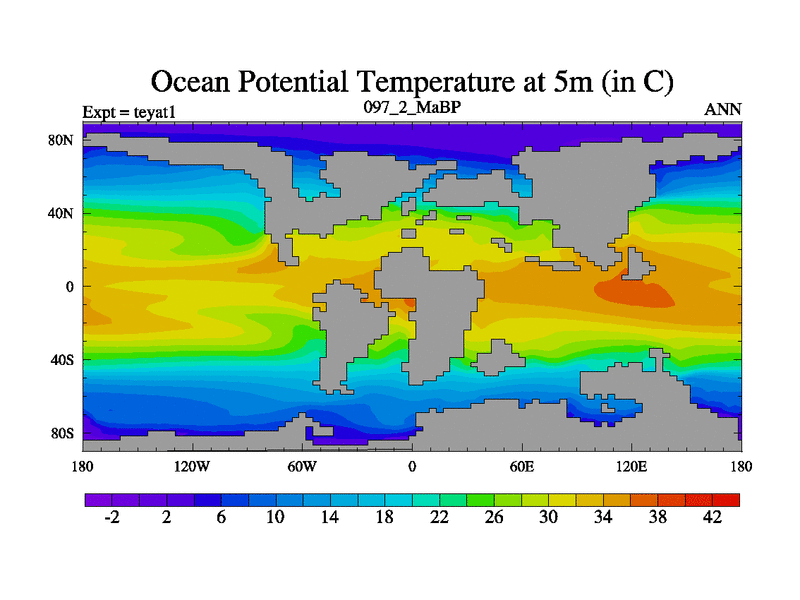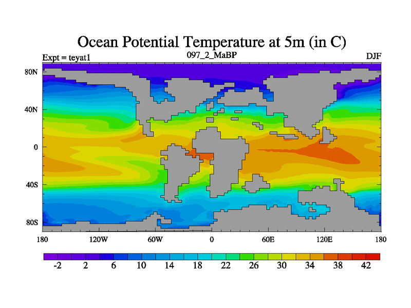 This is the 97.2 Ma simulation using the Scotese palaeogeographies. Extension of the tex[f..j] series.