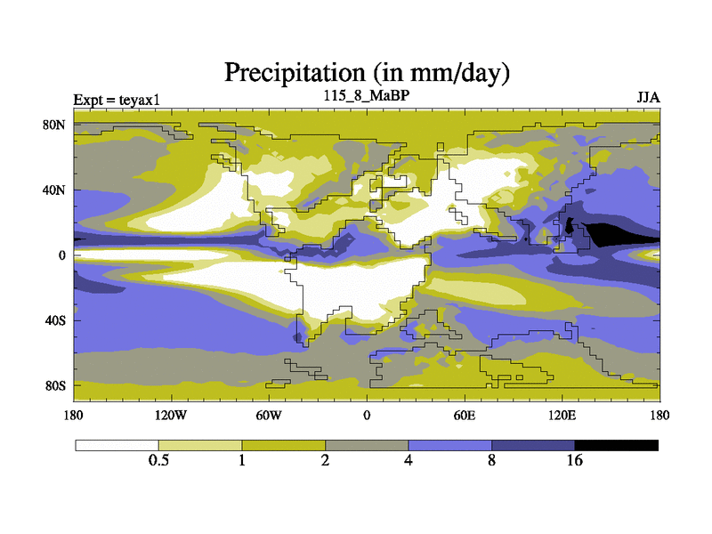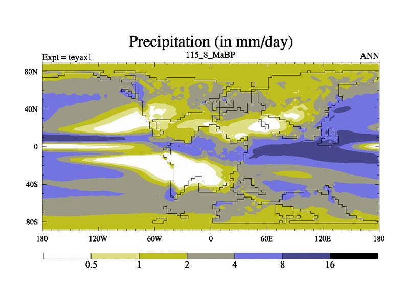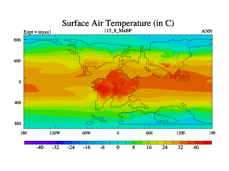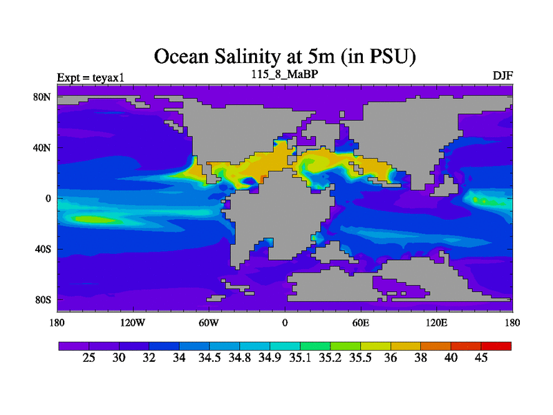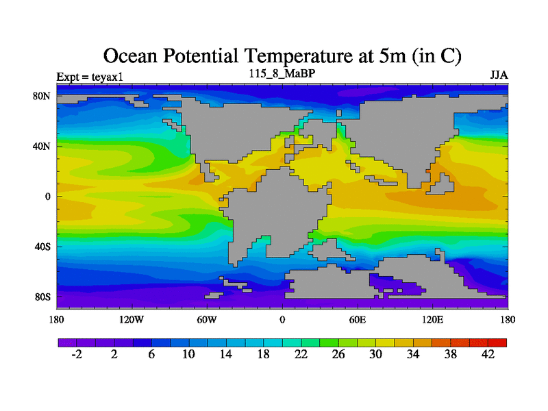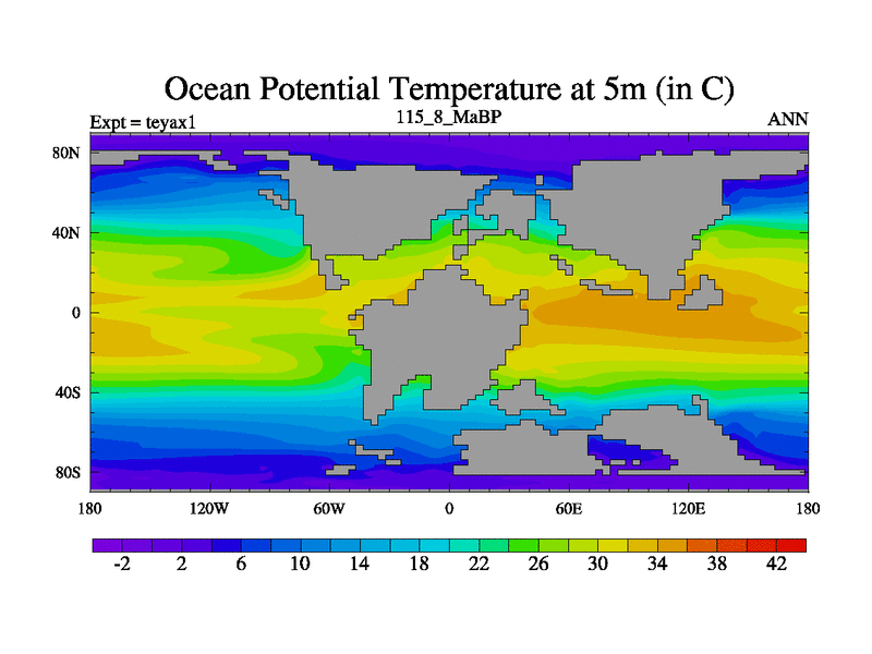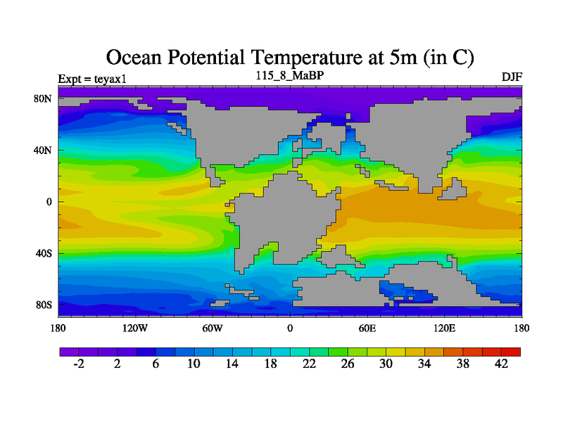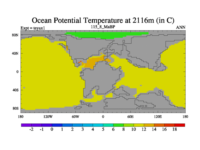 This is the 115.8 Ma simulation using the Scotese palaeogeographies. Extension of the tex[f..j] series.