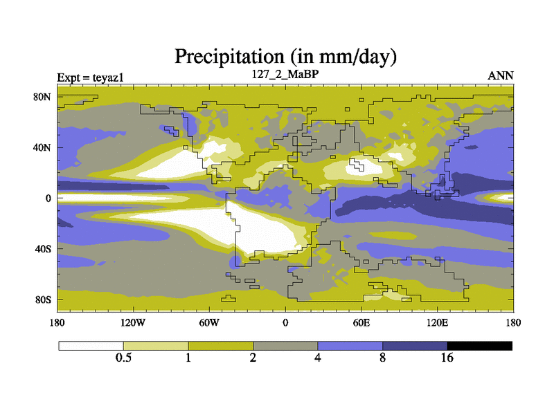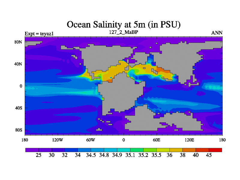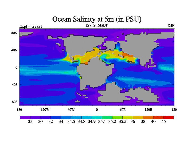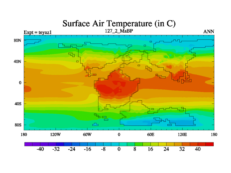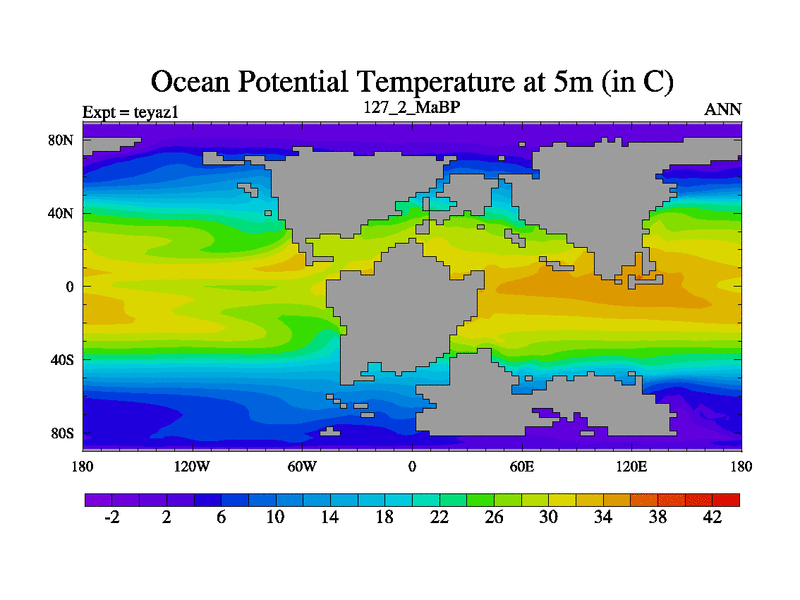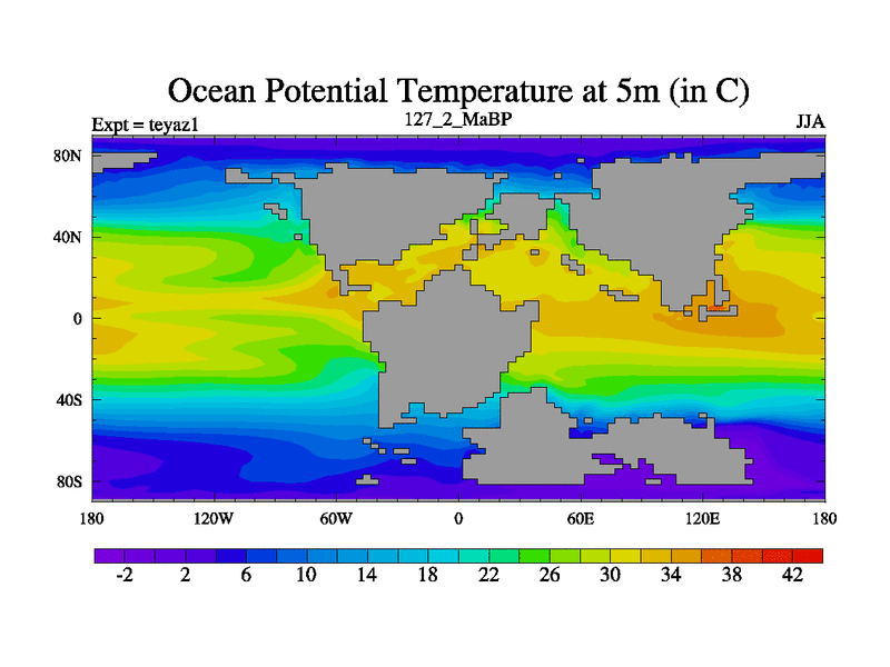 This is the 127.2 Ma simulation using the Scotese palaeogeographies. Extension of the tex[f..j] series.