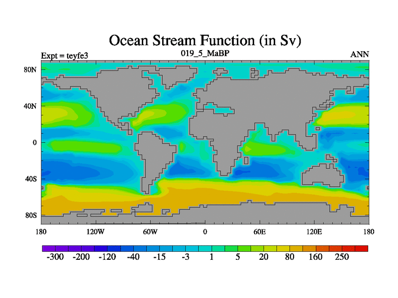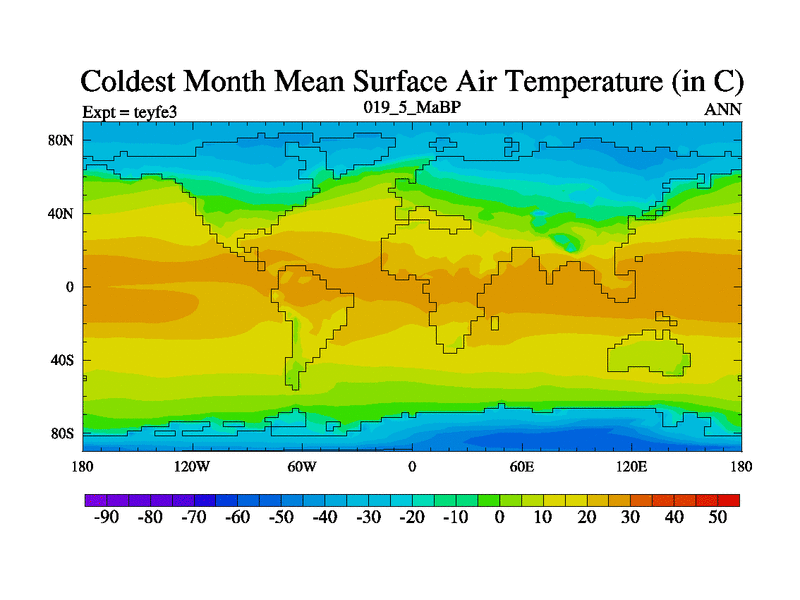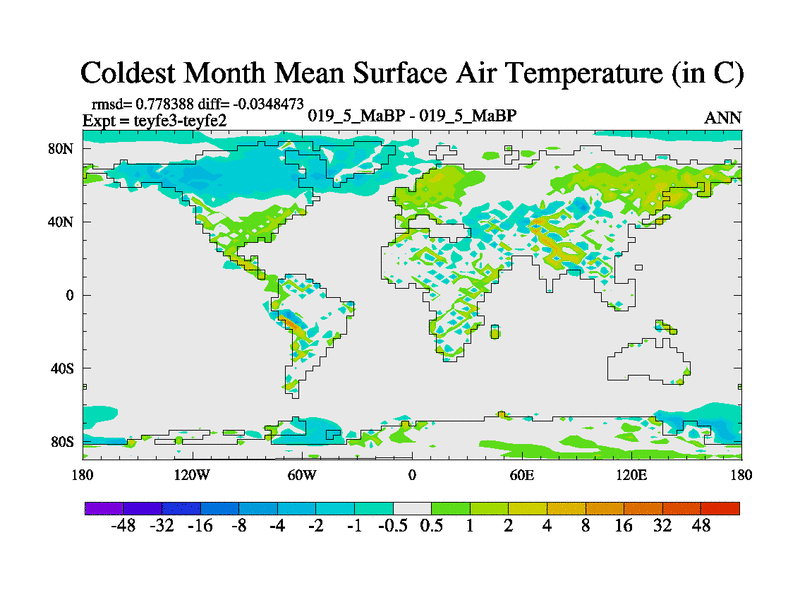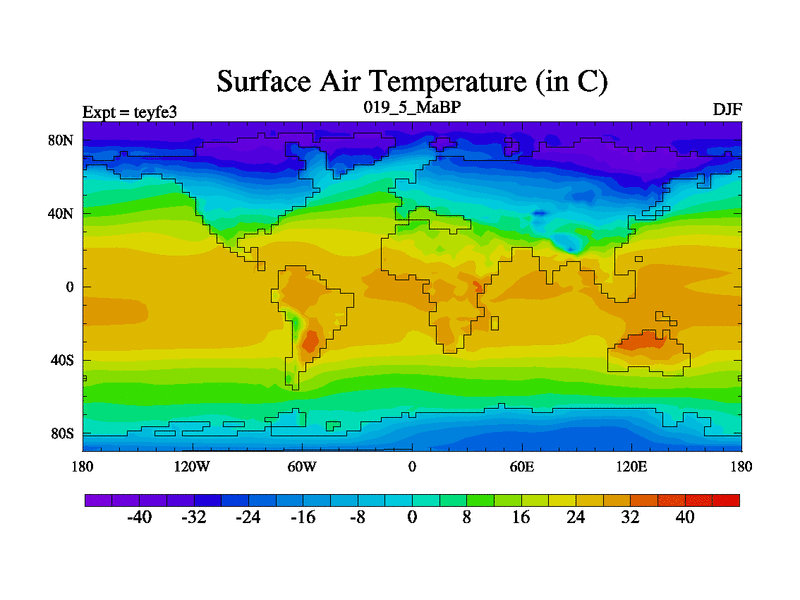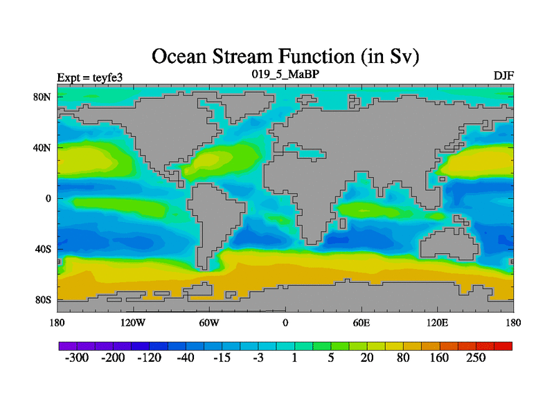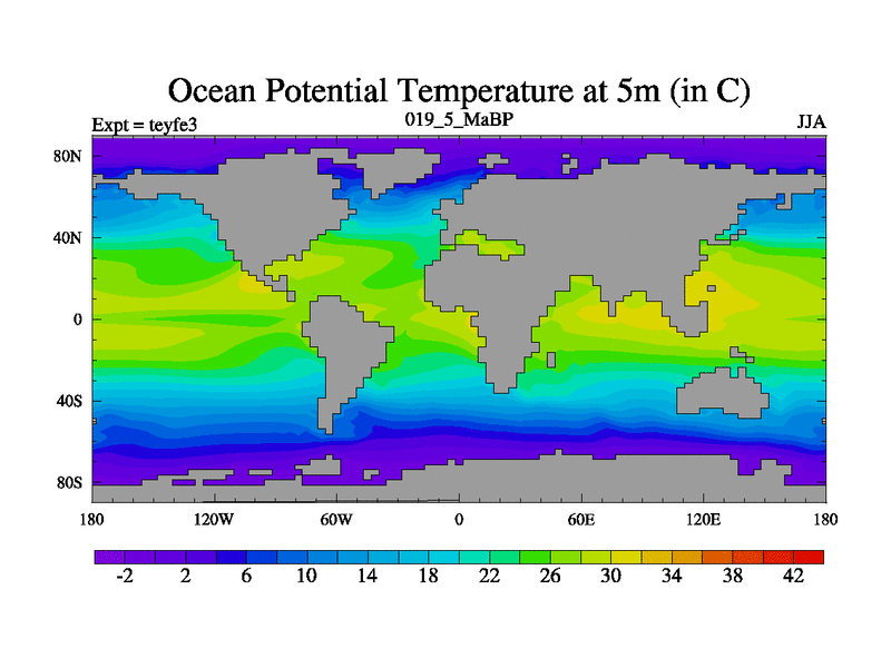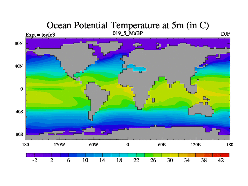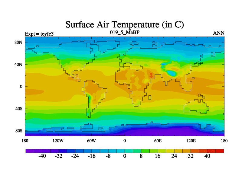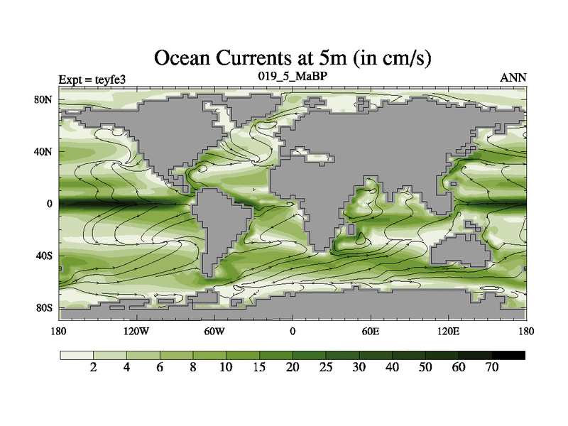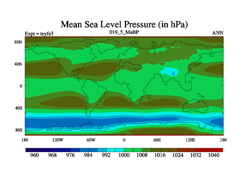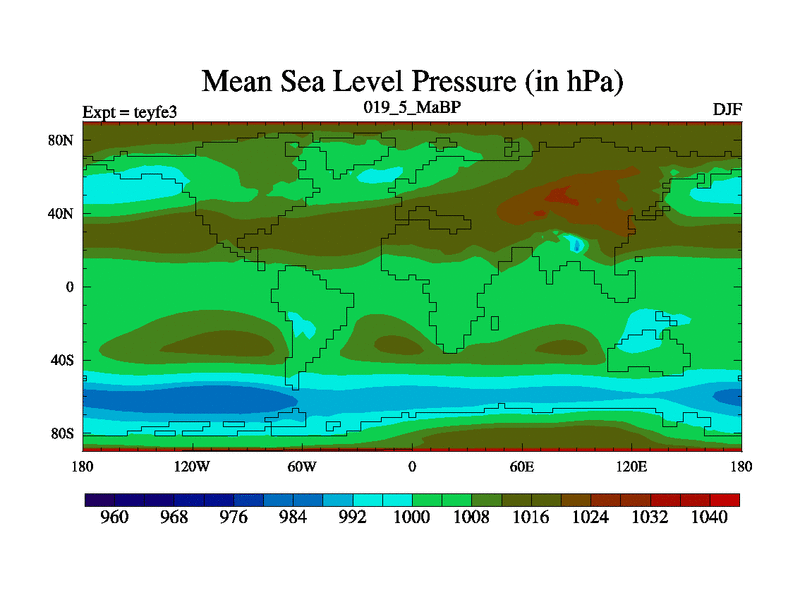 This is the 19.5 Ma simulation using the Scotese palaeogeographies and revised CCN etc. Updated HadCM3L ocean parameters and soil parameters. Also made sure orography gravity wave drag was consistent.