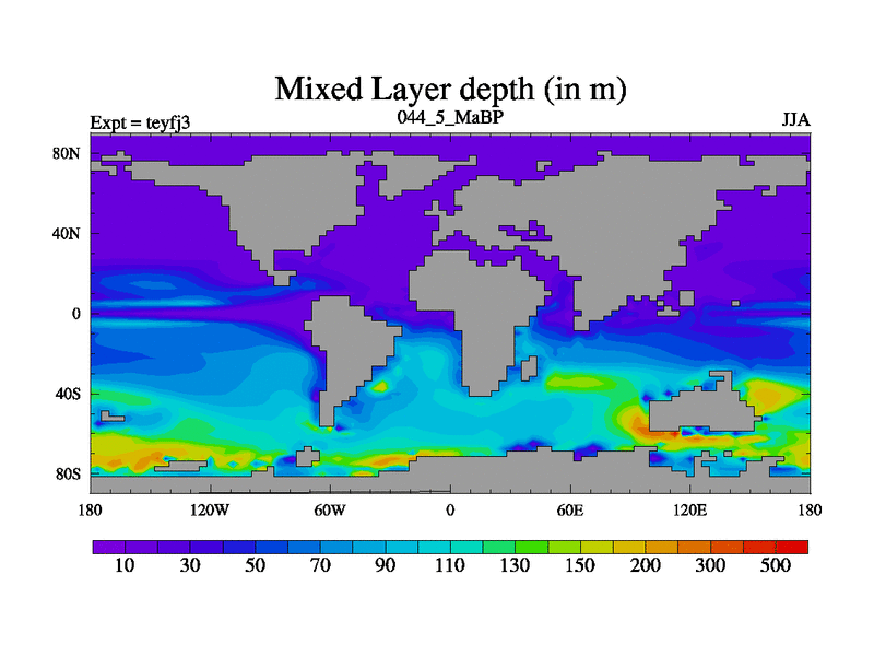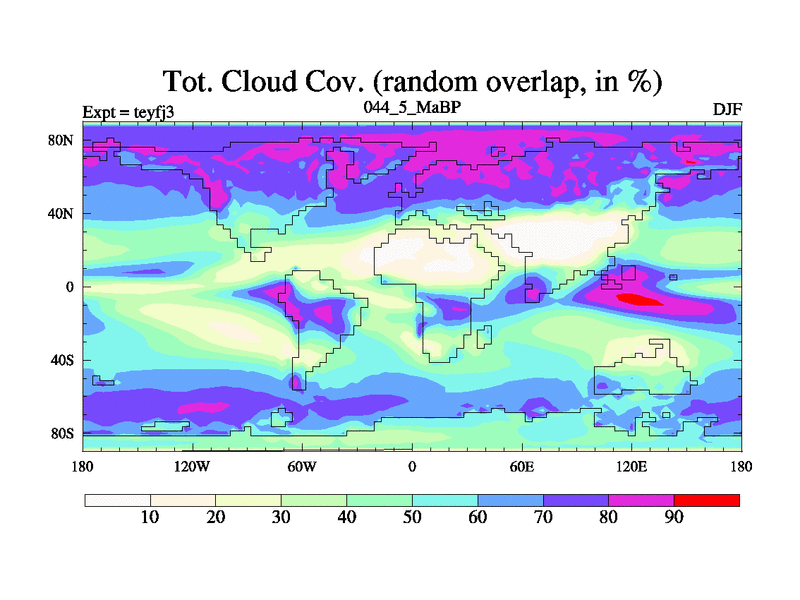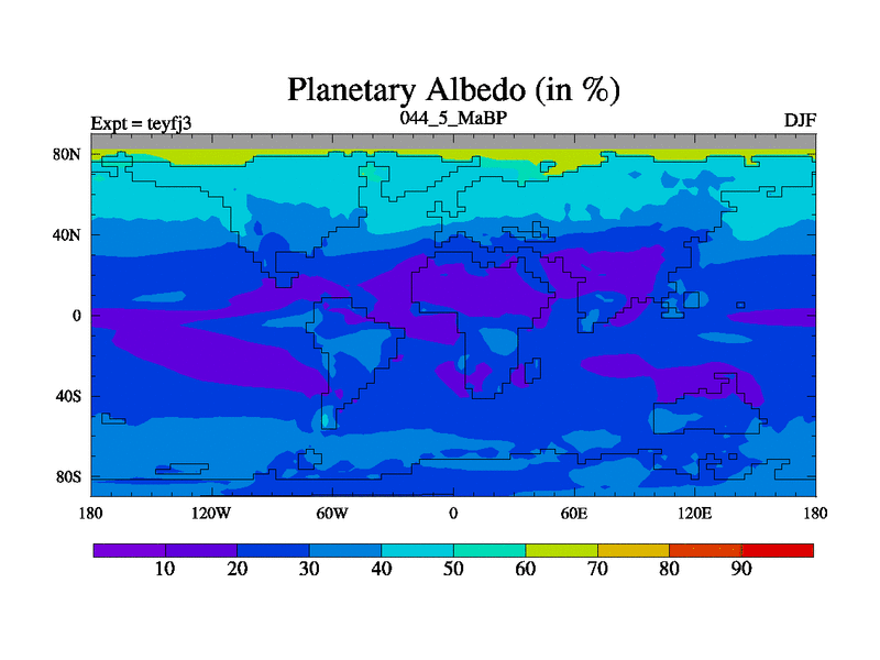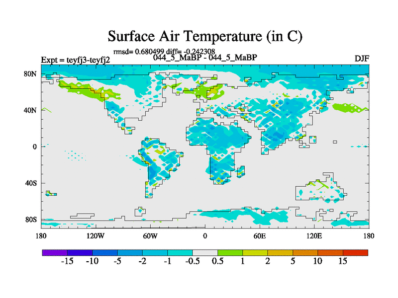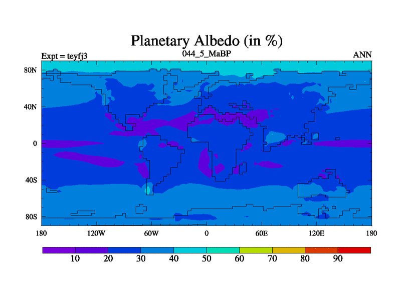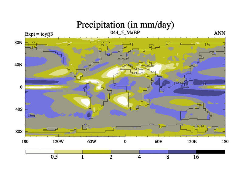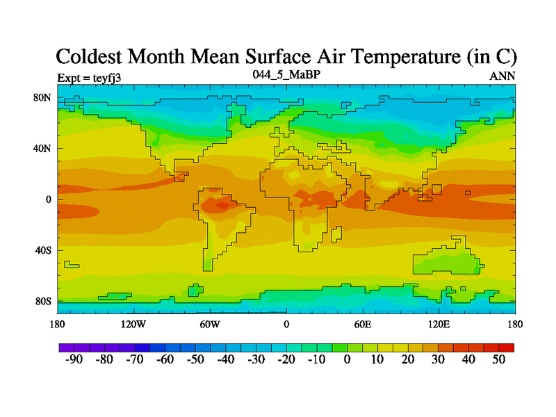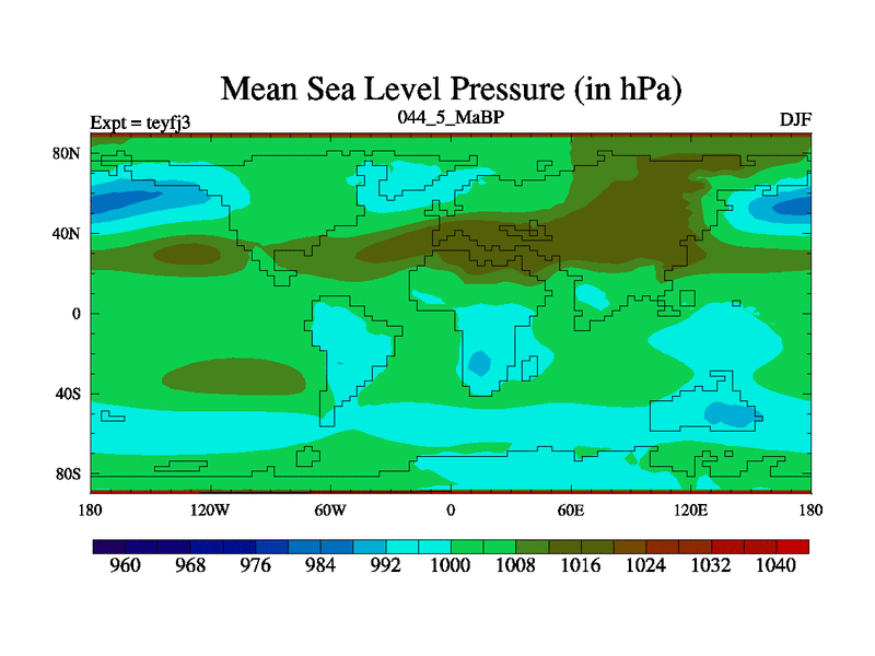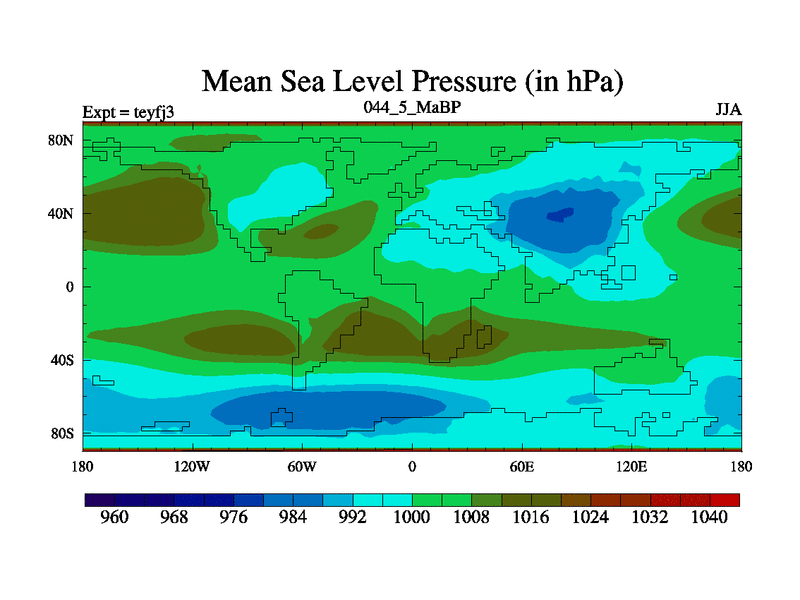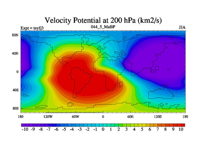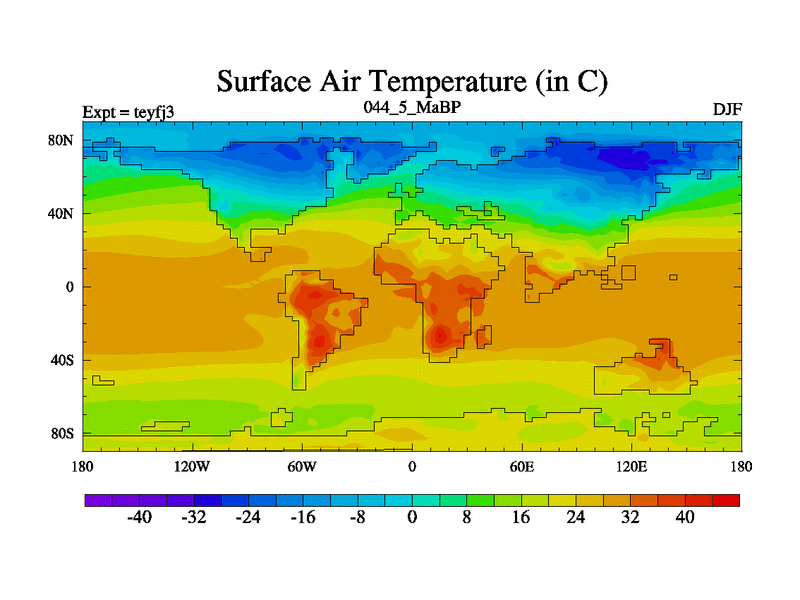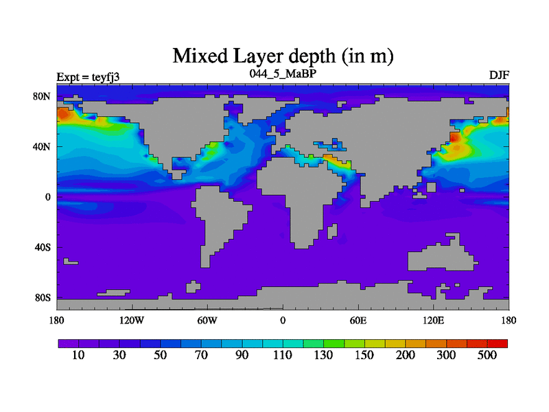 This is the 44.5 Ma simulation using the Scotese palaeogeographies and revised CCN etc. Updated HadCM3L ocean parameters and soil parameters. Also made sure orography gravity wave drag was consistent.