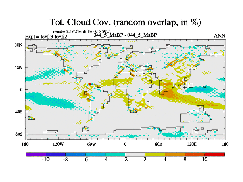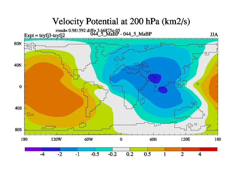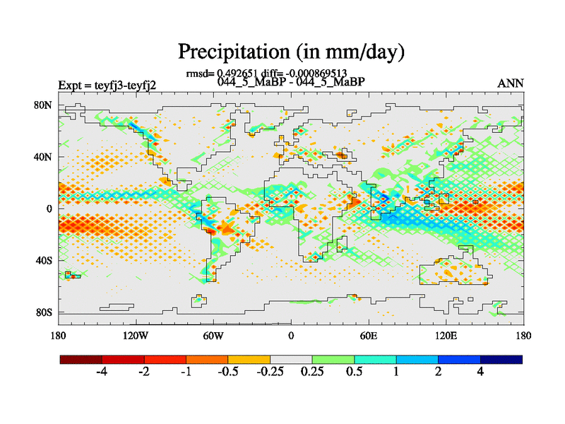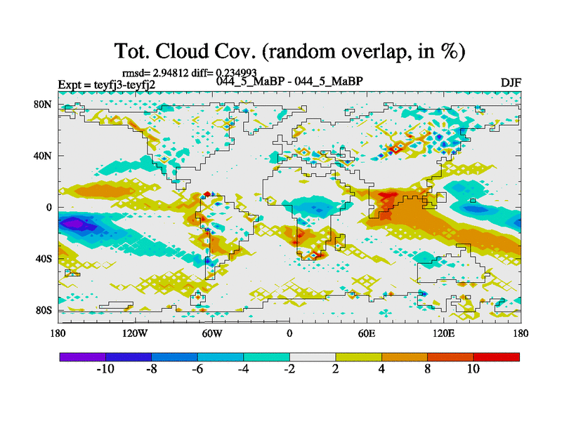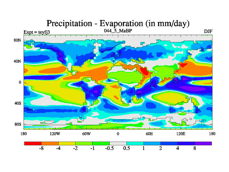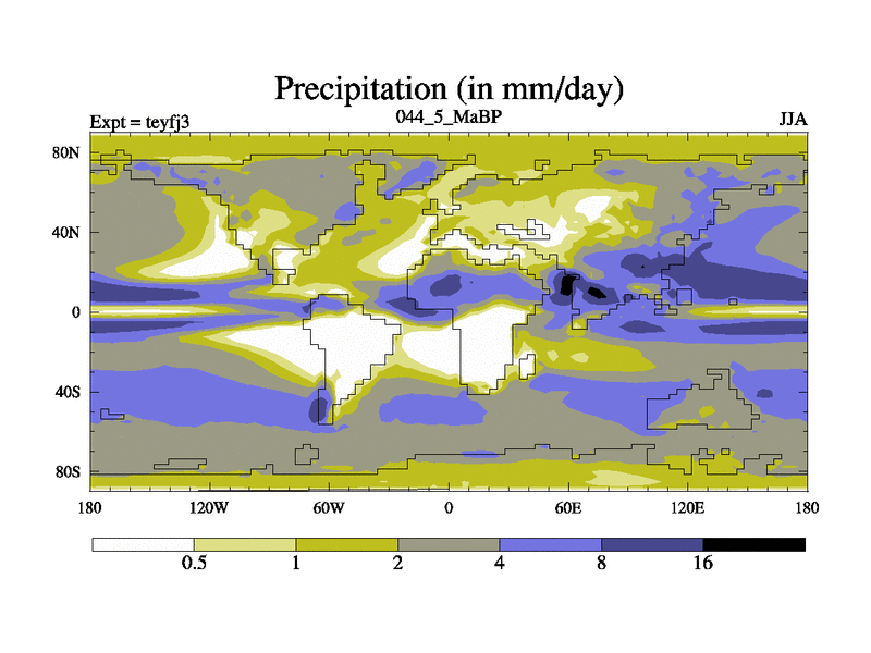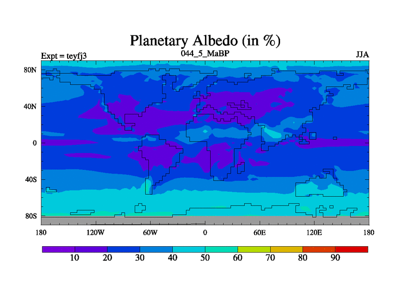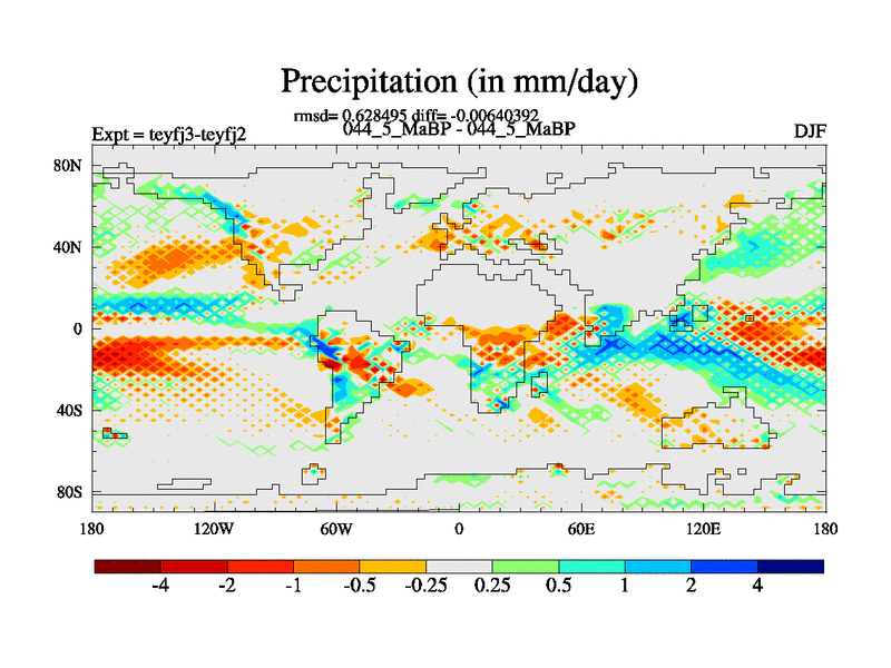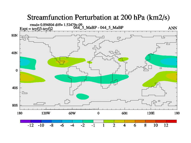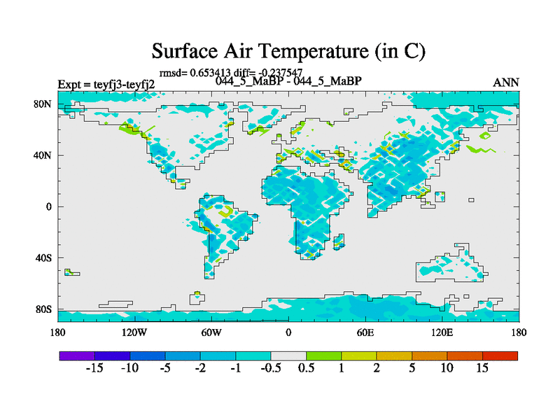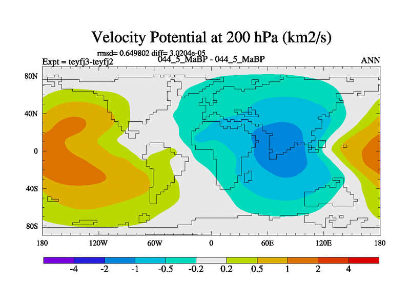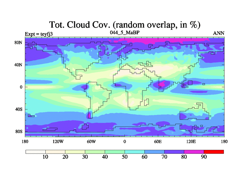 This is the 44.5 Ma simulation using the Scotese palaeogeographies and revised CCN etc. Updated HadCM3L ocean parameters and soil parameters. Also made sure orography gravity wave drag was consistent.