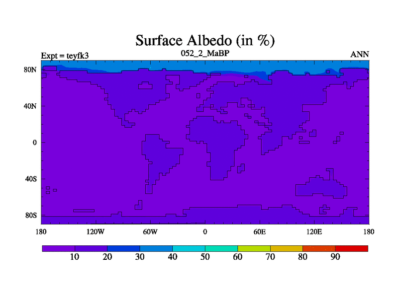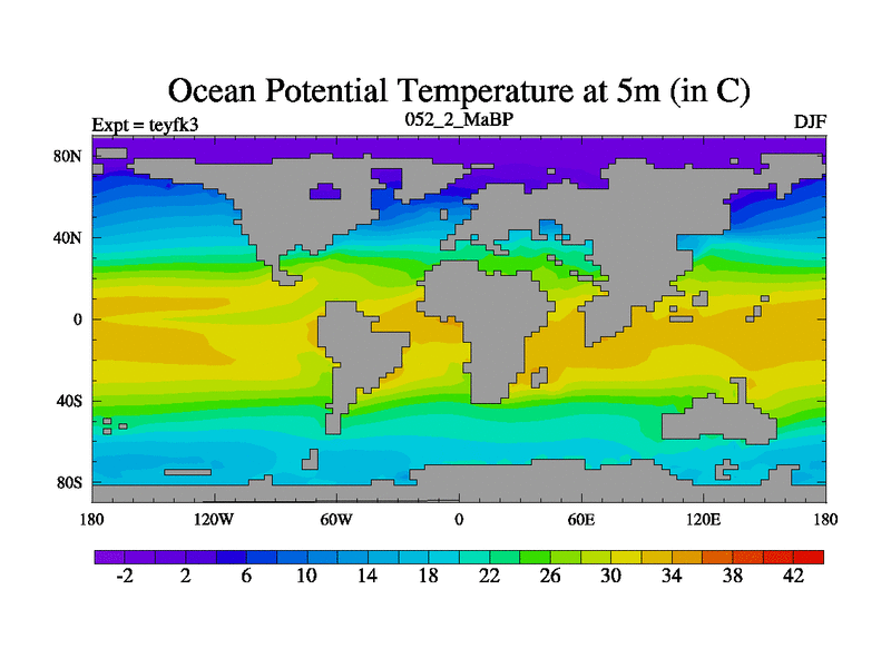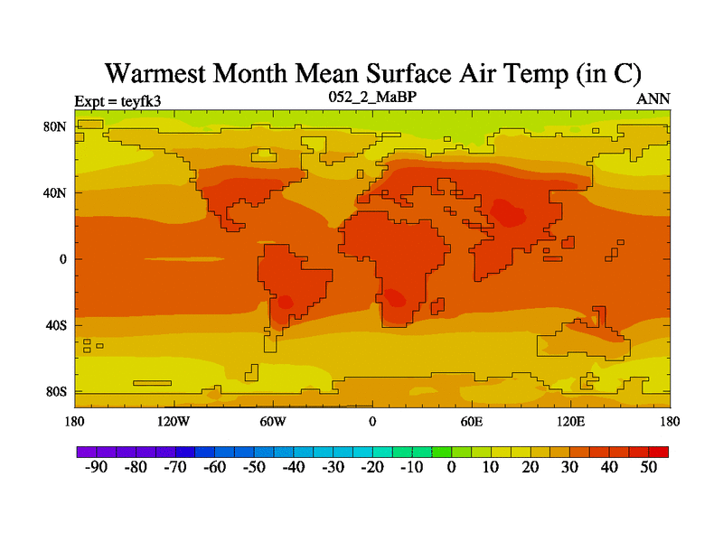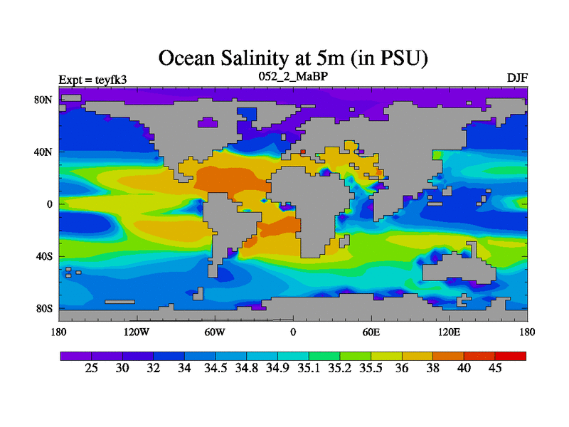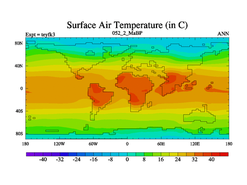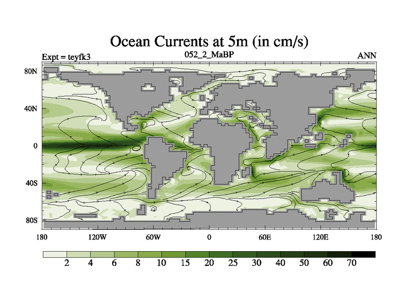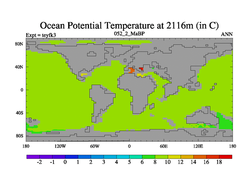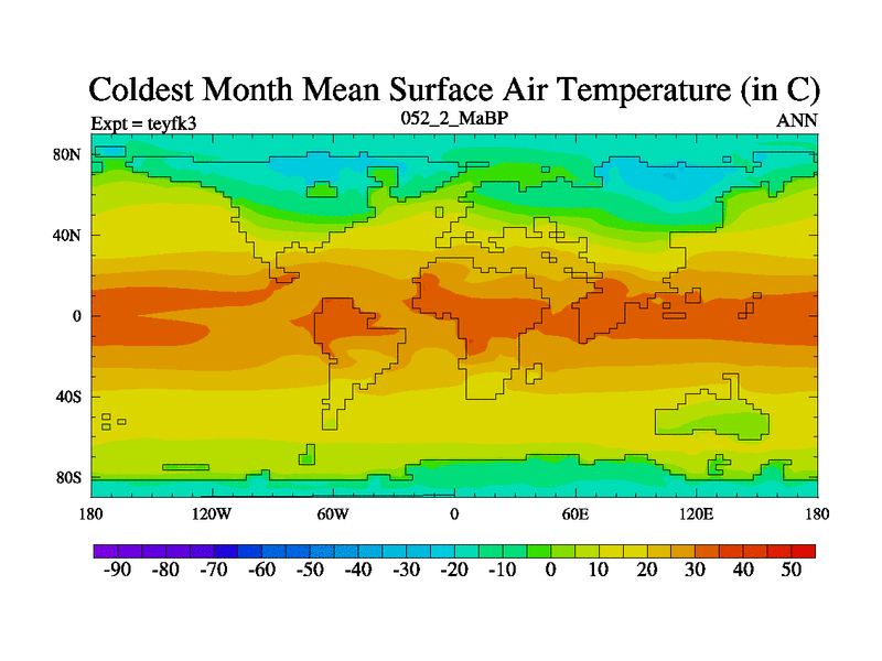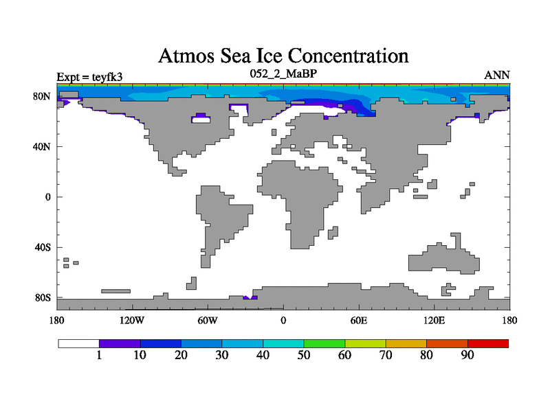 This is the 52.2 Ma simulation using the Scotese palaeogeographies and revised CCN etc. Updated HadCM3L ocean parameters and soil parameters. Also made sure orography gravity wave drag was consistent.