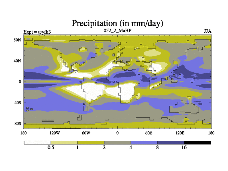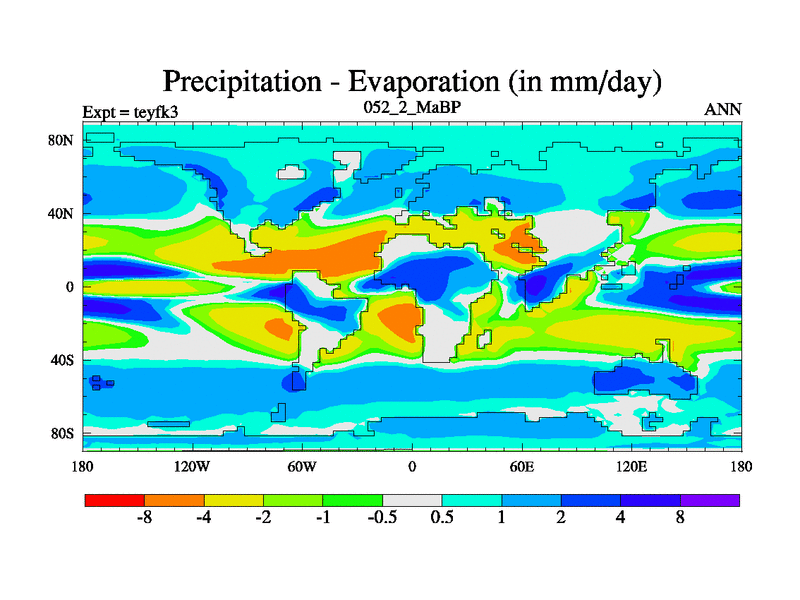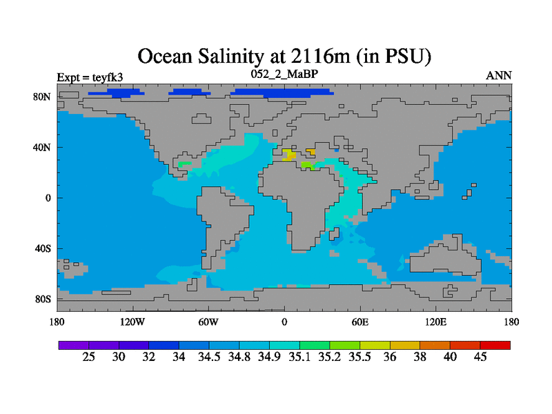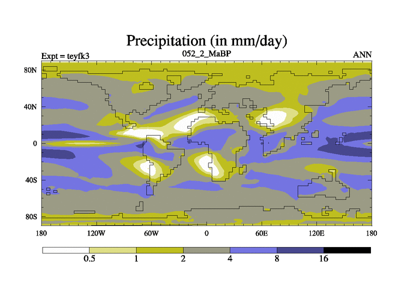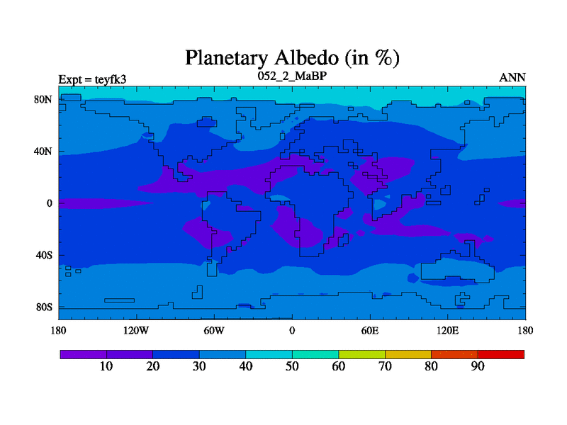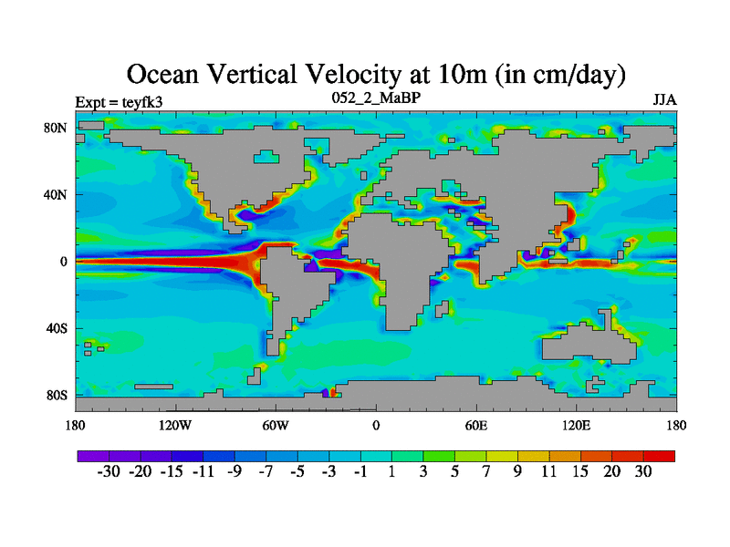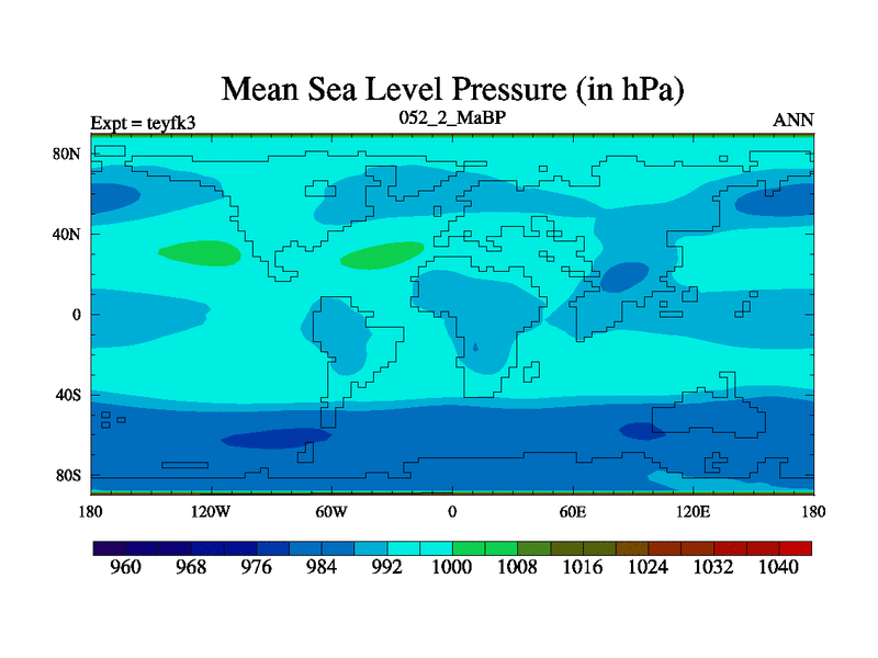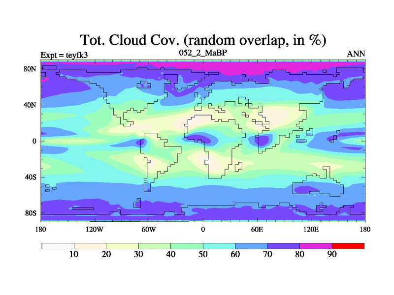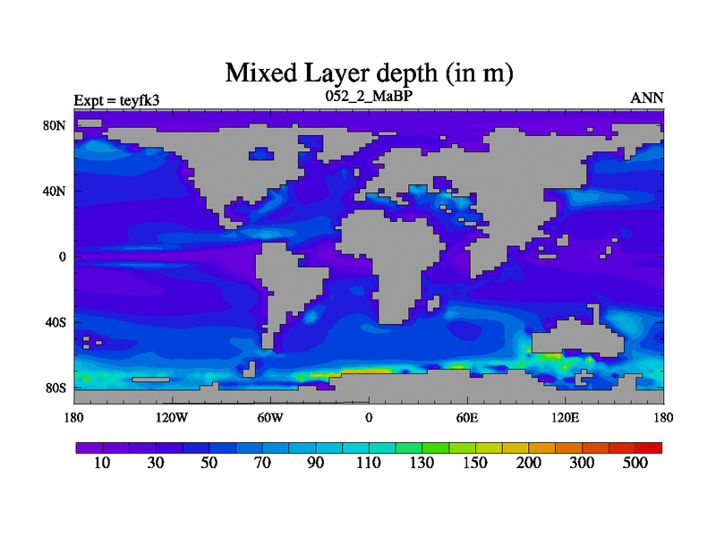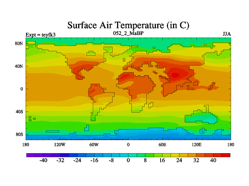 This is the 52.2 Ma simulation using the Scotese palaeogeographies and revised CCN etc. Updated HadCM3L ocean parameters and soil parameters. Also made sure orography gravity wave drag was consistent.
