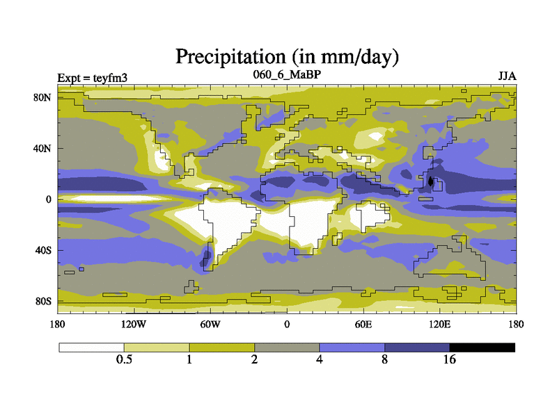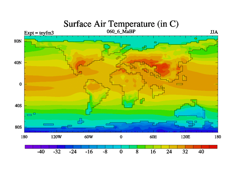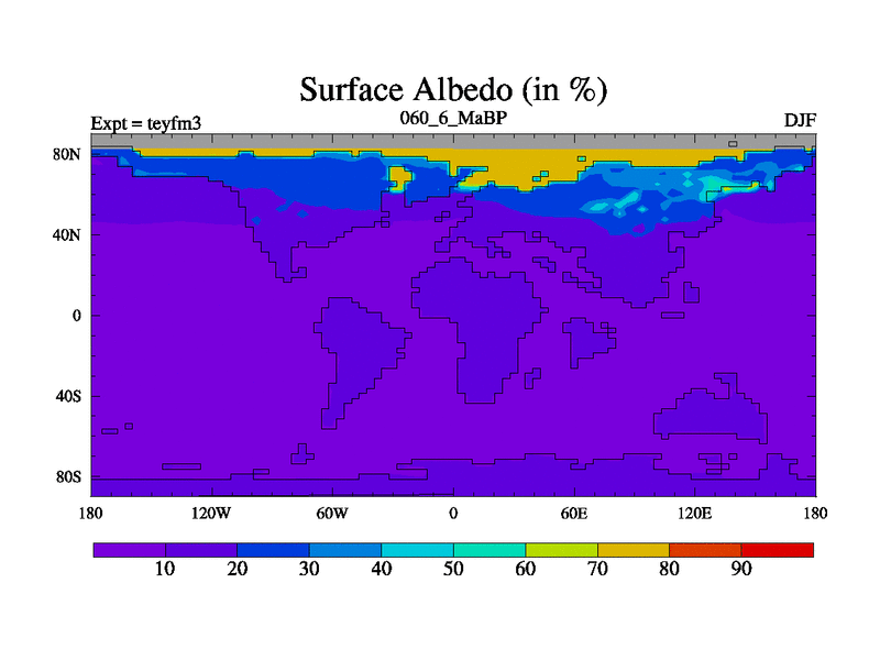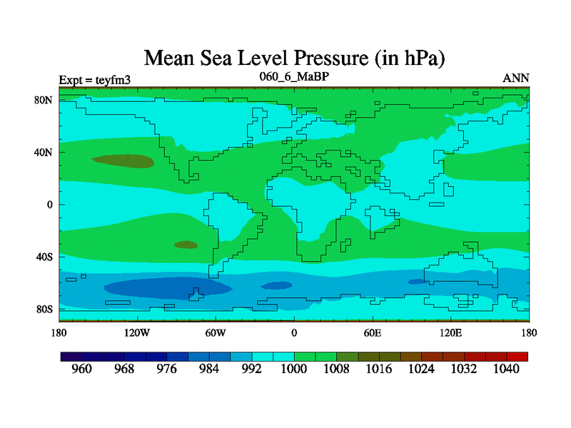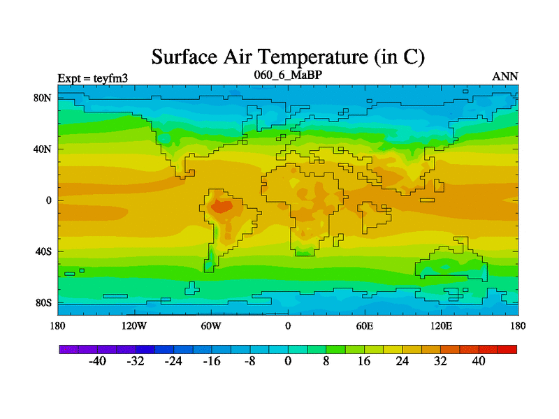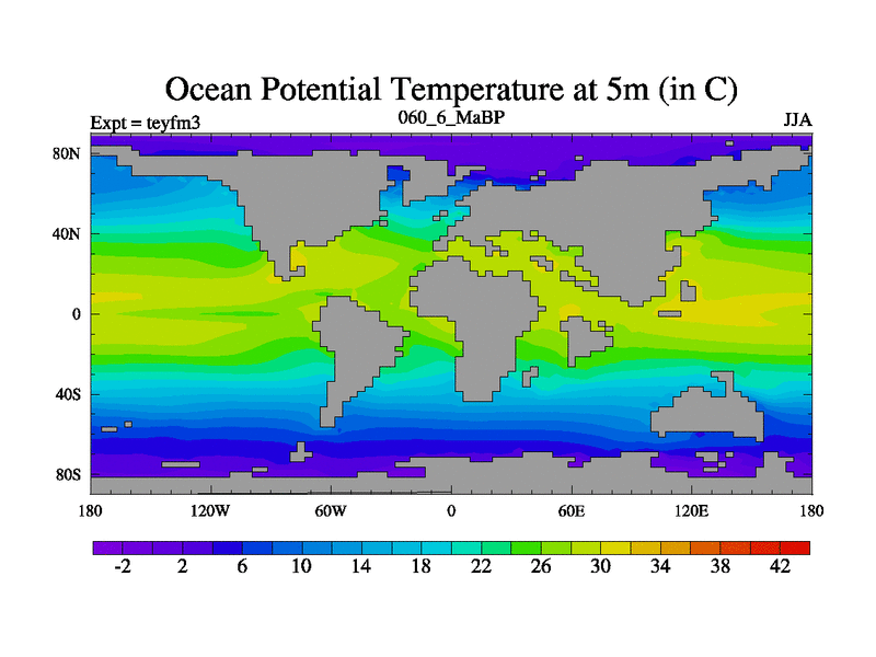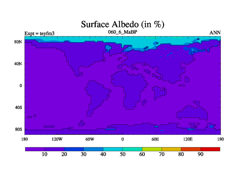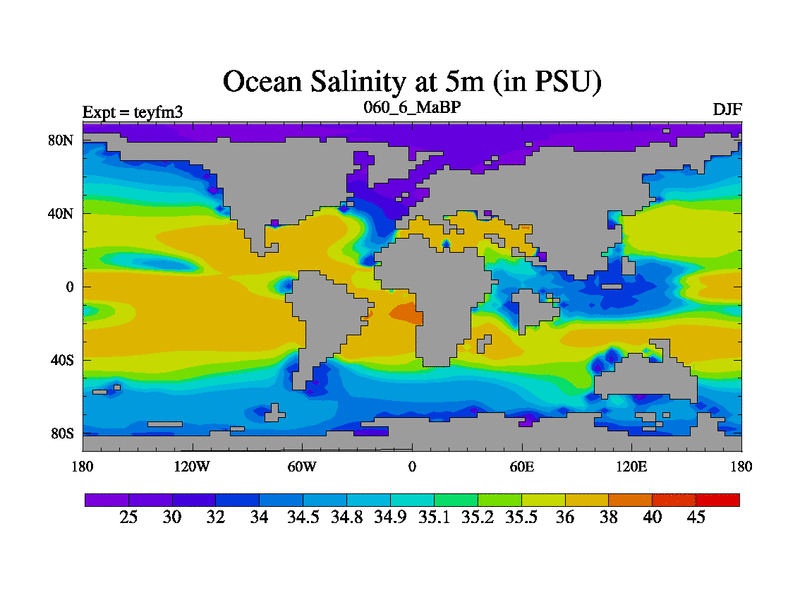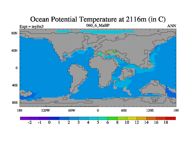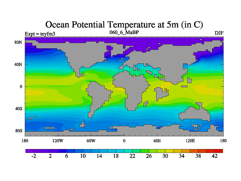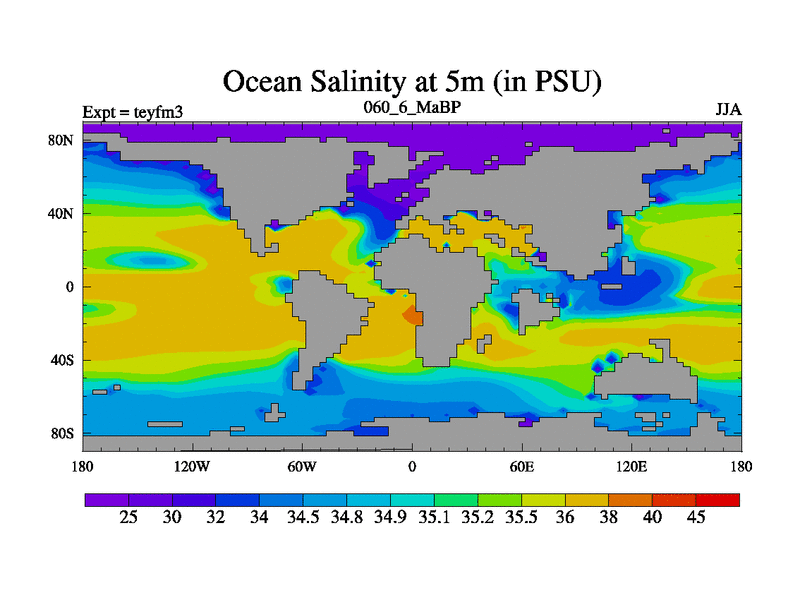 This is the 60.6 Ma simulation using the Scotese palaeogeographies and revised CCN etc. Updated HadCM3L ocean parameters and soil parameters. Also made sure orography gravity wave drag was consistent.