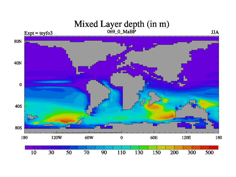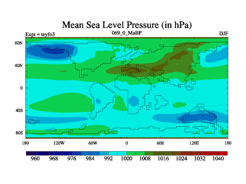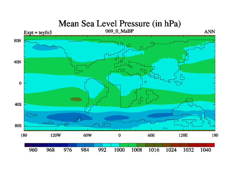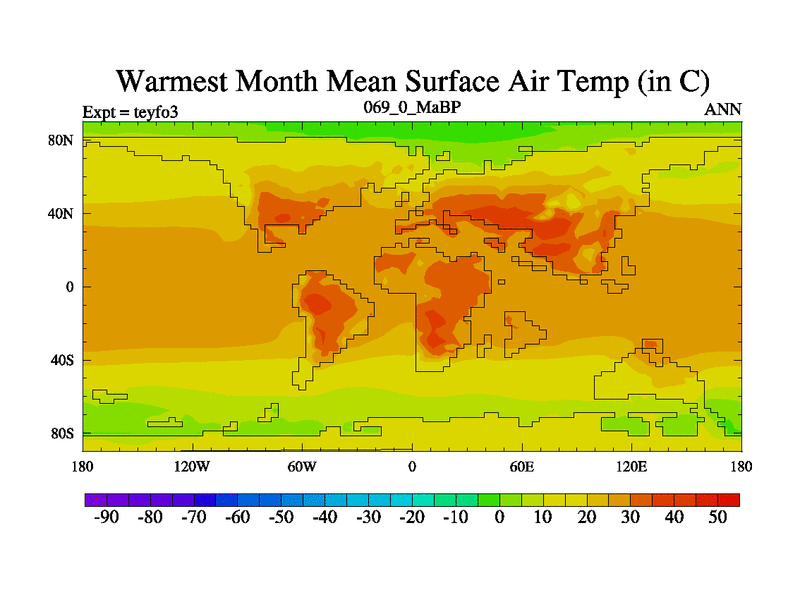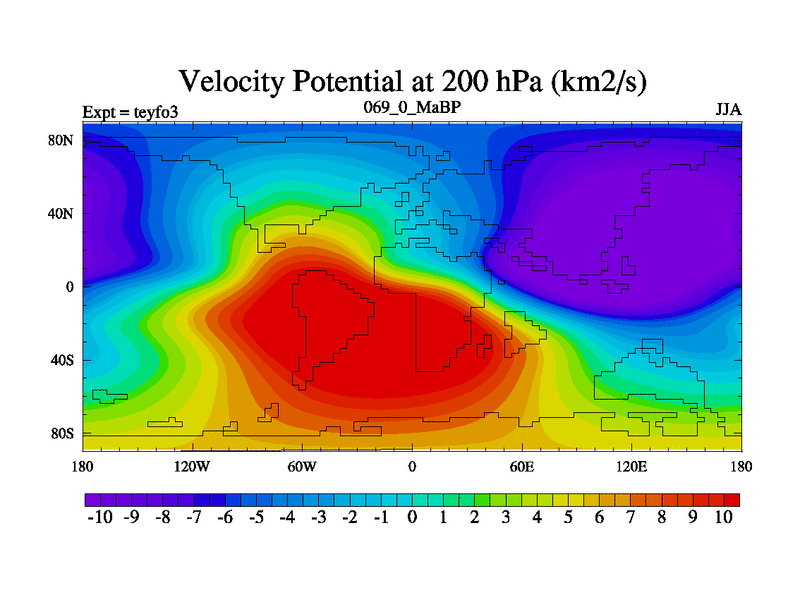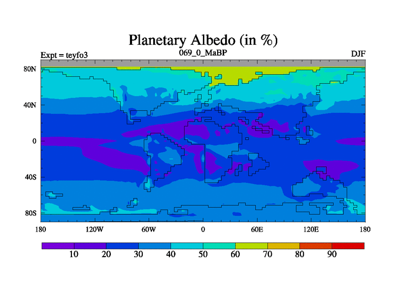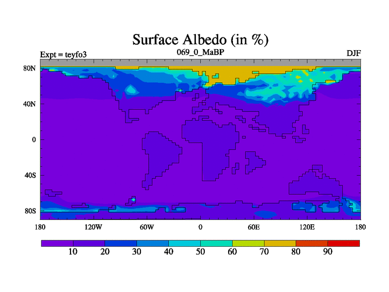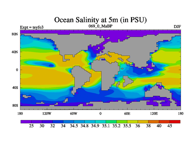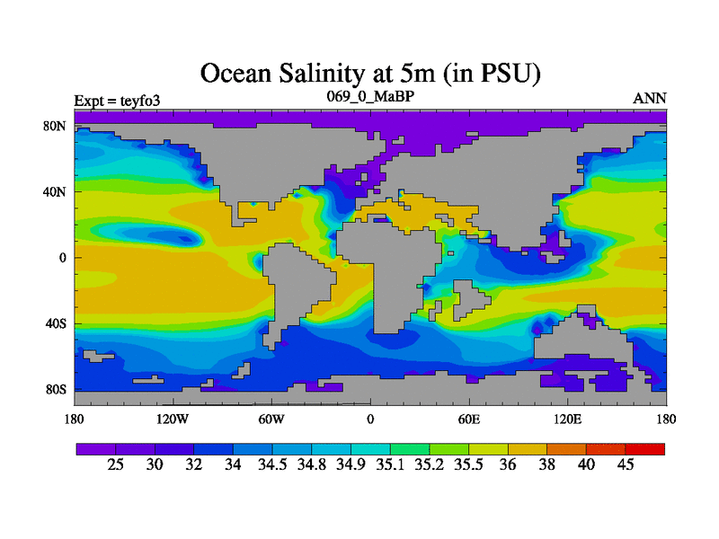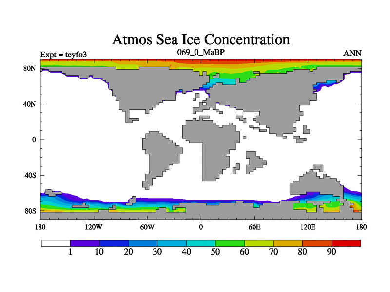 This is the 69.0 Ma simulation using the Scotese palaeogeographies and revised CCN etc. Updated HadCM3L ocean parameters and soil parameters. Also made sure orography gravity wave drag was consistent.