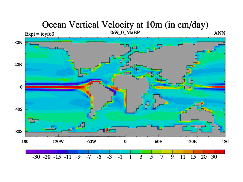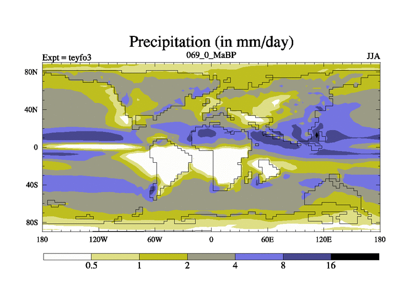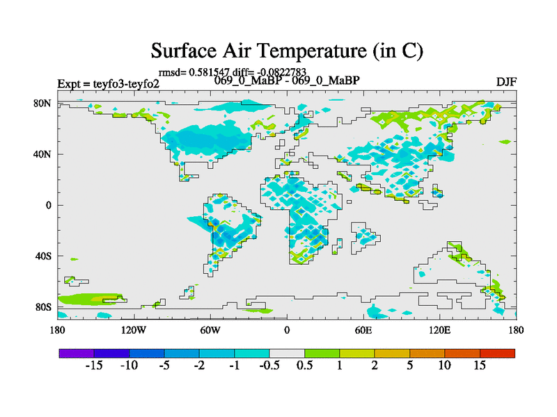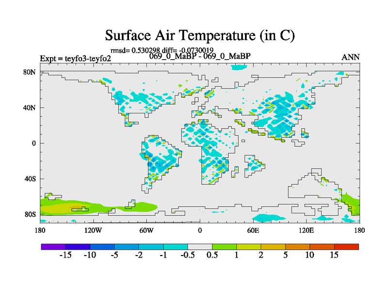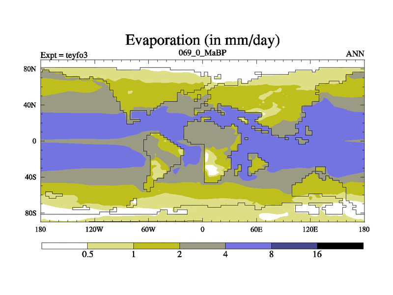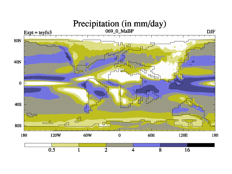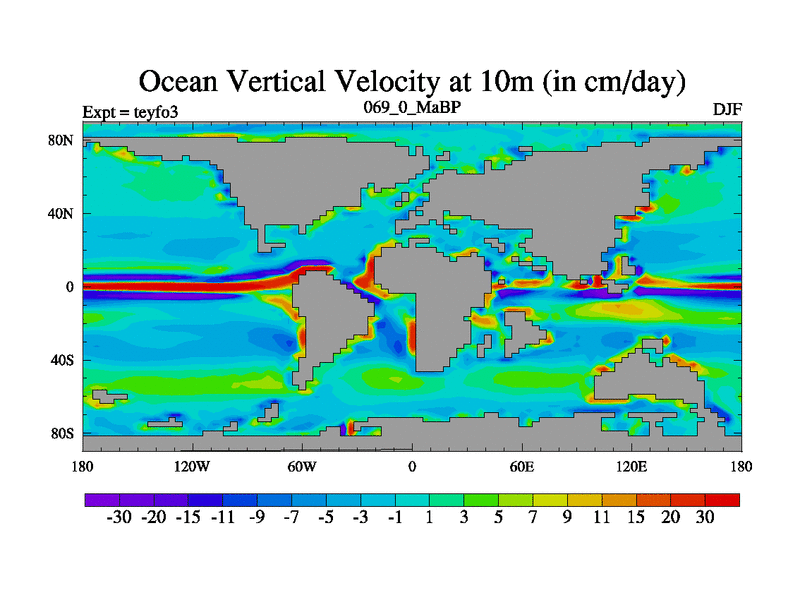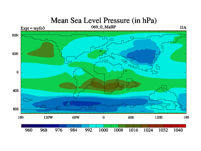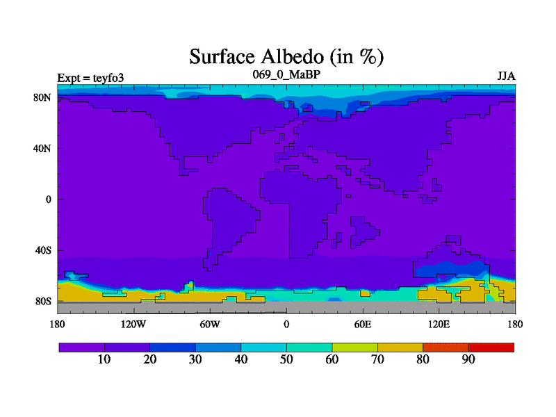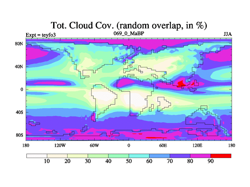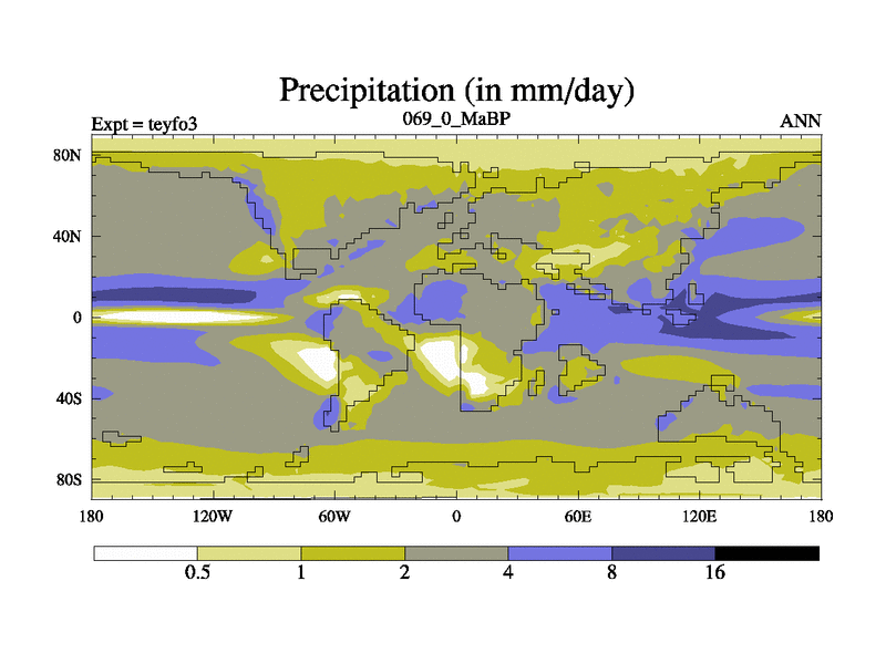 This is the 69.0 Ma simulation using the Scotese palaeogeographies and revised CCN etc. Updated HadCM3L ocean parameters and soil parameters. Also made sure orography gravity wave drag was consistent.