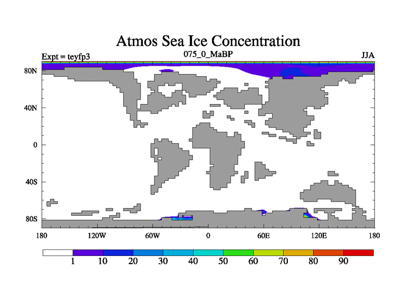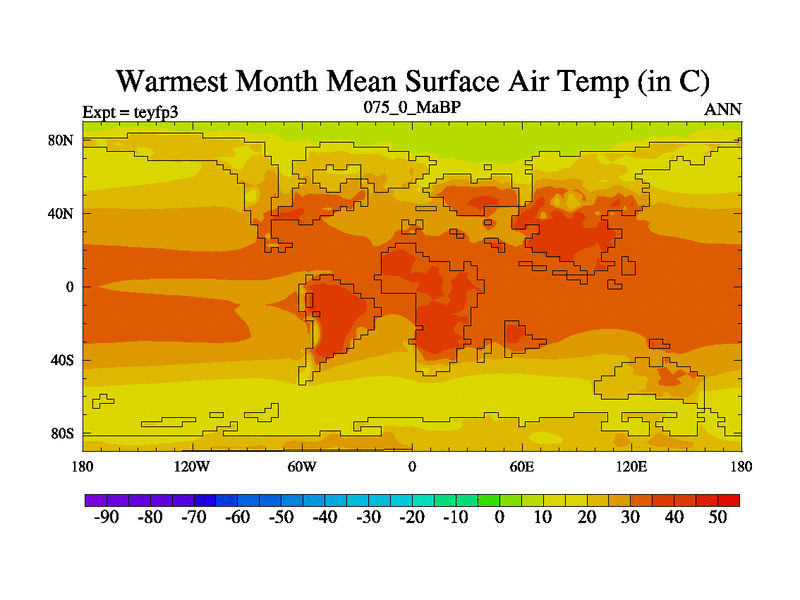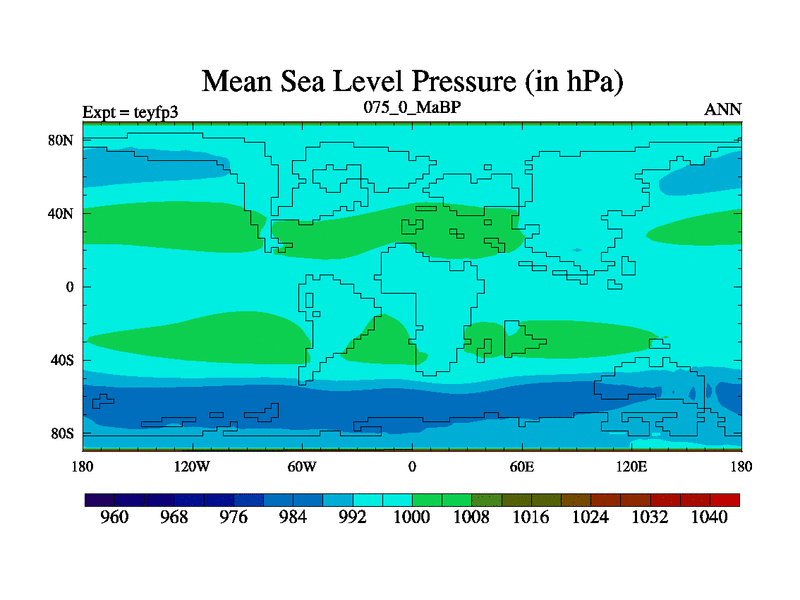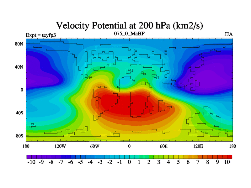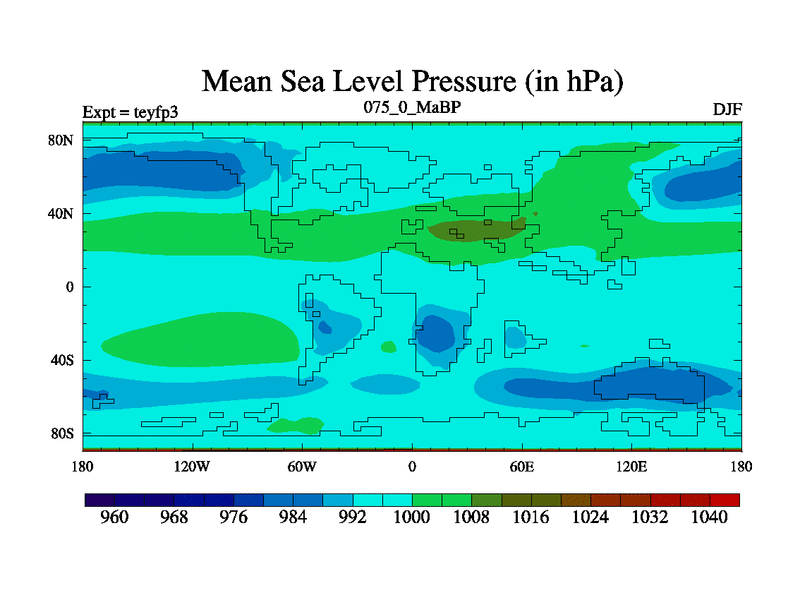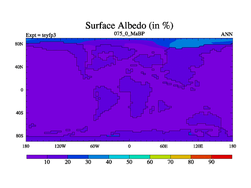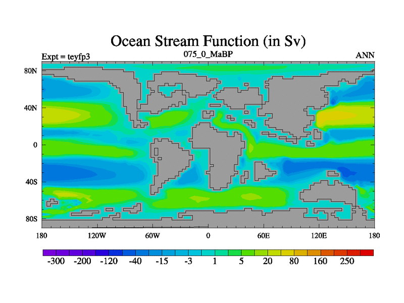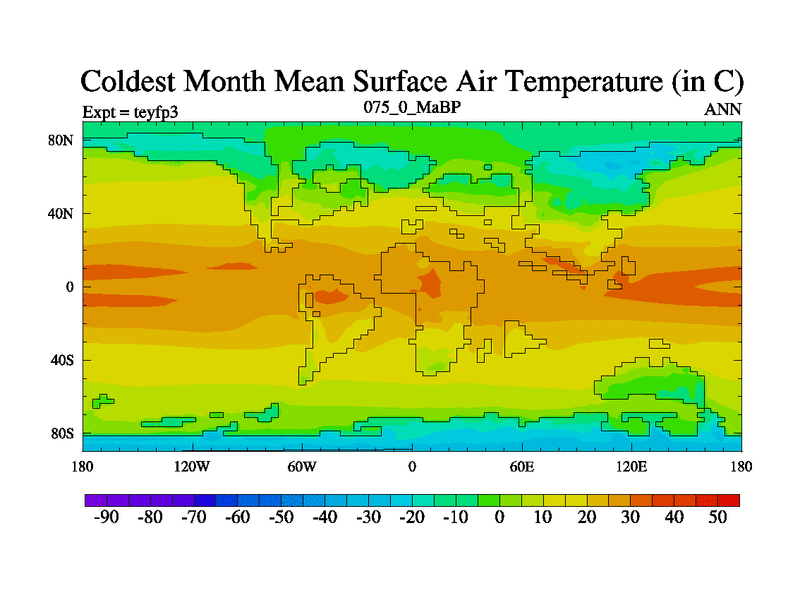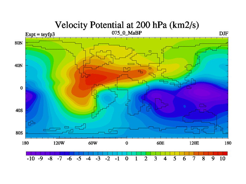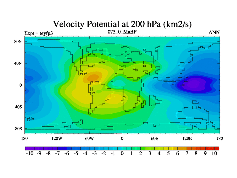 This is the 75.0 Ma simulation using the Scotese palaeogeographies and revised CCN etc. Updated HadCM3L ocean parameters and soil parameters. Also made sure orography gravity wave drag was consistent.