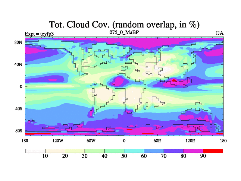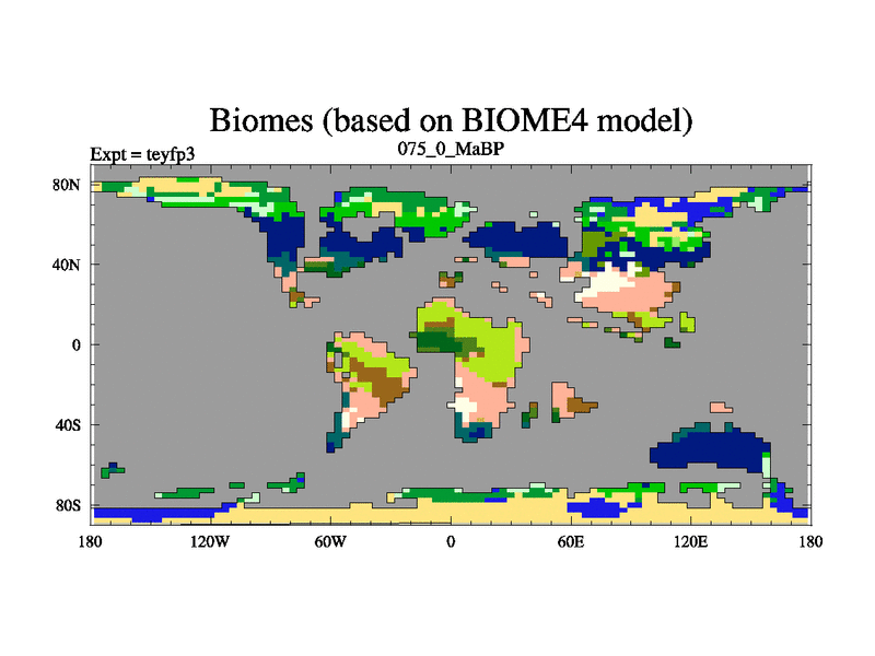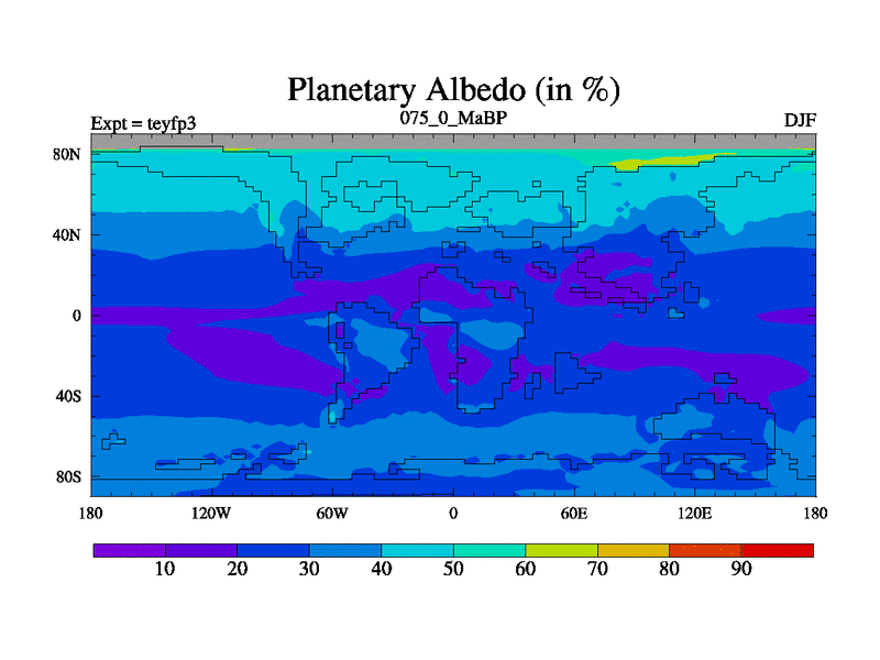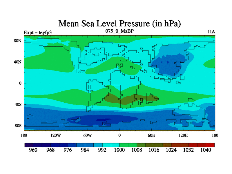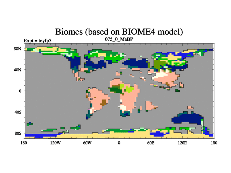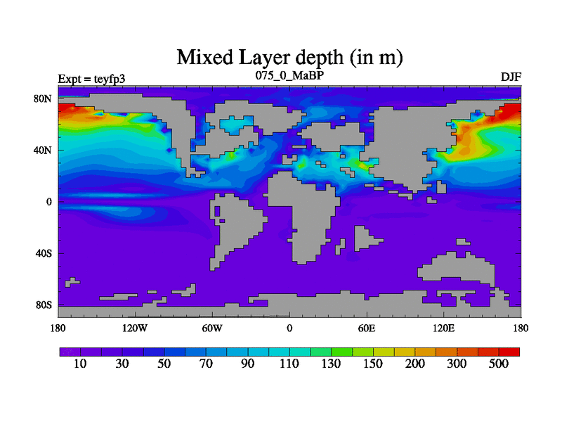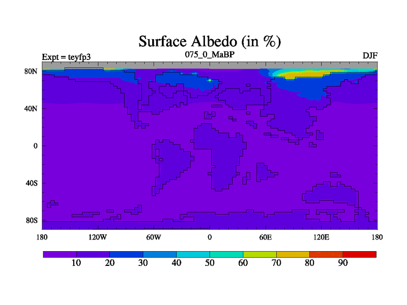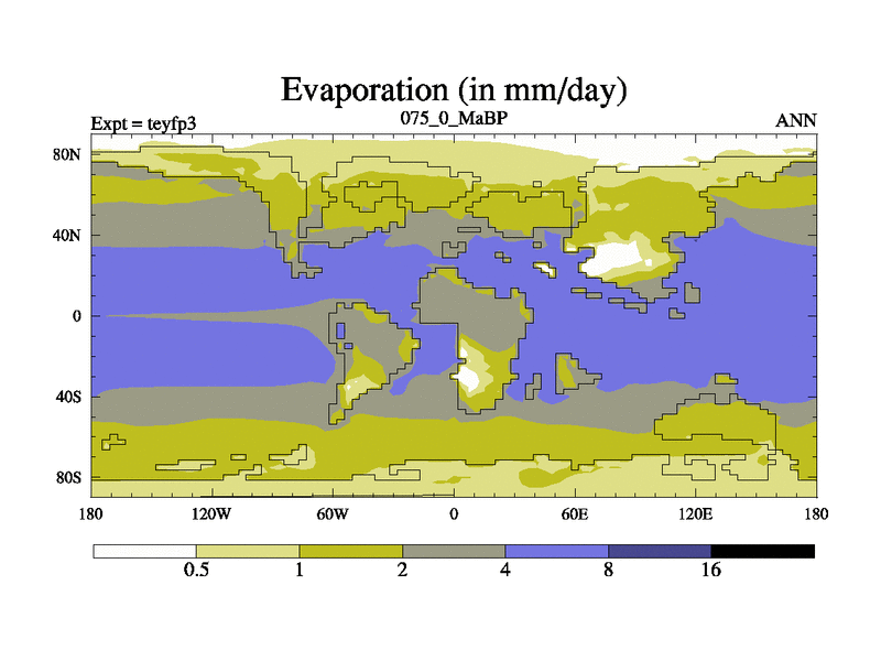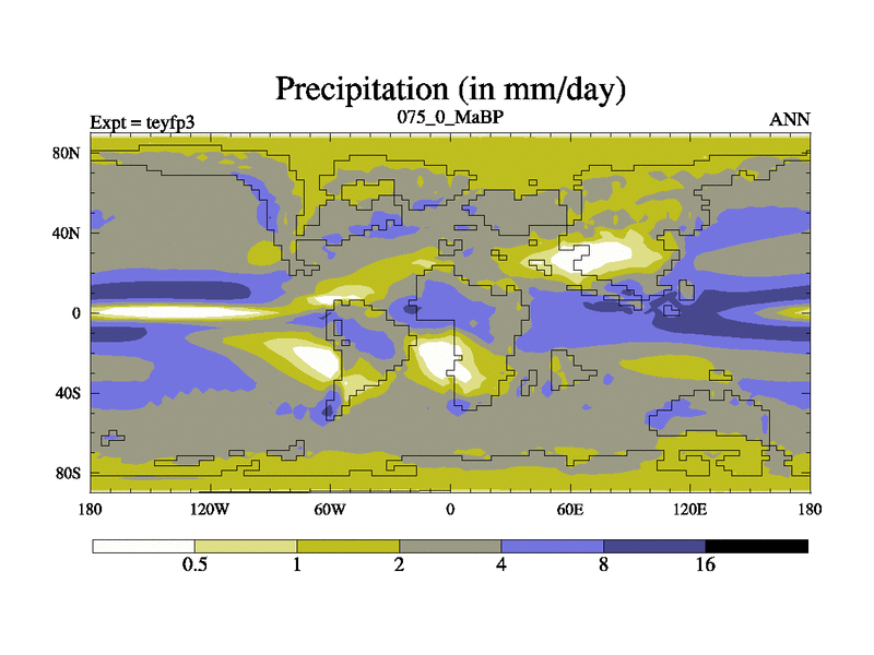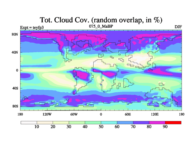This is the 75.0 Ma simulation using the Scotese palaeogeographies and revised CCN etc. Updated HadCM3L ocean parameters and soil parameters. Also made sure orography gravity wave drag was consistent.