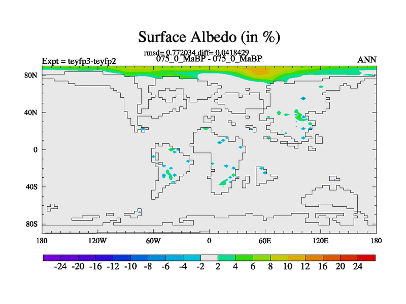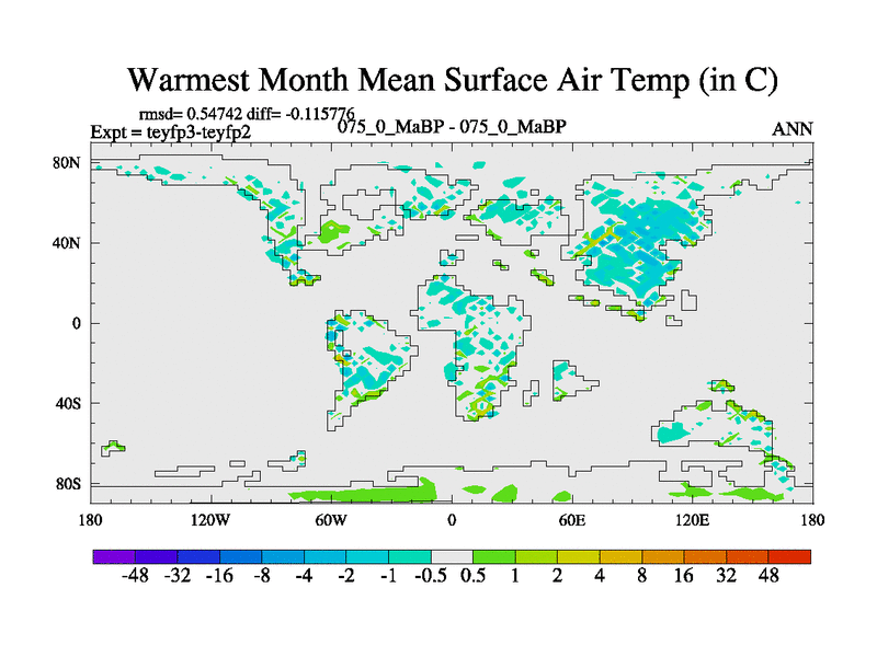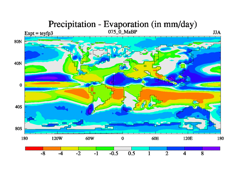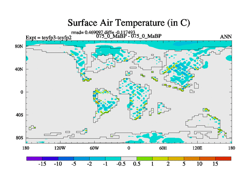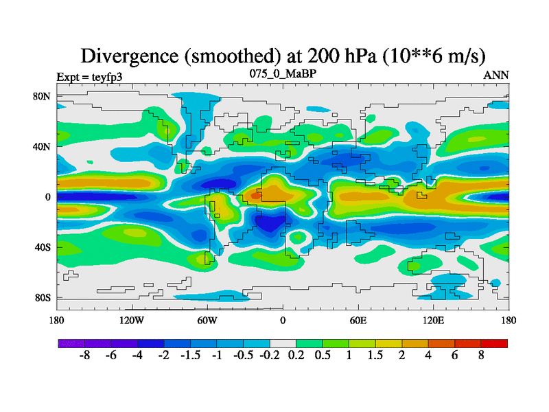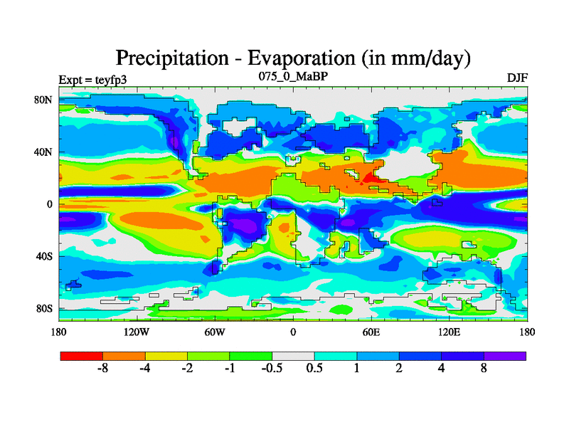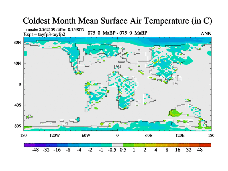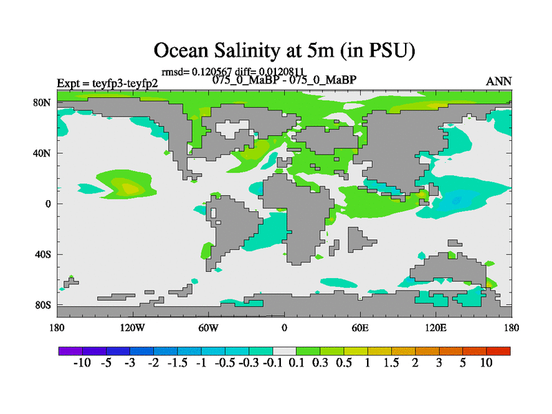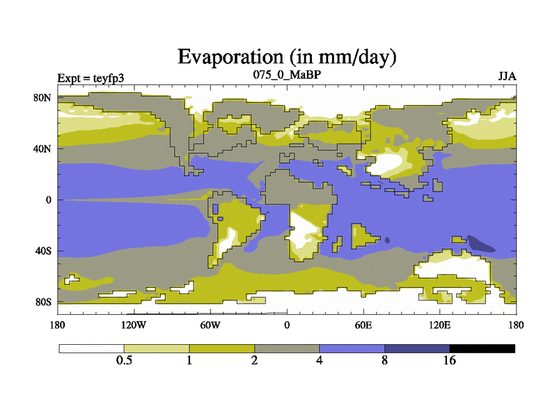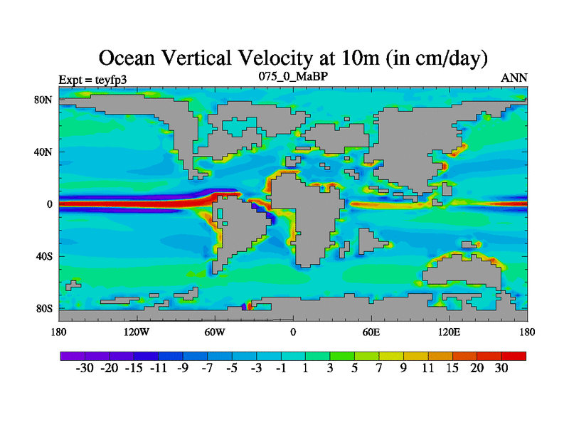 This is the 75.0 Ma simulation using the Scotese palaeogeographies and revised CCN etc. Updated HadCM3L ocean parameters and soil parameters. Also made sure orography gravity wave drag was consistent.