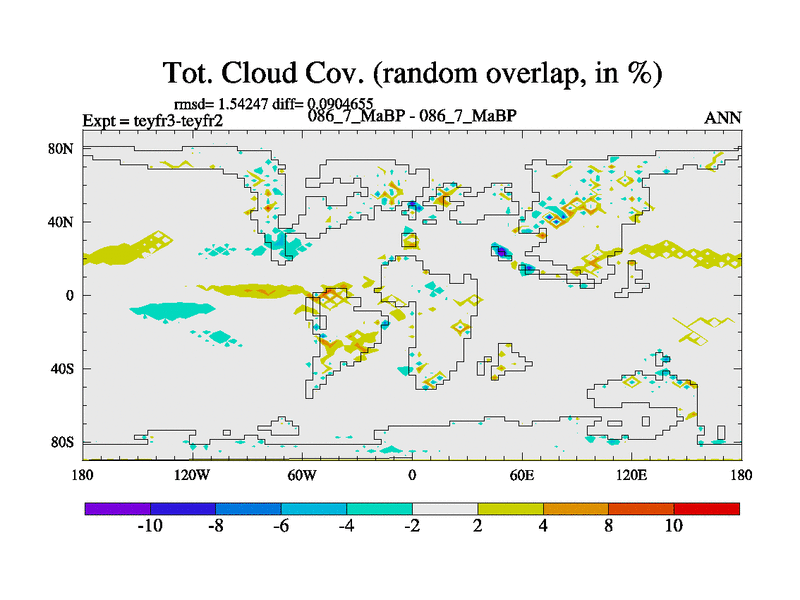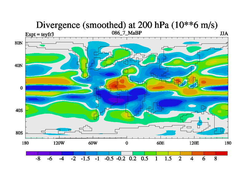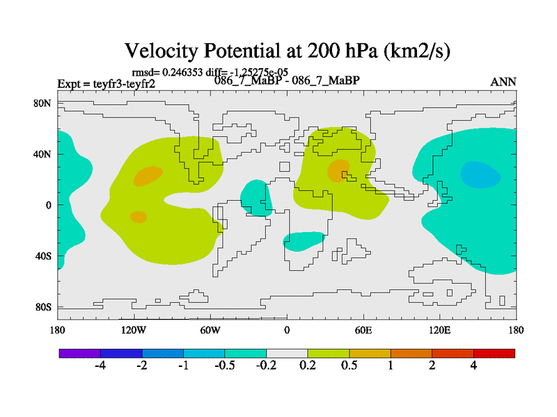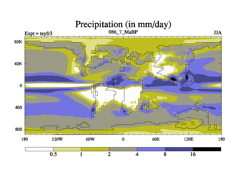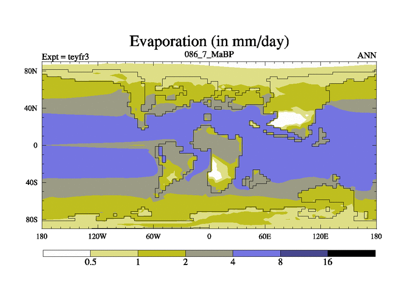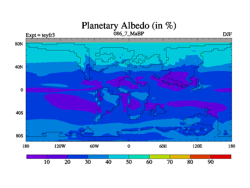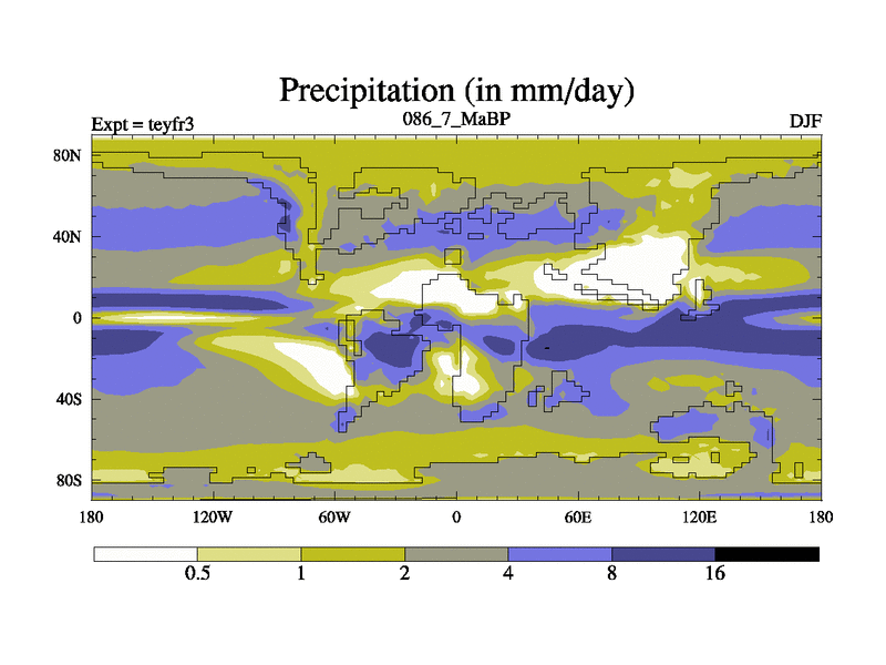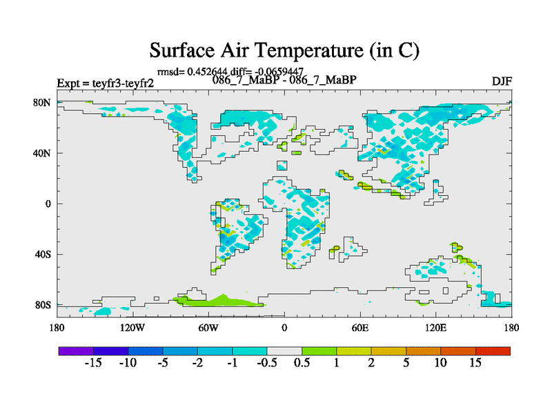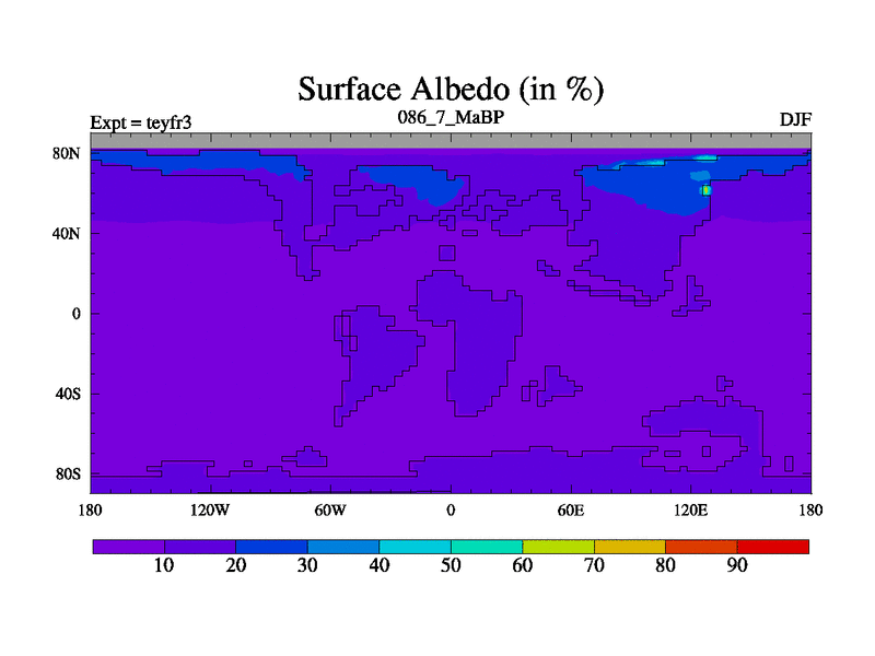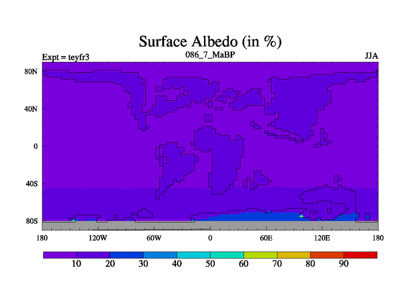 This is the 86.7 Ma simulation using the Scotese palaeogeographies and revised CCN etc. Updated HadCM3L ocean parameters and soil parameters. Also made sure orography gravity wave drag was consistent.