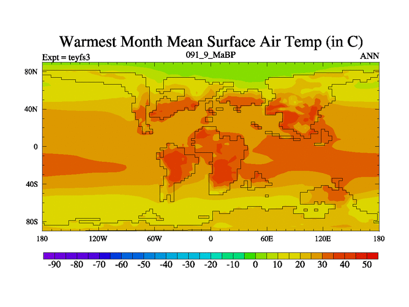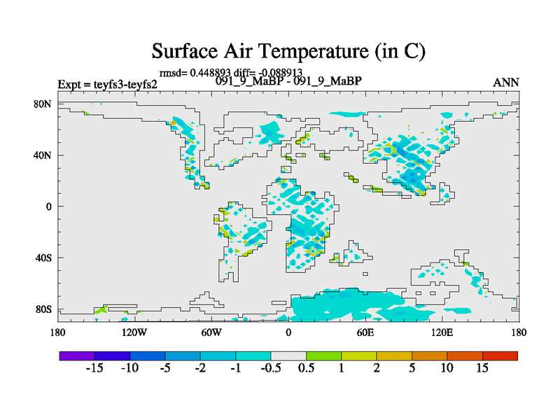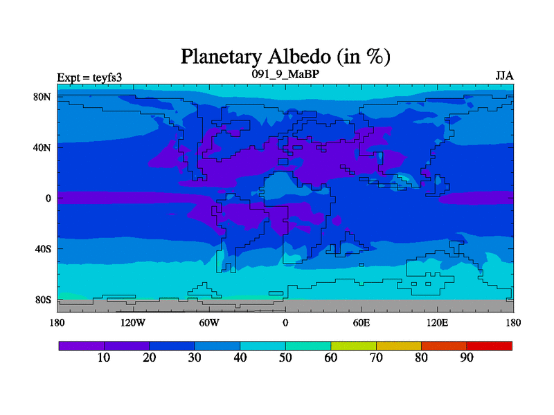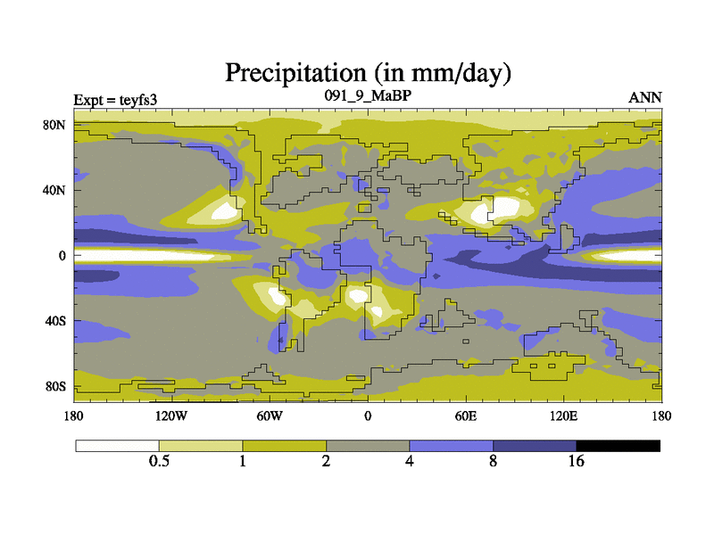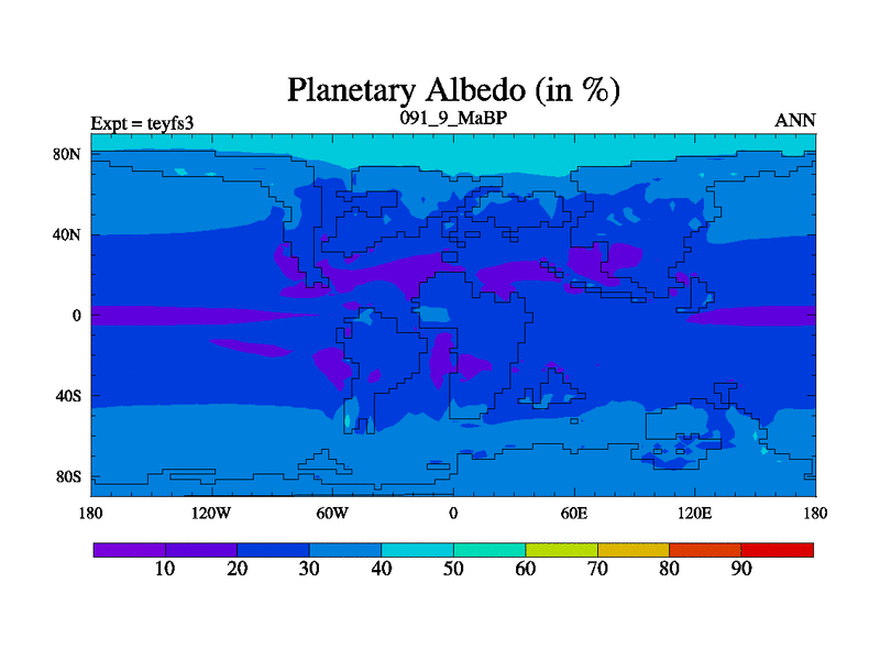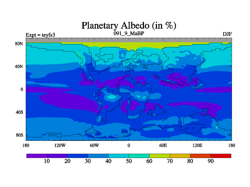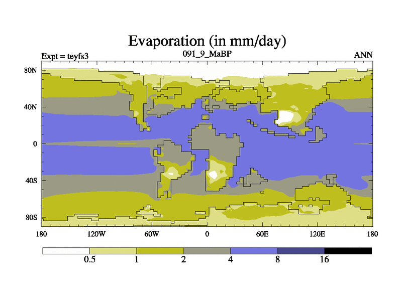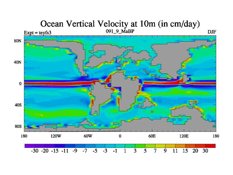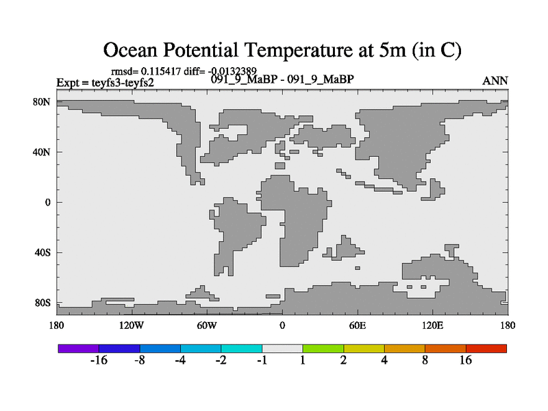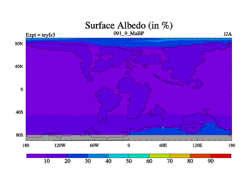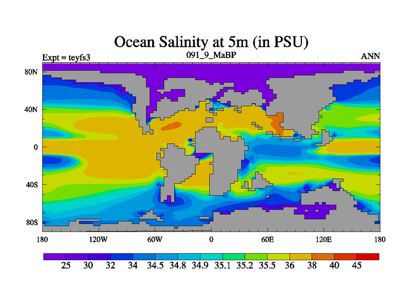 This is the 91.9 Ma simulation using the Scotese palaeogeographies and revised CCN etc. Updated HadCM3L ocean parameters and soil parameters. Also made sure orography gravity wave drag was consistent.