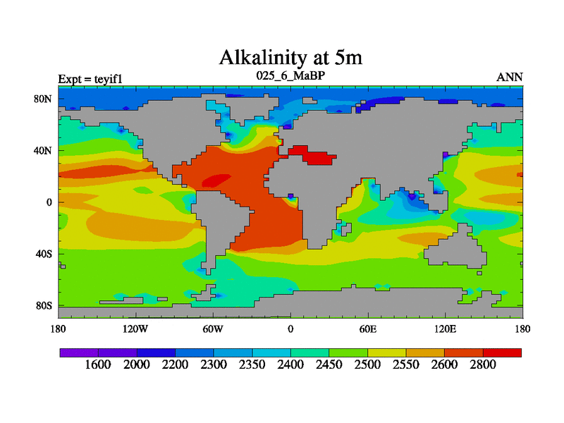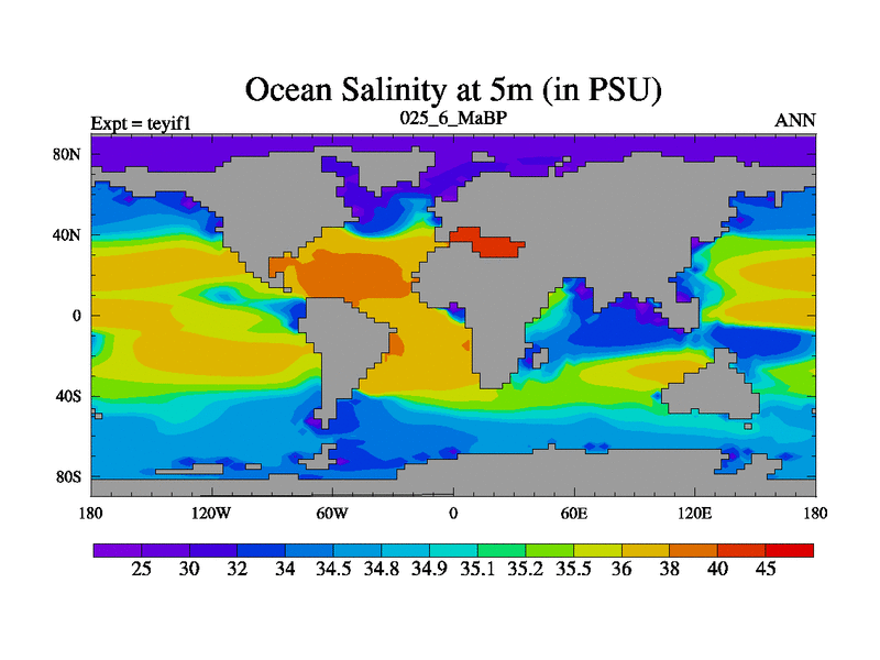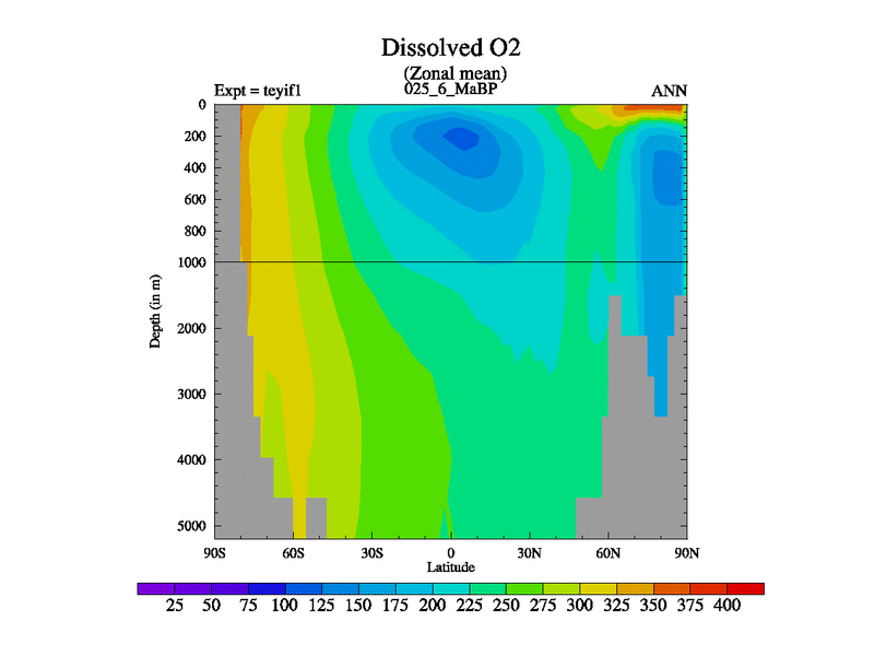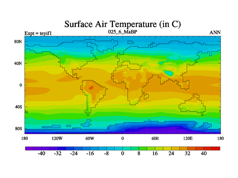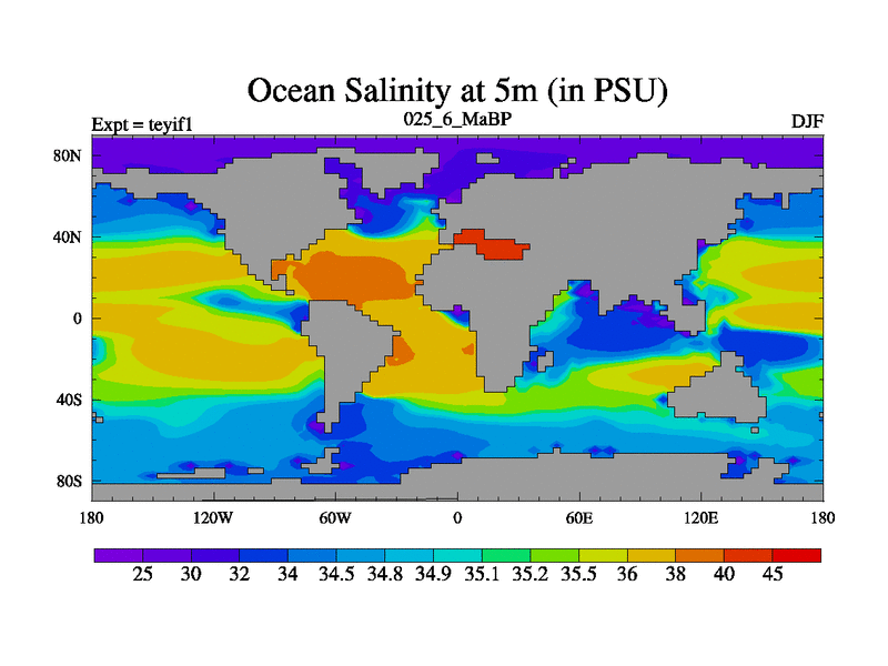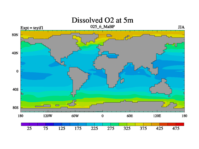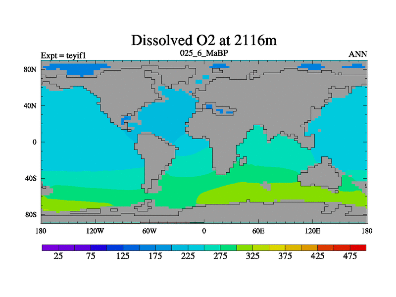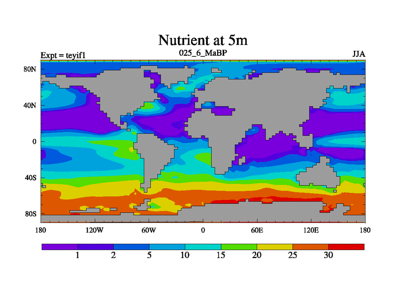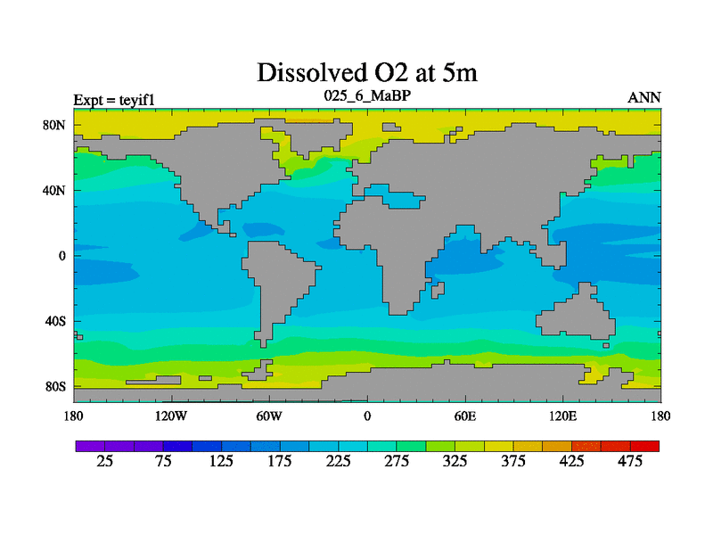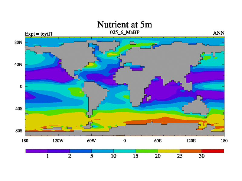 This is the 25.6 Ma simulation using the Scotese palaeogeographies and revised CCN etc. Now includes ocean biogeochemistry