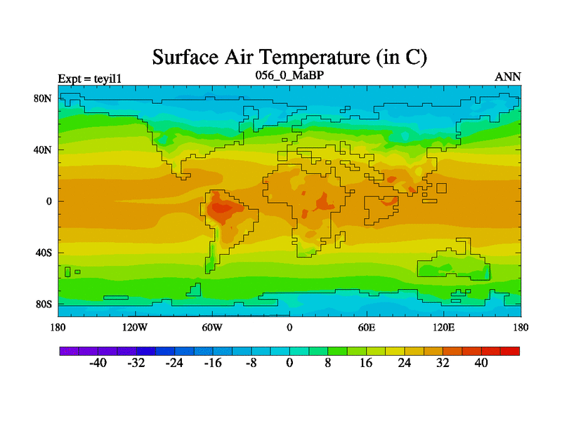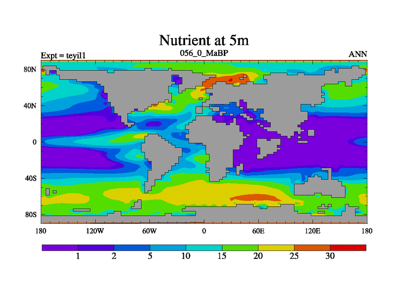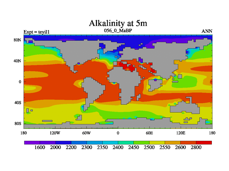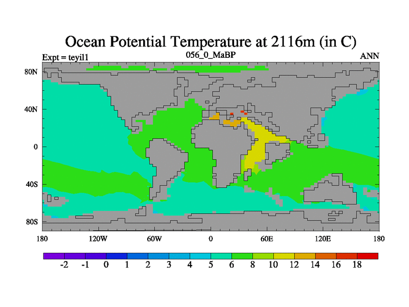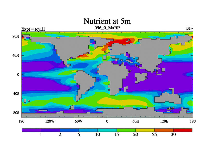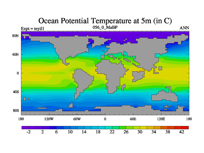 This is the 56.0 Ma simulation using the Scotese palaeogeographies and revised CCN etc. Now includes ocean biogeochemistry
