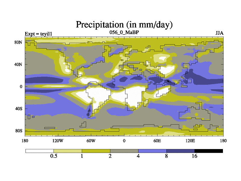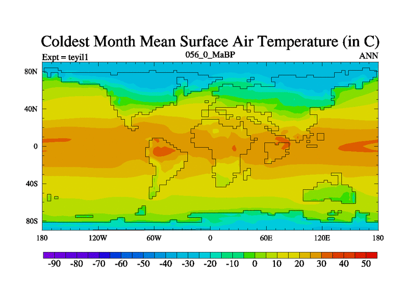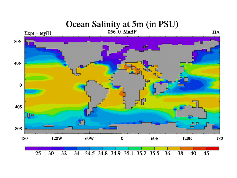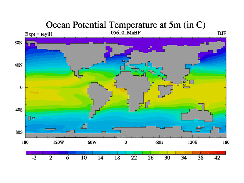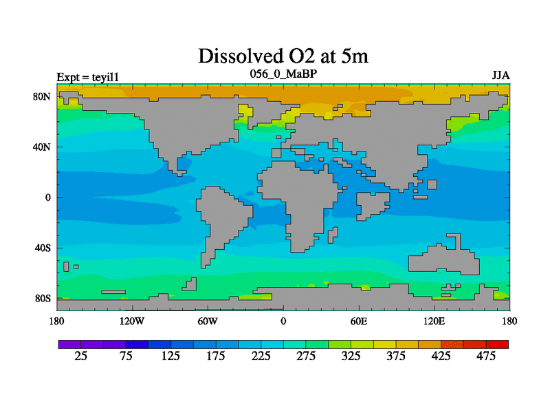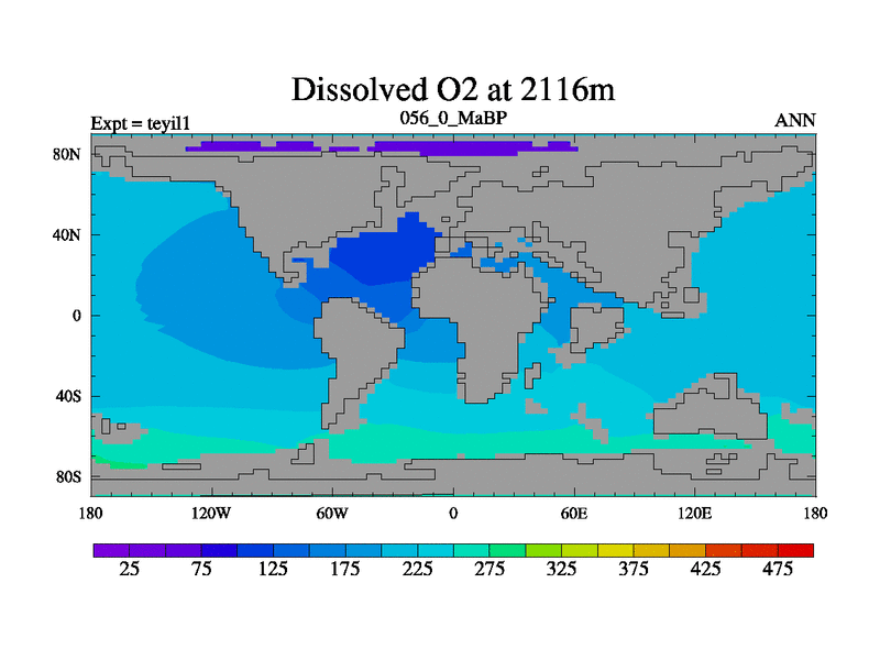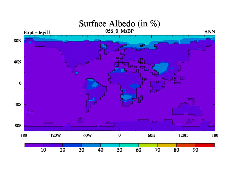 This is the 56.0 Ma simulation using the Scotese palaeogeographies and revised CCN etc. Now includes ocean biogeochemistry
