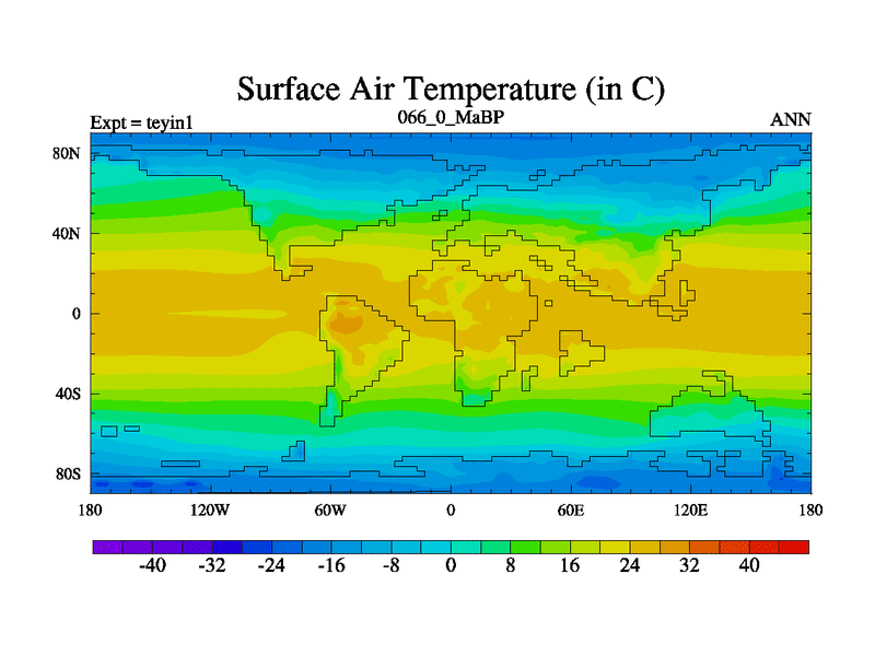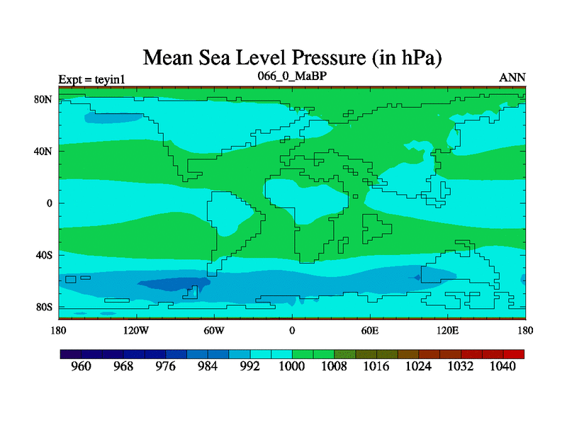 This is the 66.0 Ma simulation using the Scotese palaeogeographies and revised CCN etc. Now includes ocean biogeochemistry