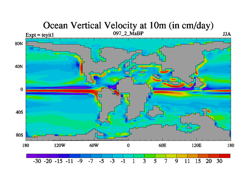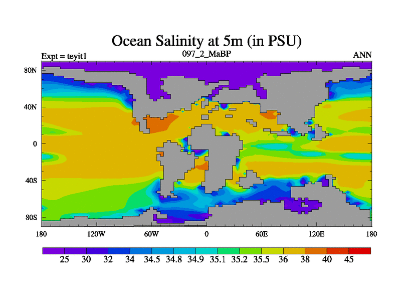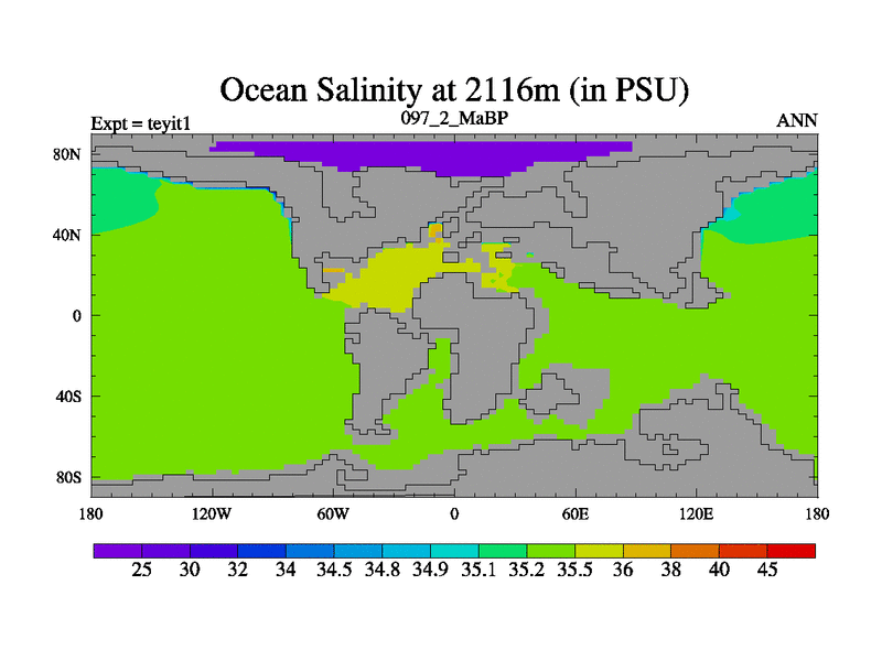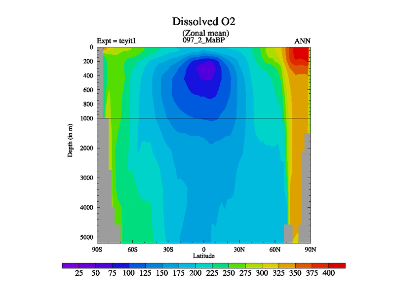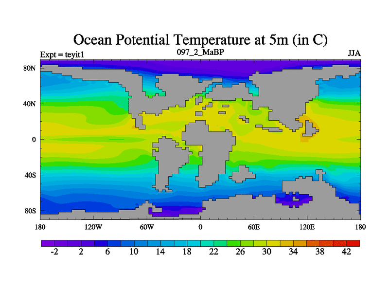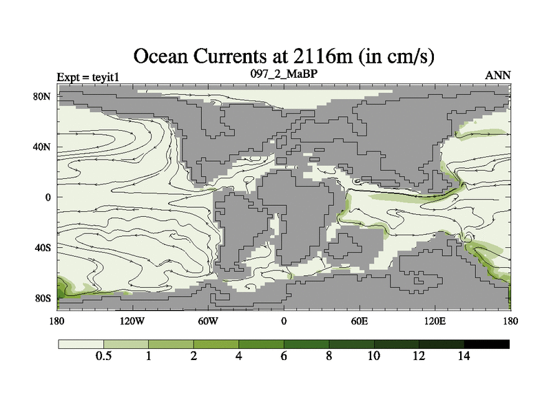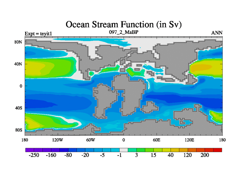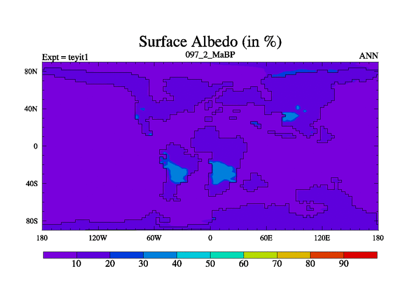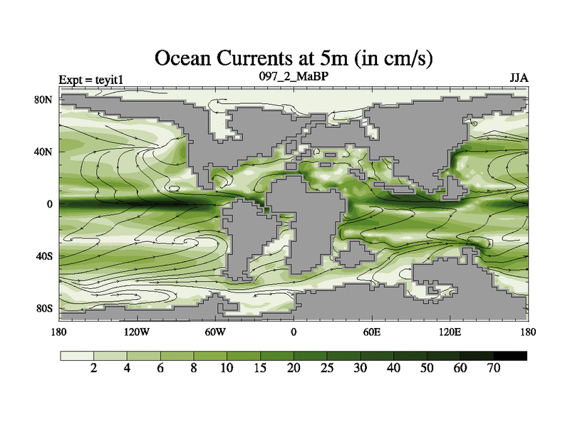 This is the 97.2 Ma simulation using the Scotese palaeogeographies and revised CCN etc. Now includes ocean biogeochemistry